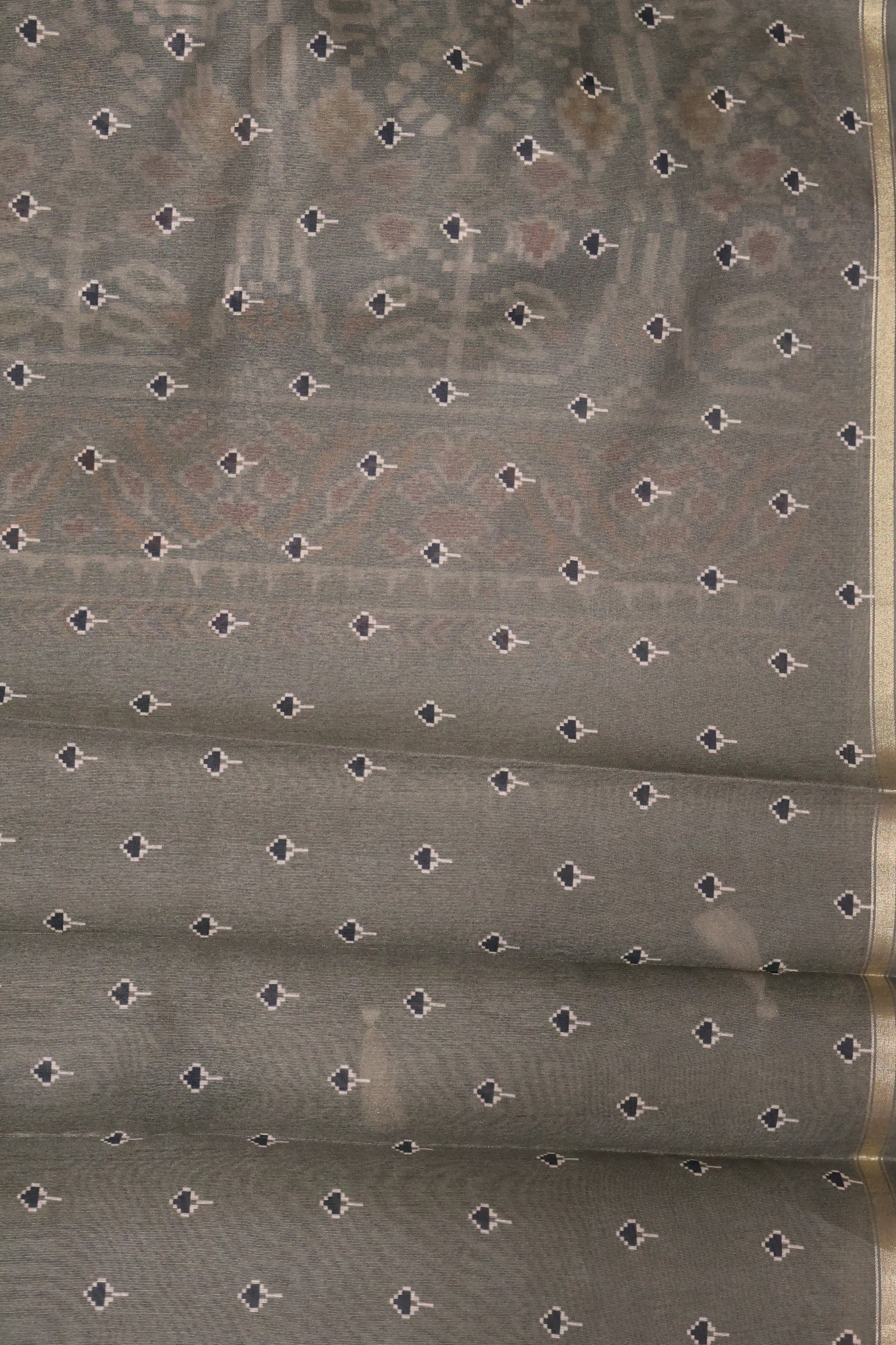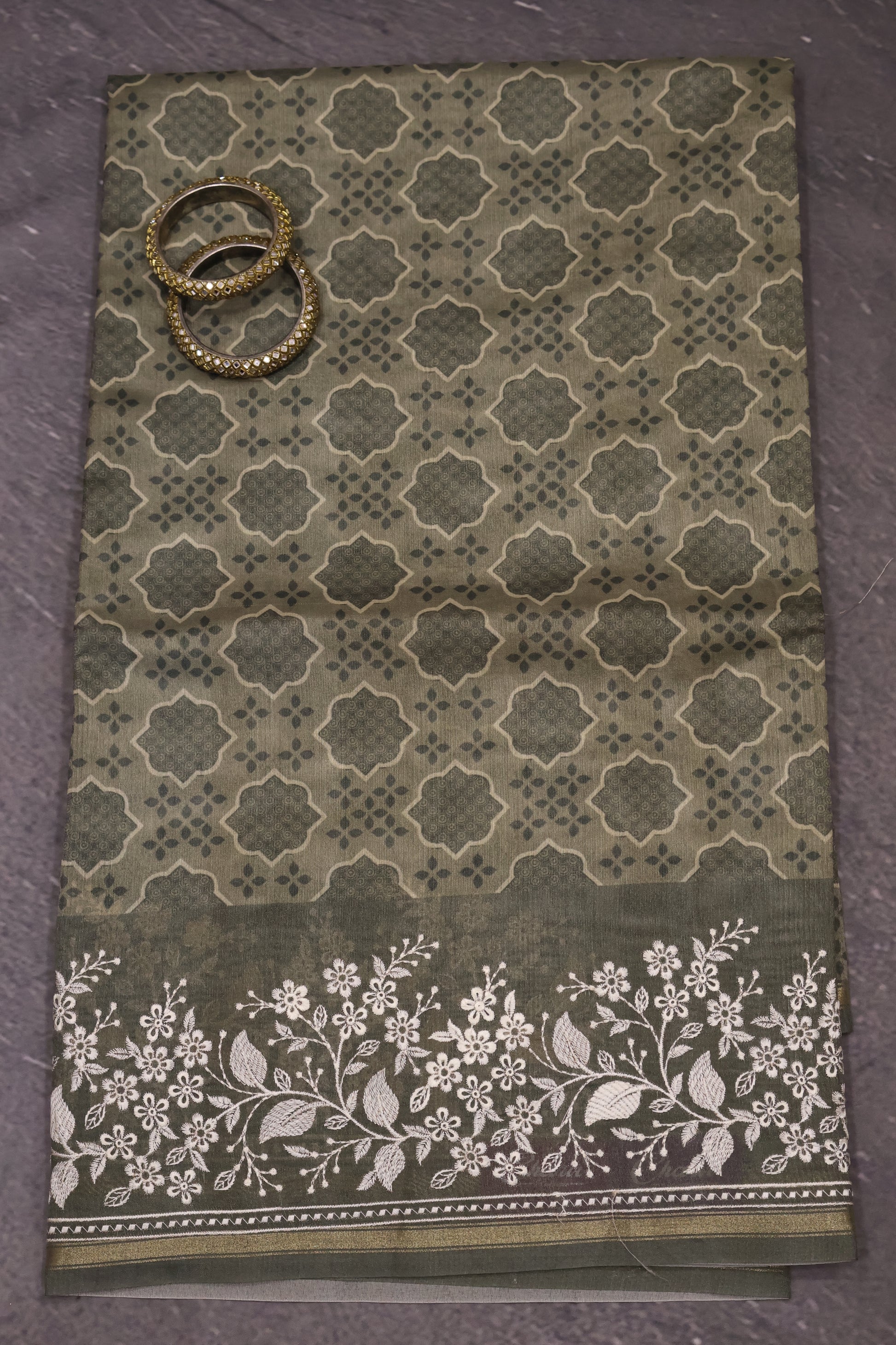 Semi Tussar Saree -Floral Embroidery-Sage Green