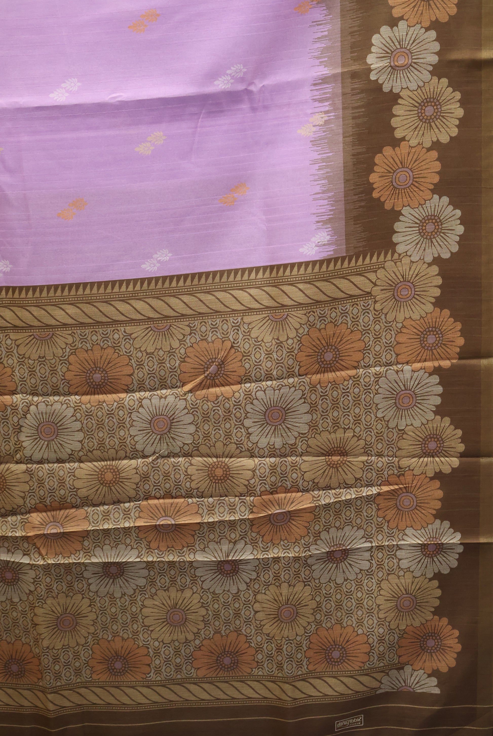 Semi Tussar Saree -Floral-Light Purple-Brown