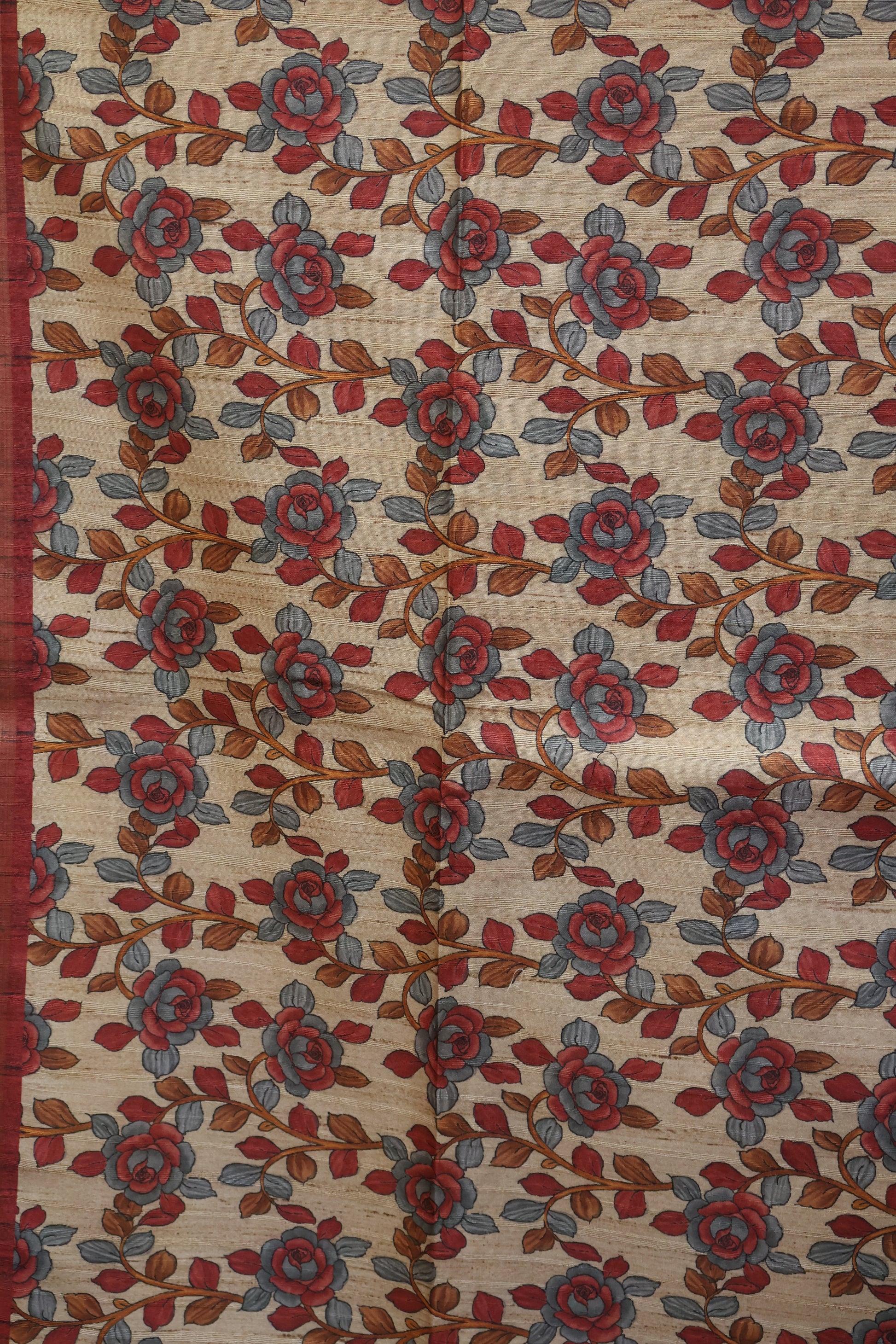 Semi Tussar Saree - Maroon Lehariya Cutwork