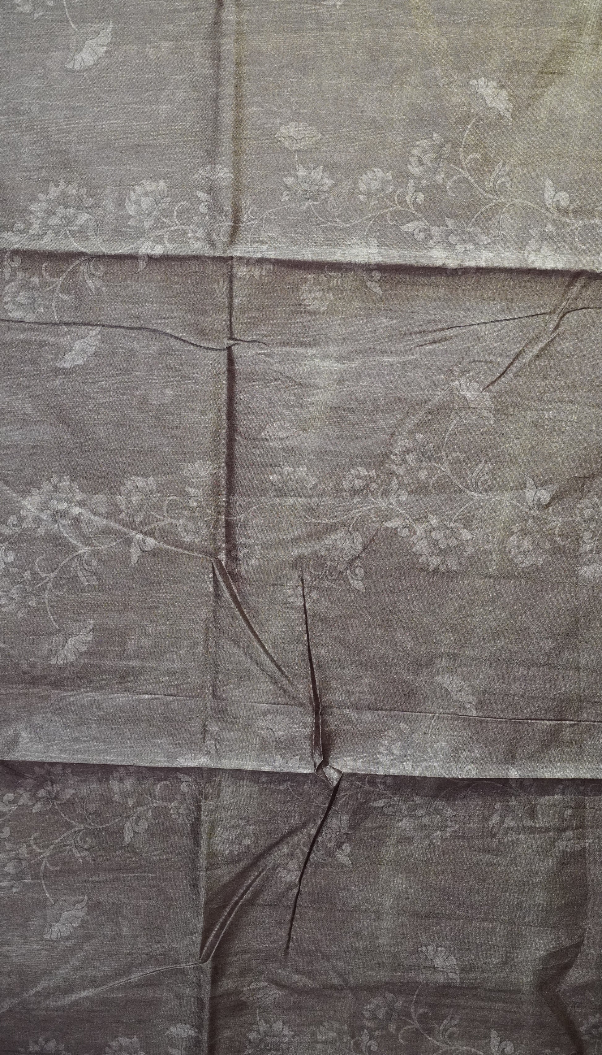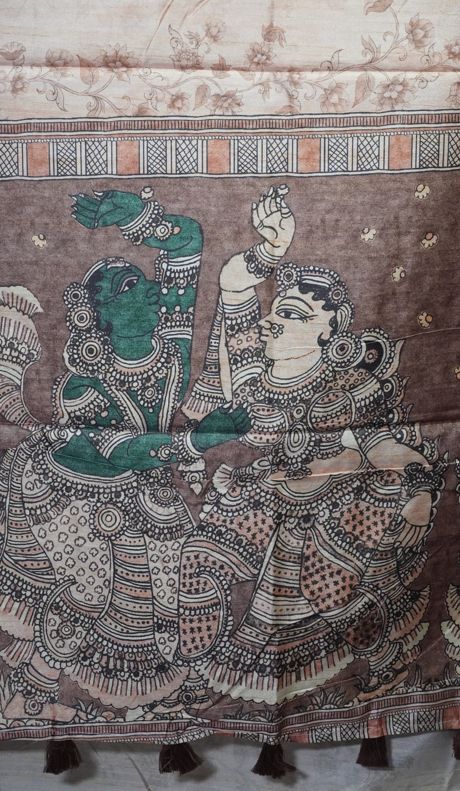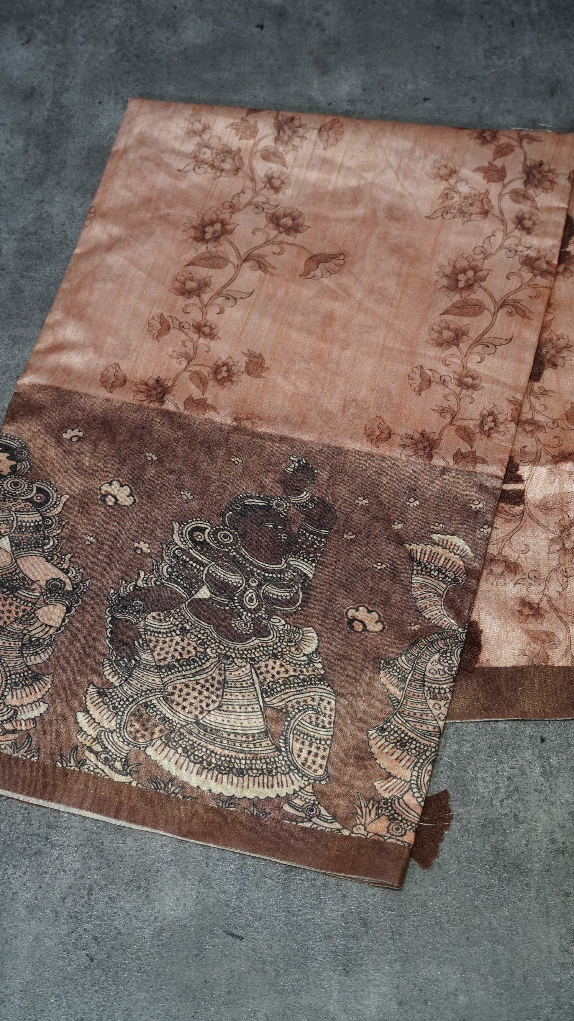 Semi Tussar Saree Kalamkari With Floral Pattern Brown
