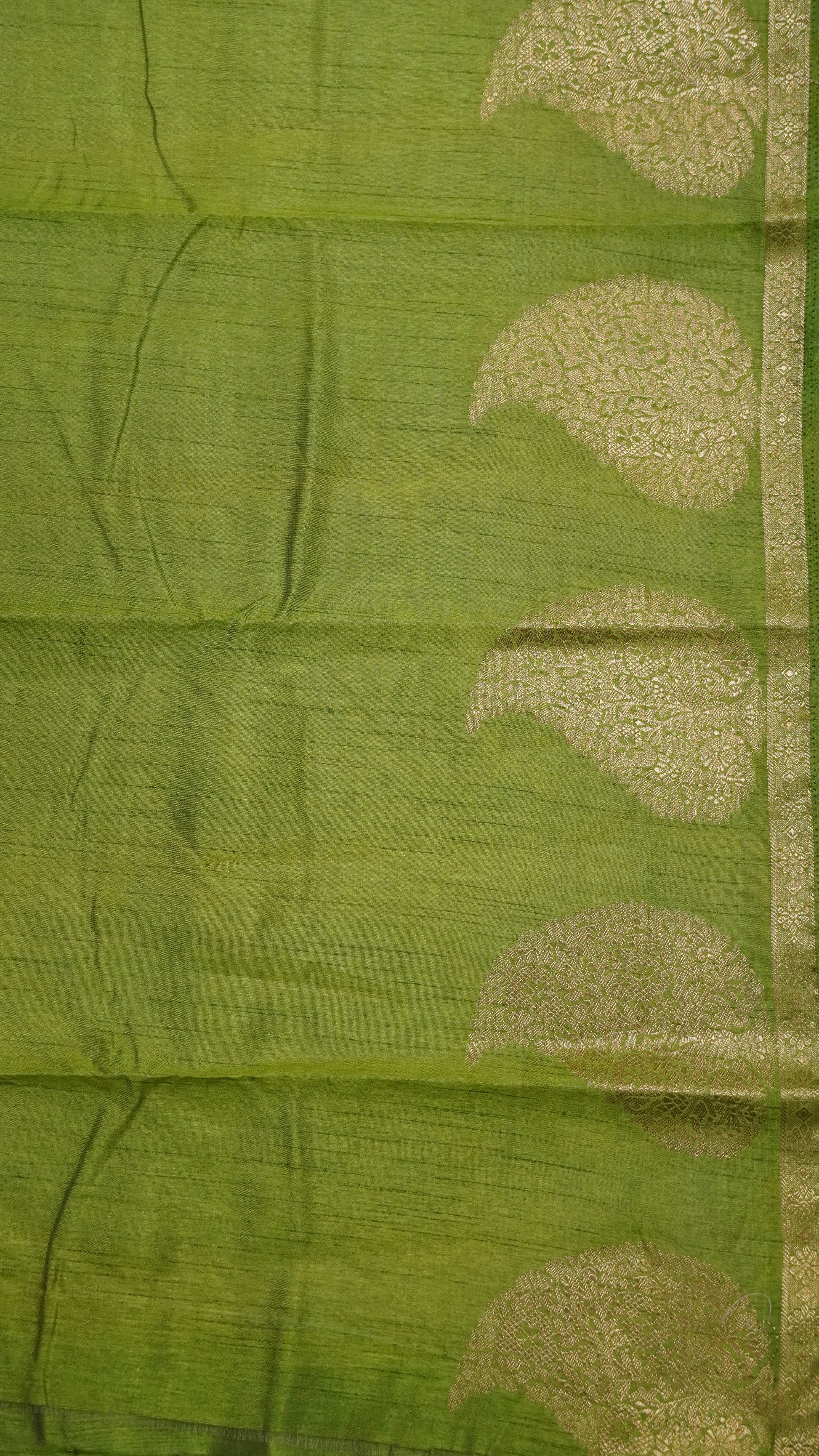 Semi Tussar Saree-Light Green Leaf Butta