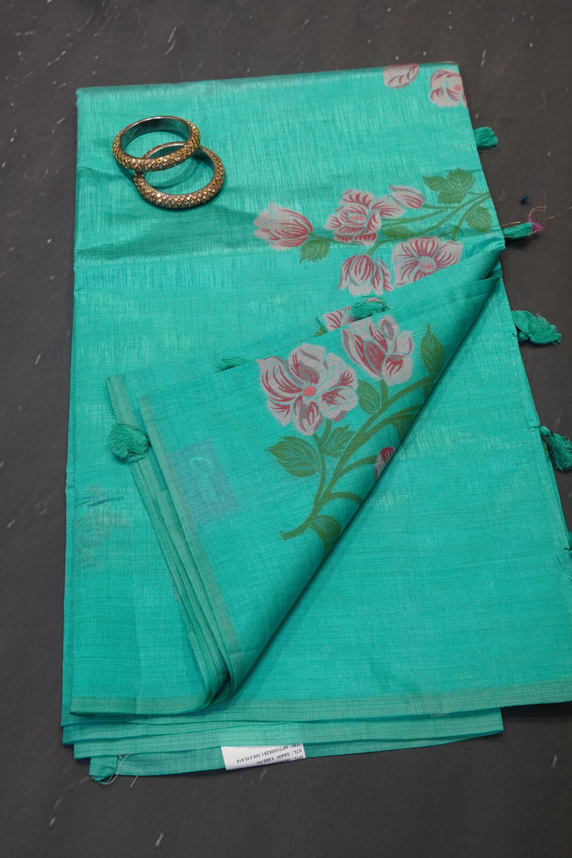 Semi Tussar Saree - Lilly Floral Sky Blue