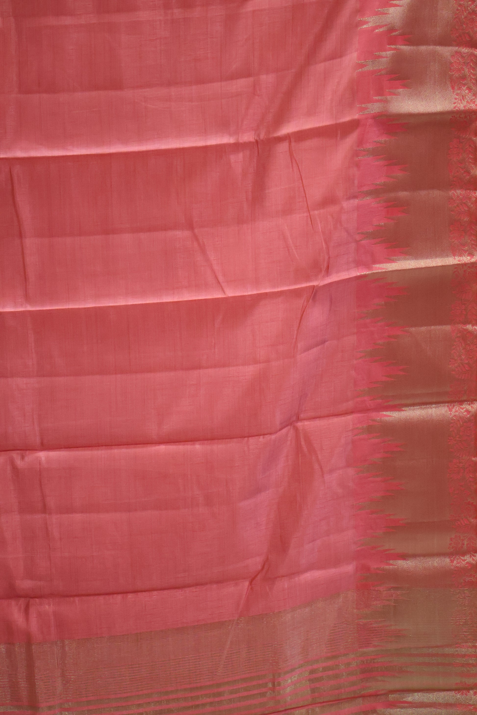 Semi Tussar Saree -Peach Pink Temp Flower