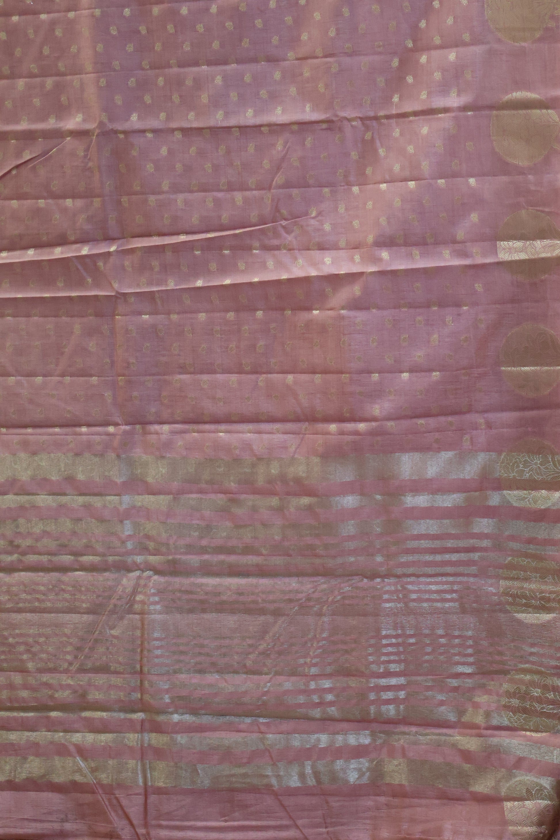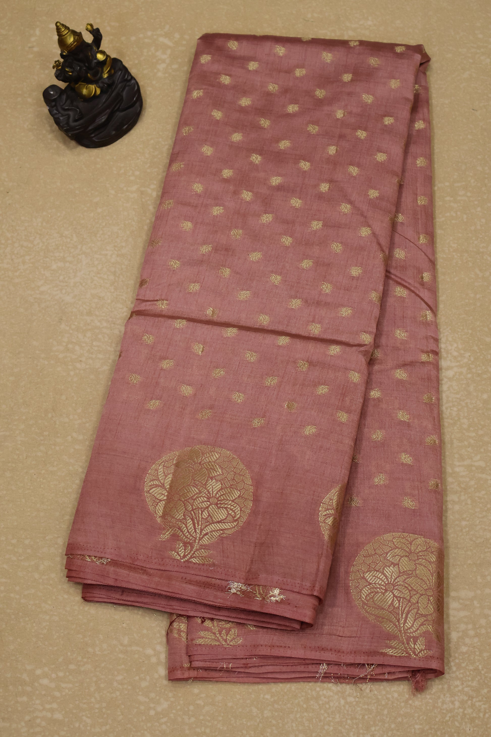Semi Tussar Saree -Lite Choco Brown Round Flower Design