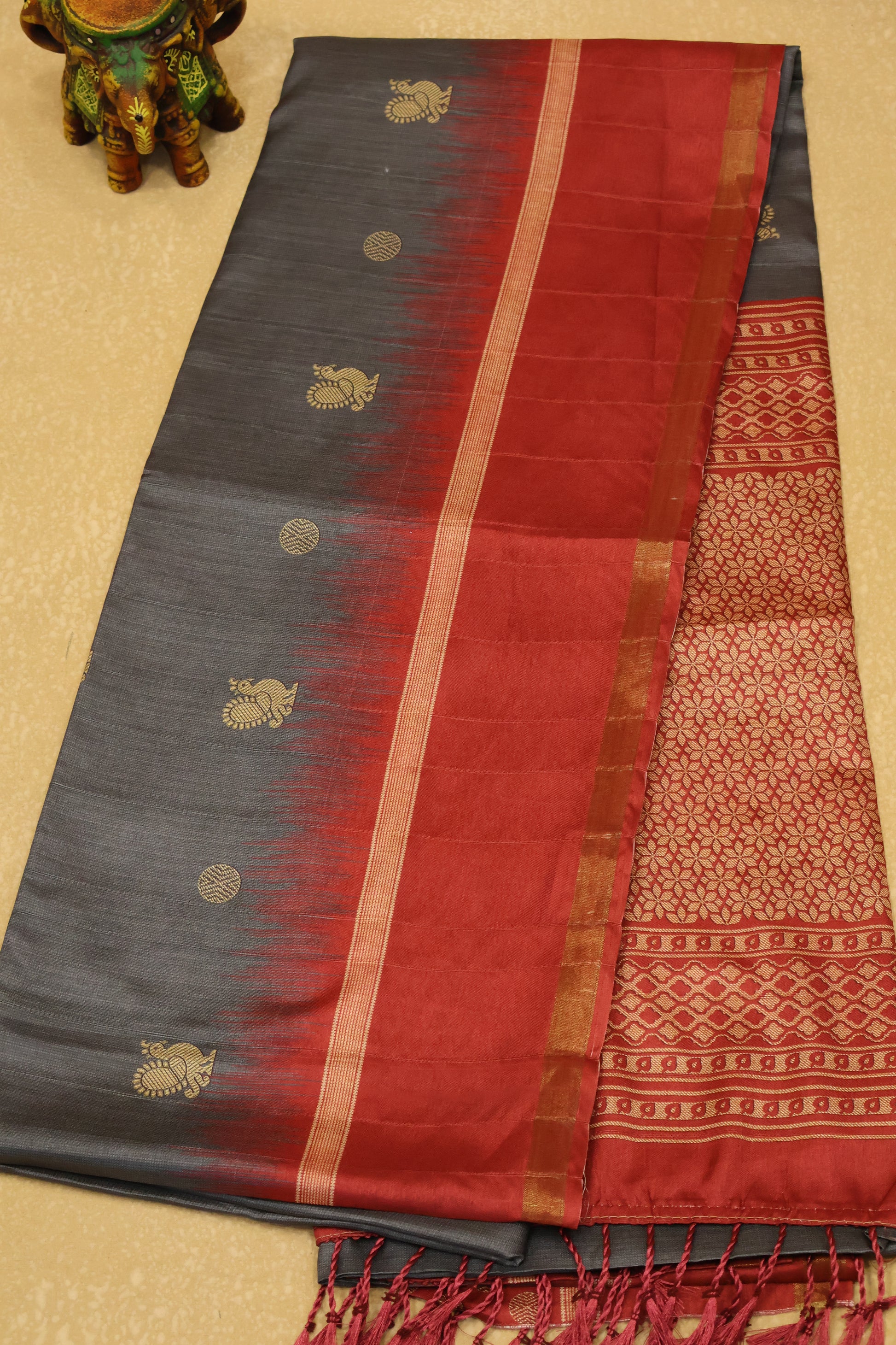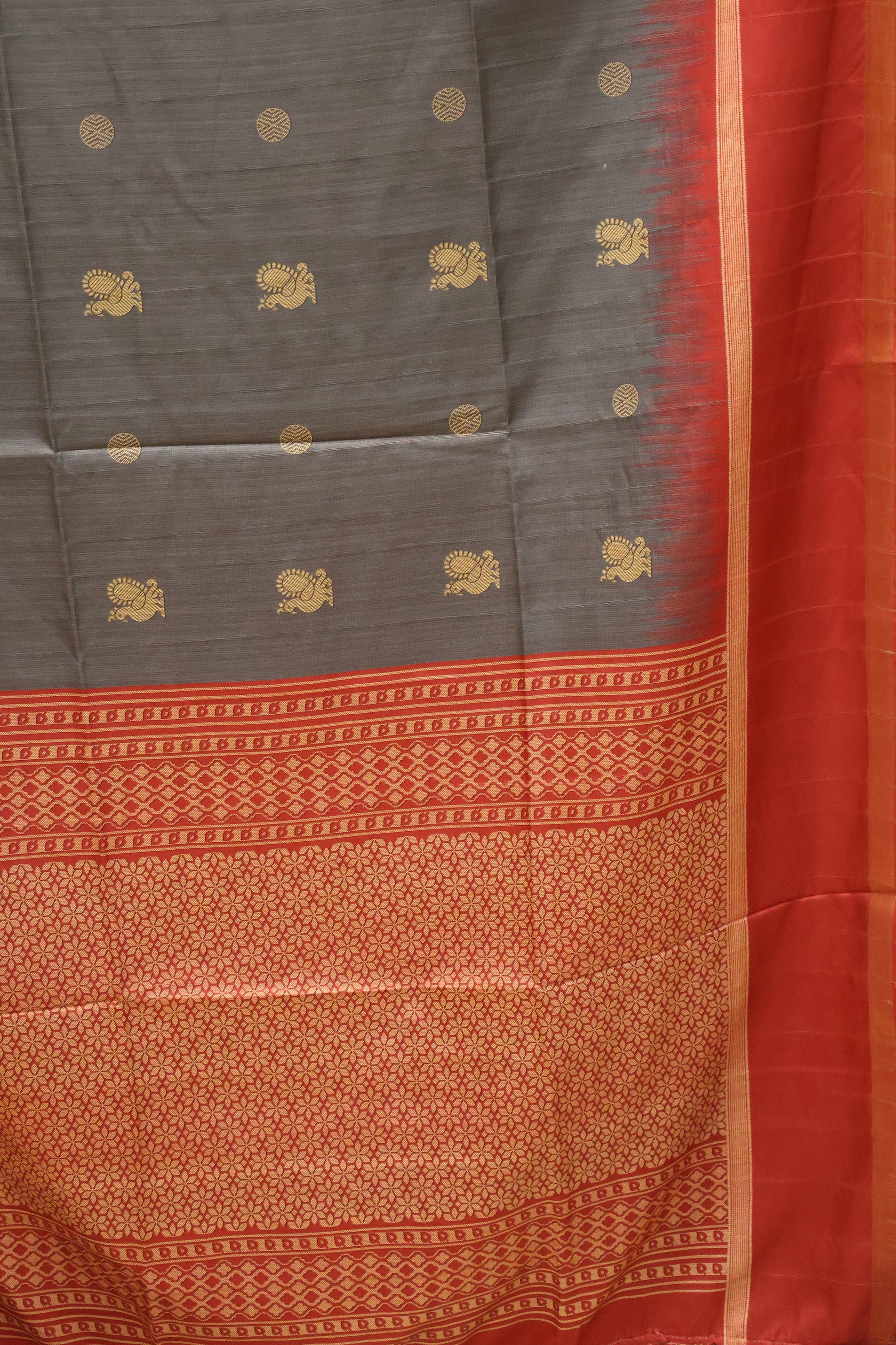Semi Tussar Saree Peacock Print-Grey