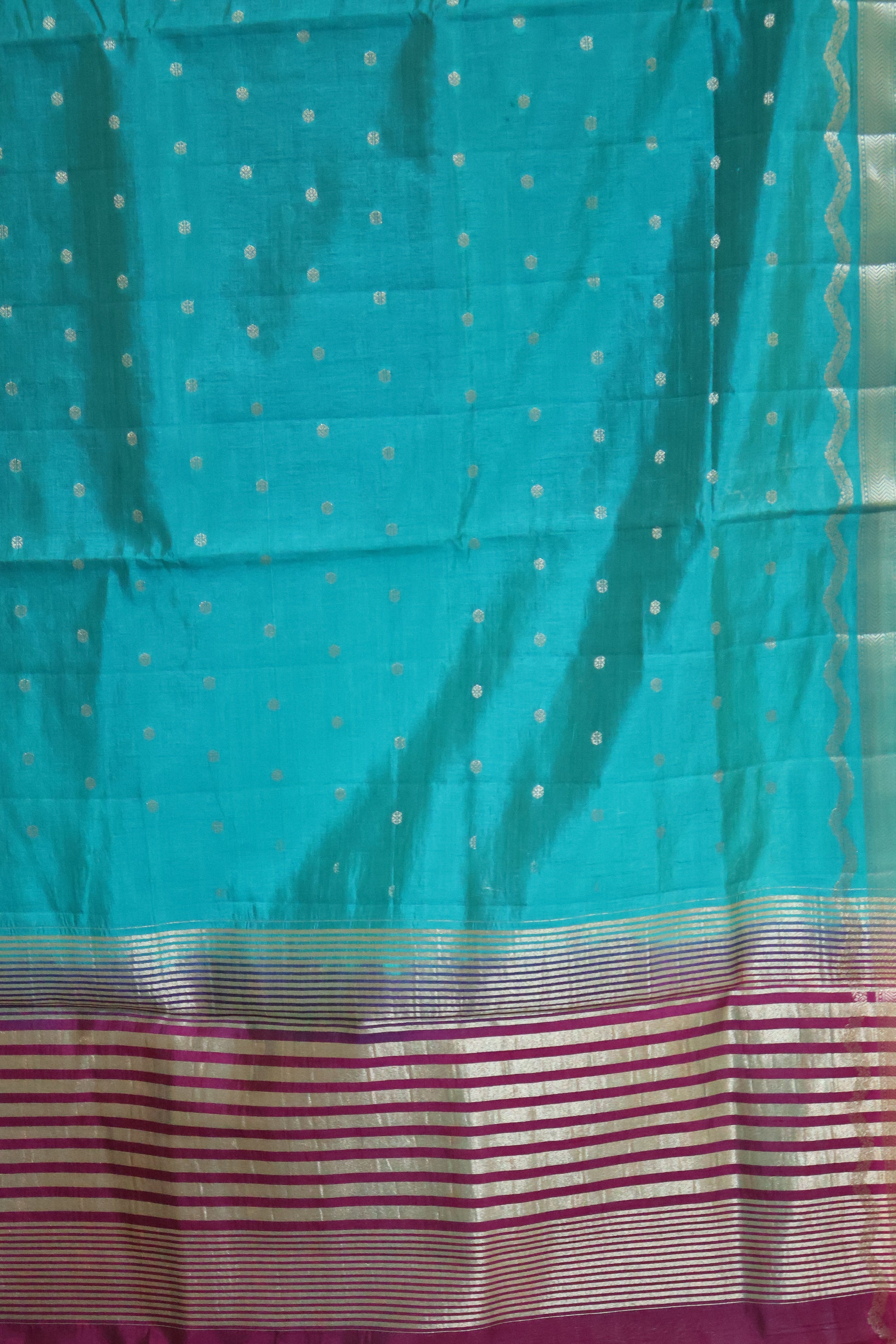 Semi Tussar Saree-Ramar Blue Small Round Buta
