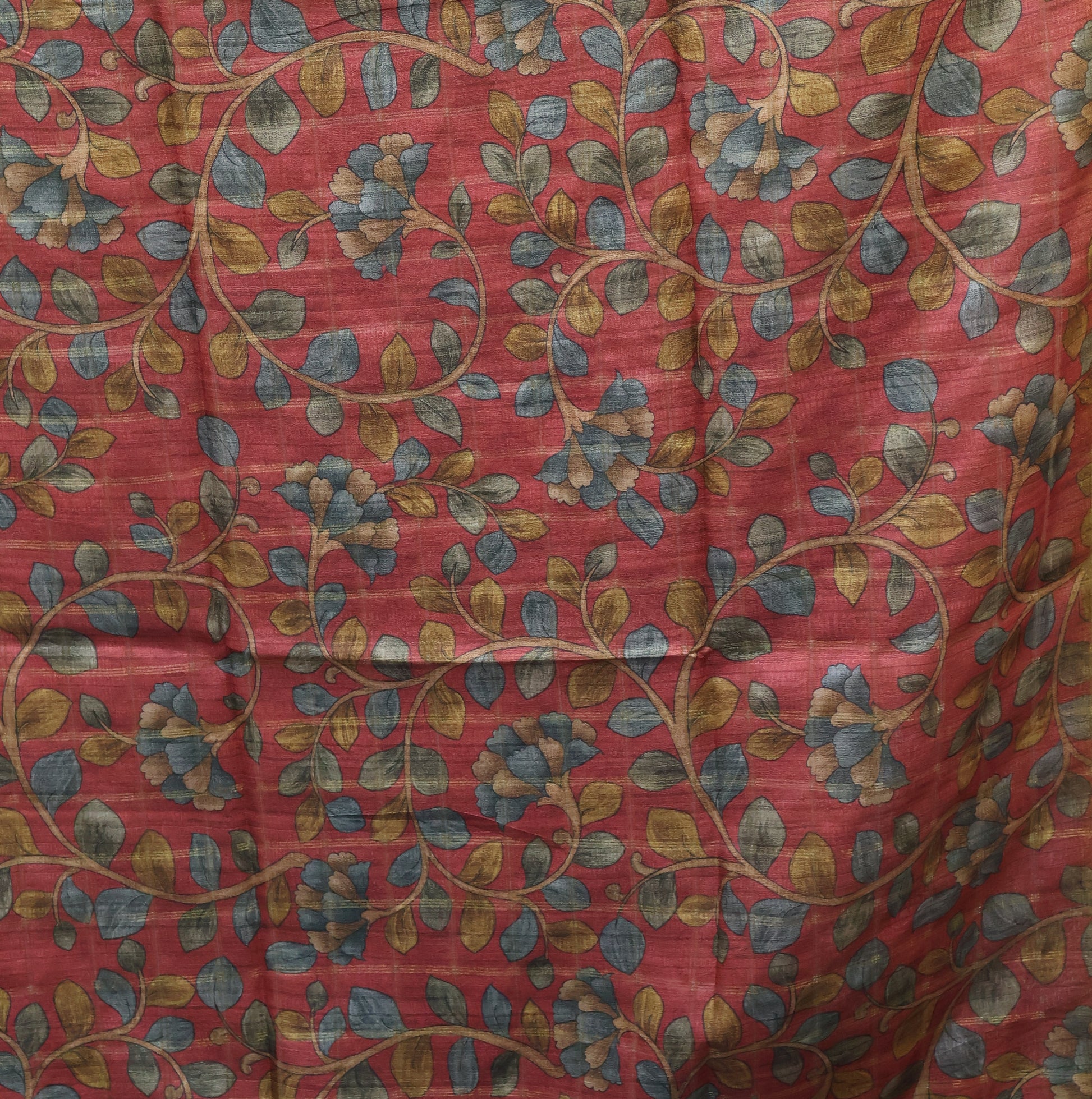 Semi Tussar Saree - Radha Krishna Print Mustard