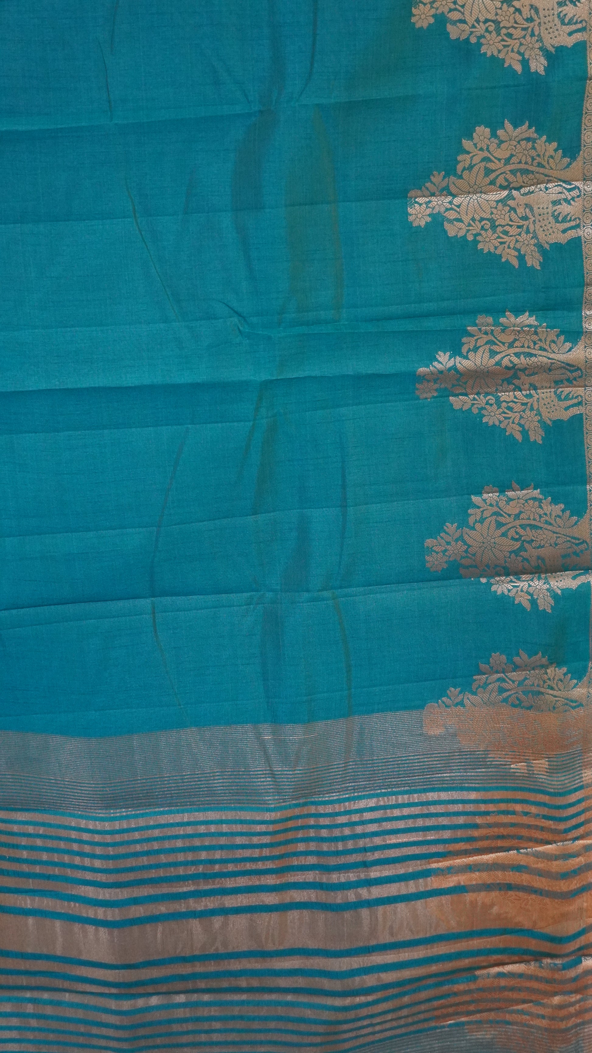 Semi Tussar Saree -Ramar Blue Deer Small Border