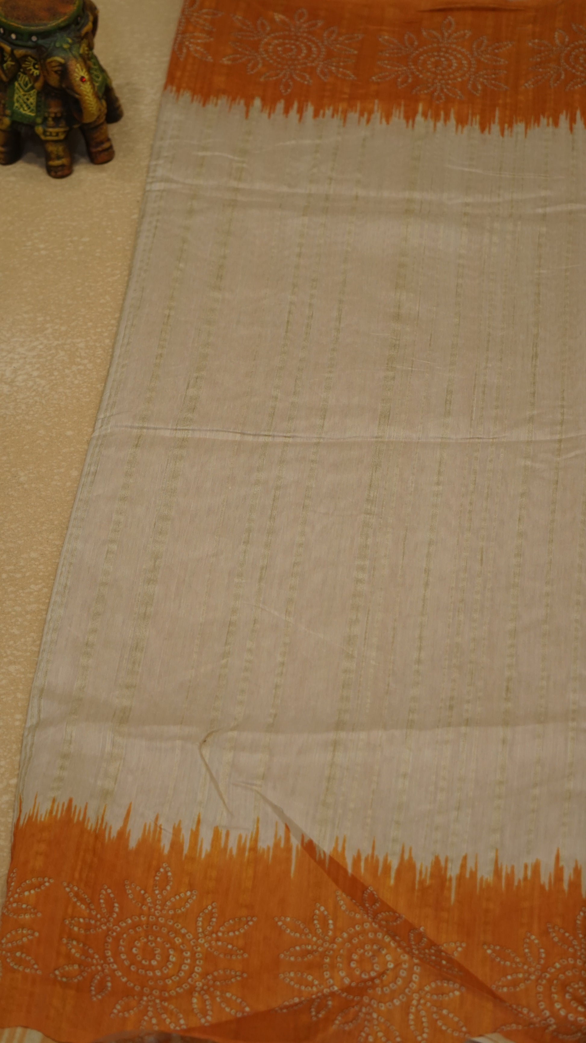 Semi Tussar Saree - Sandal & Orange