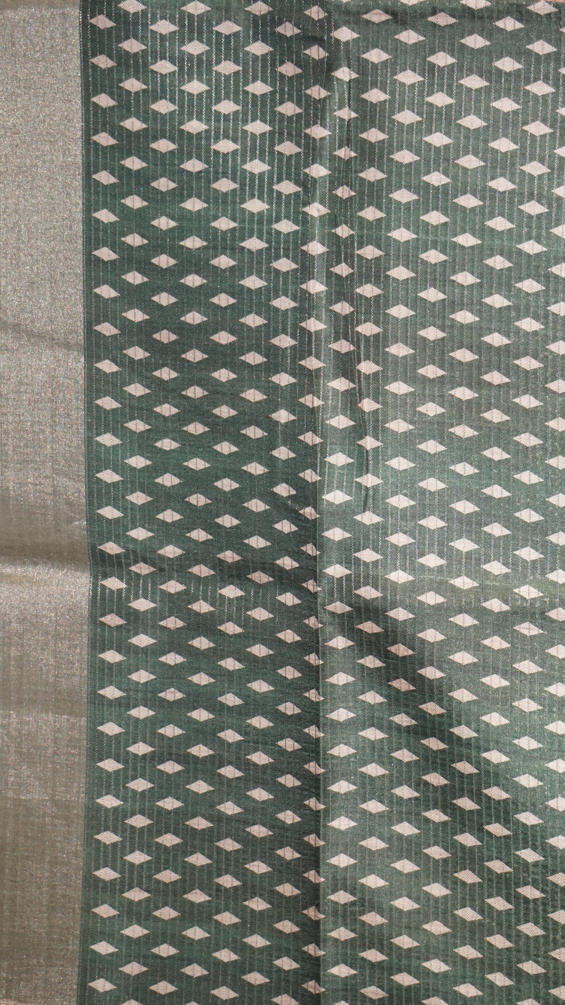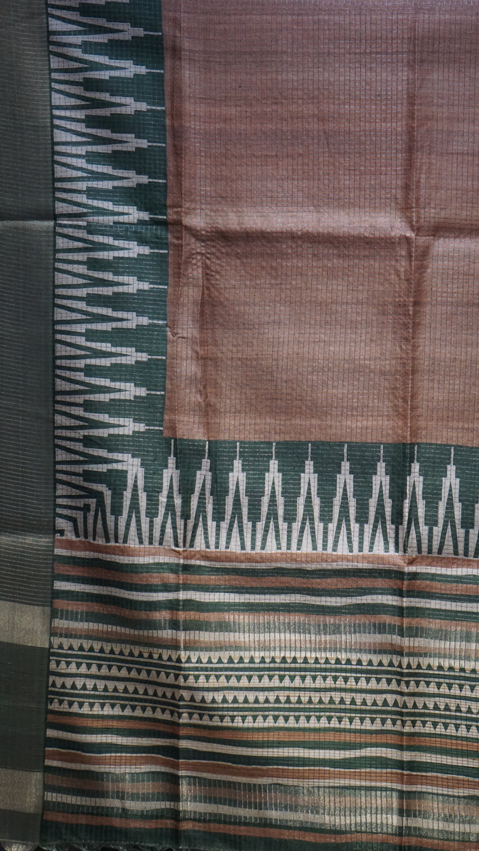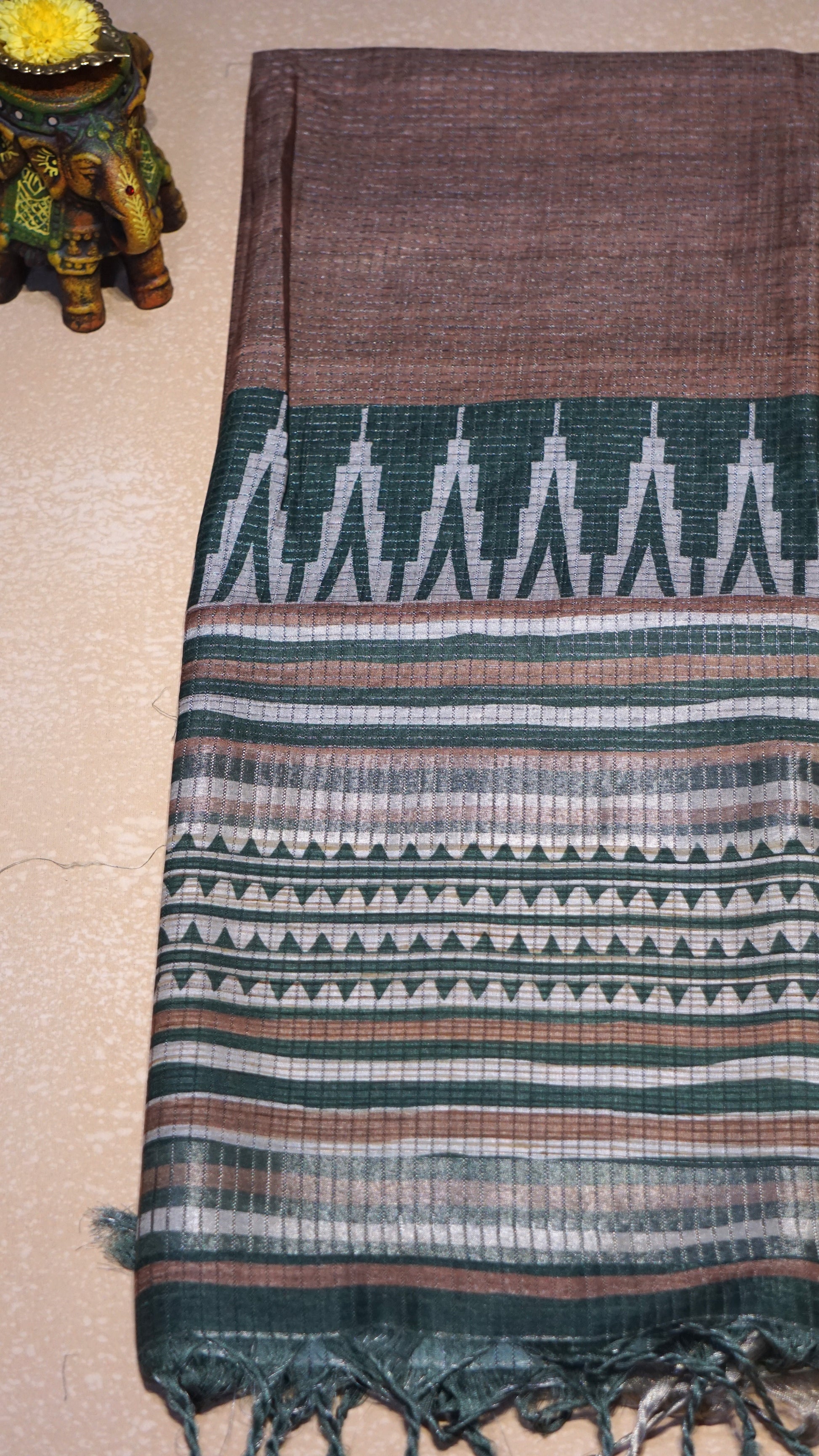 Semi Tussar Saree With Art Zari Chocolate Brown - Green