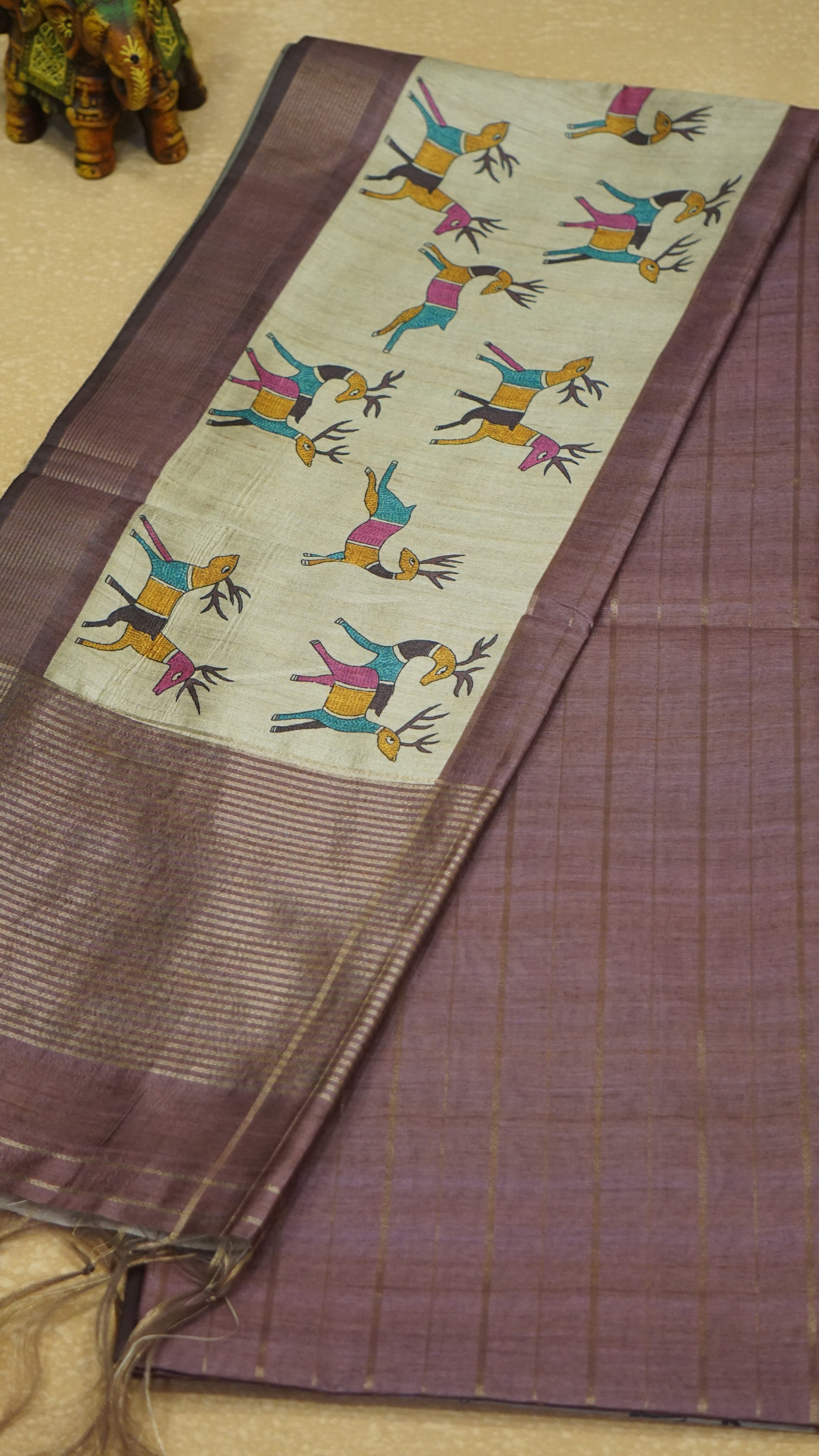 Semi Tussar Saree With Deer Border - Lavender