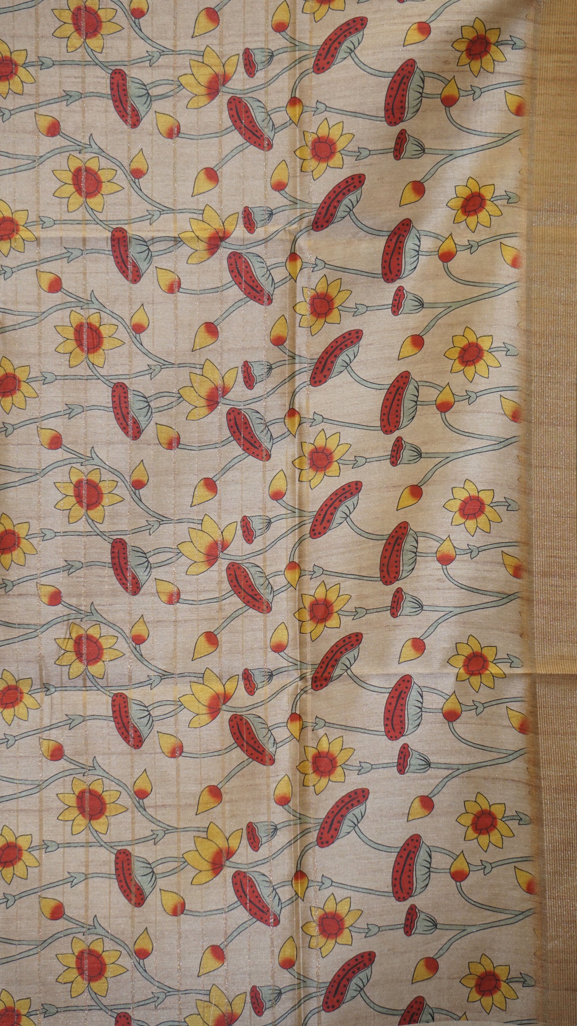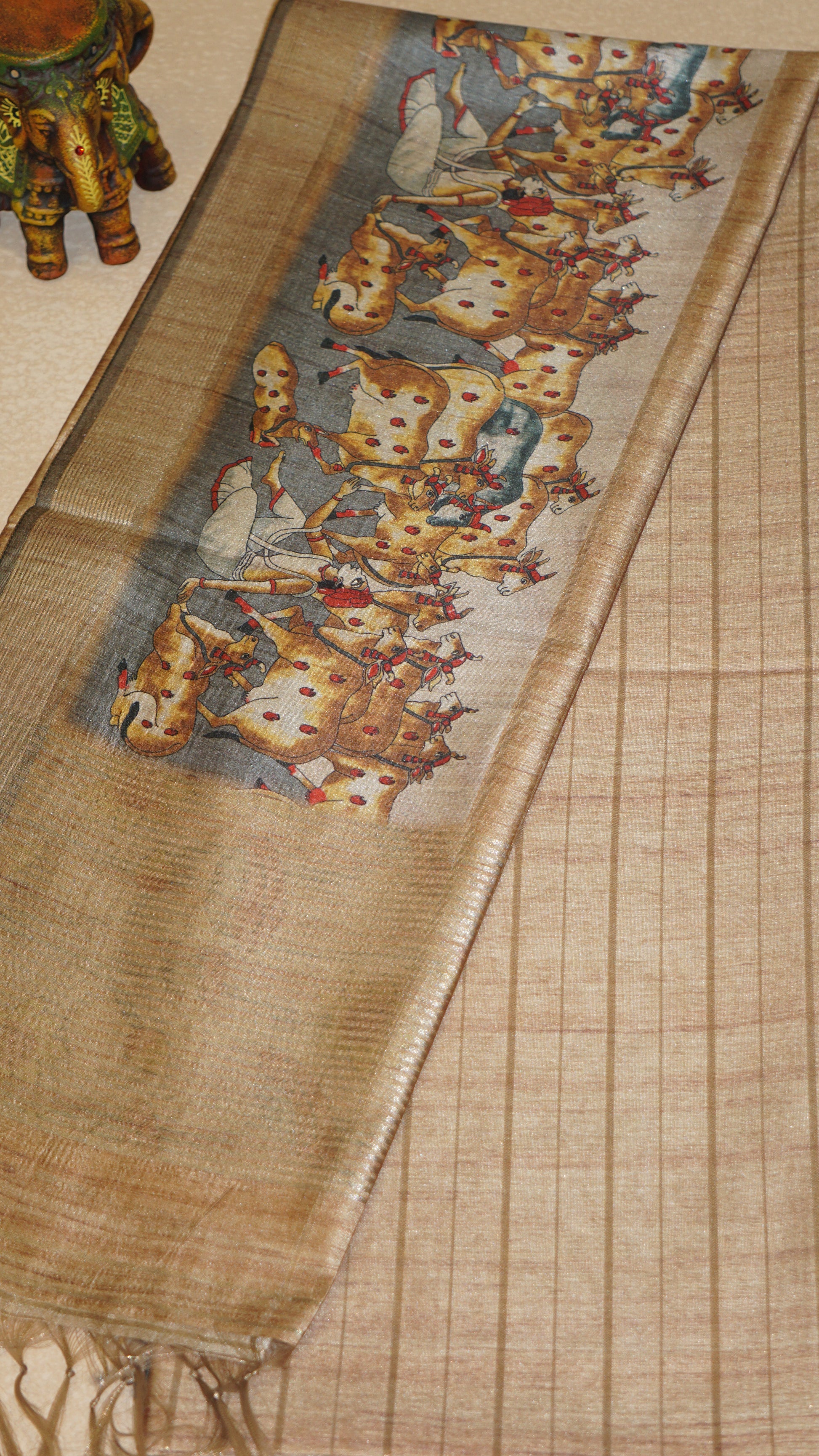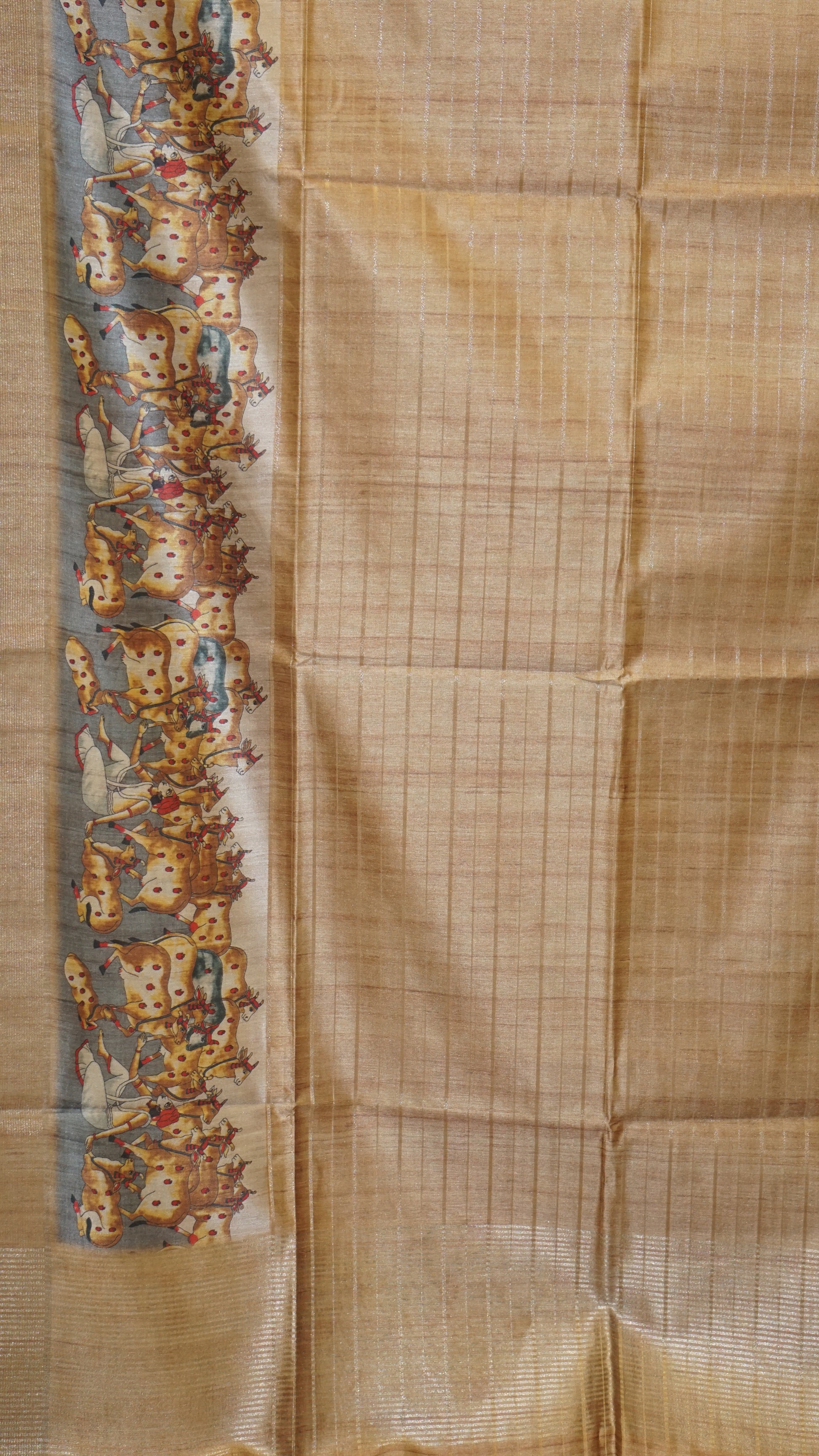 Semi Tussar Saree With Pichwai Border - Golden Shade