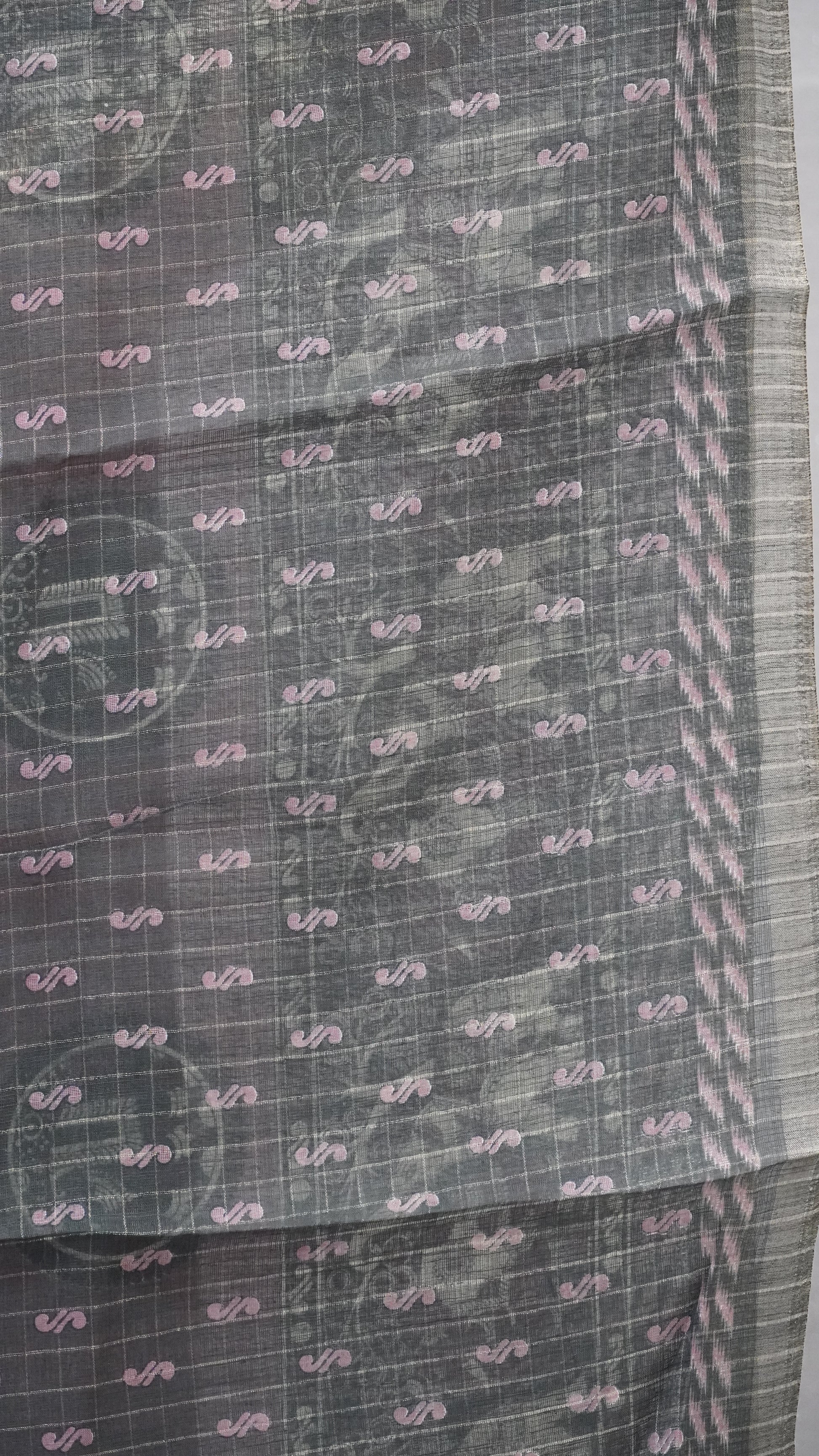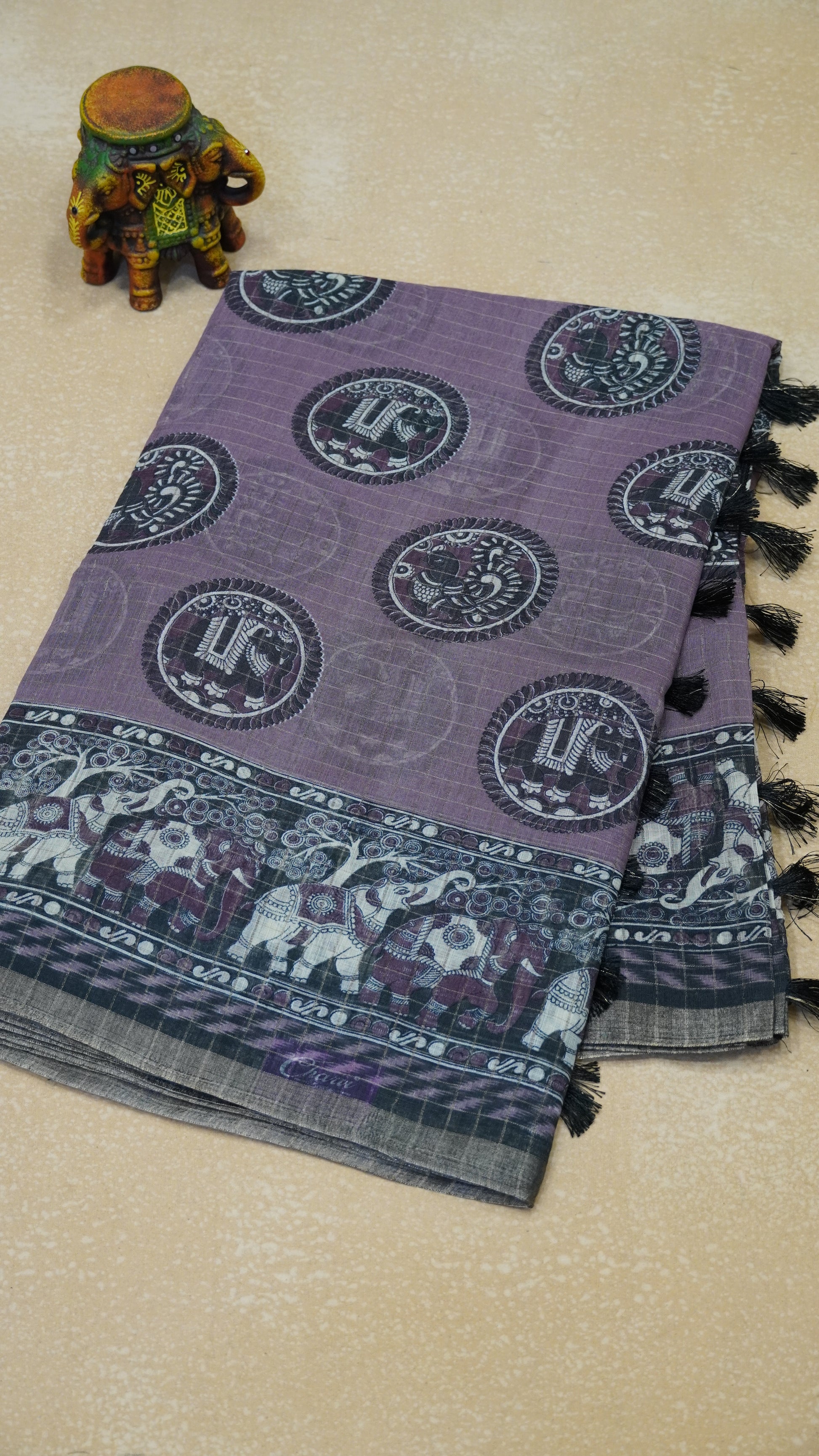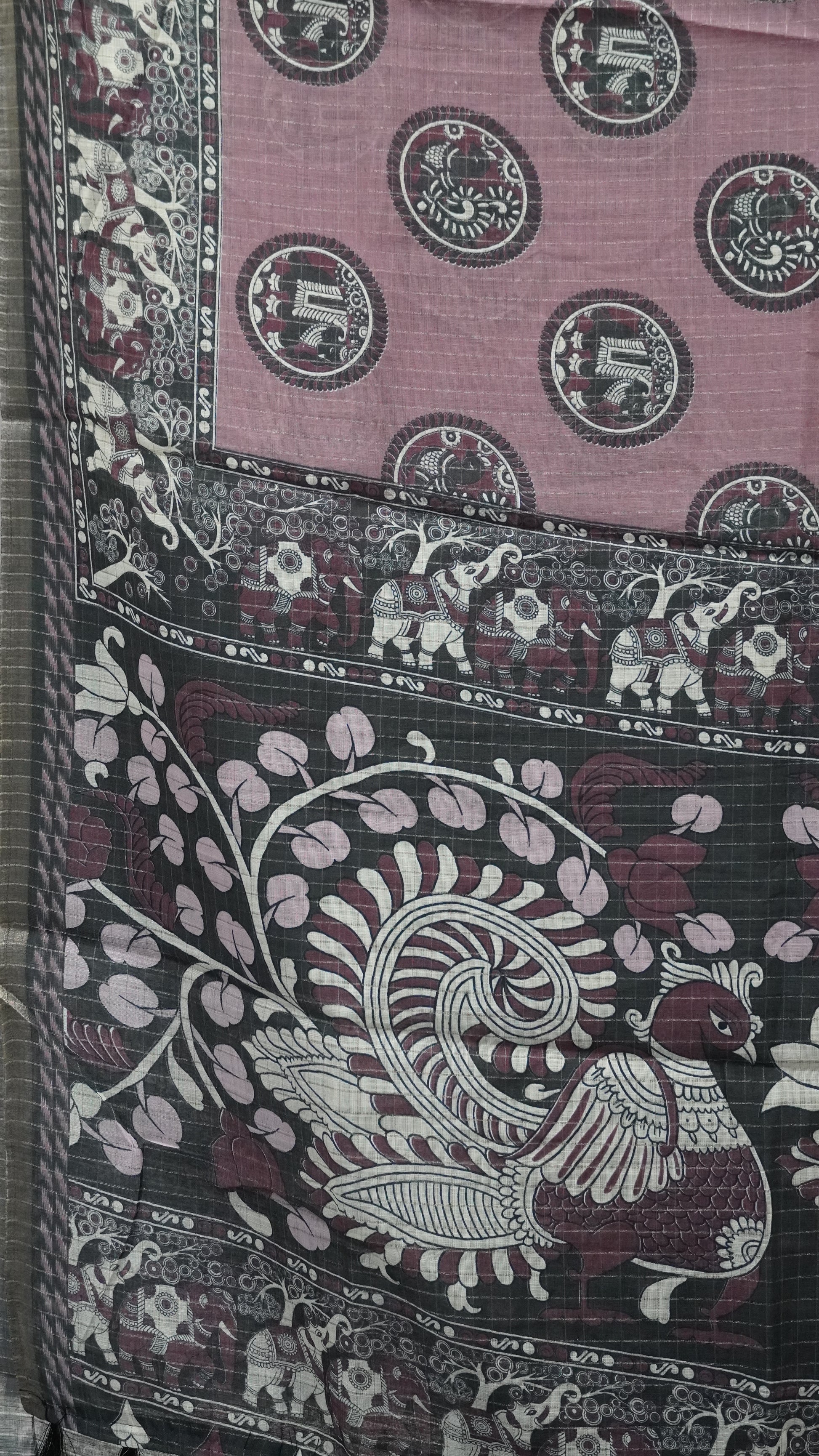 Semi Tussar Saree With Zari Checks And Figure Prints - Mauve