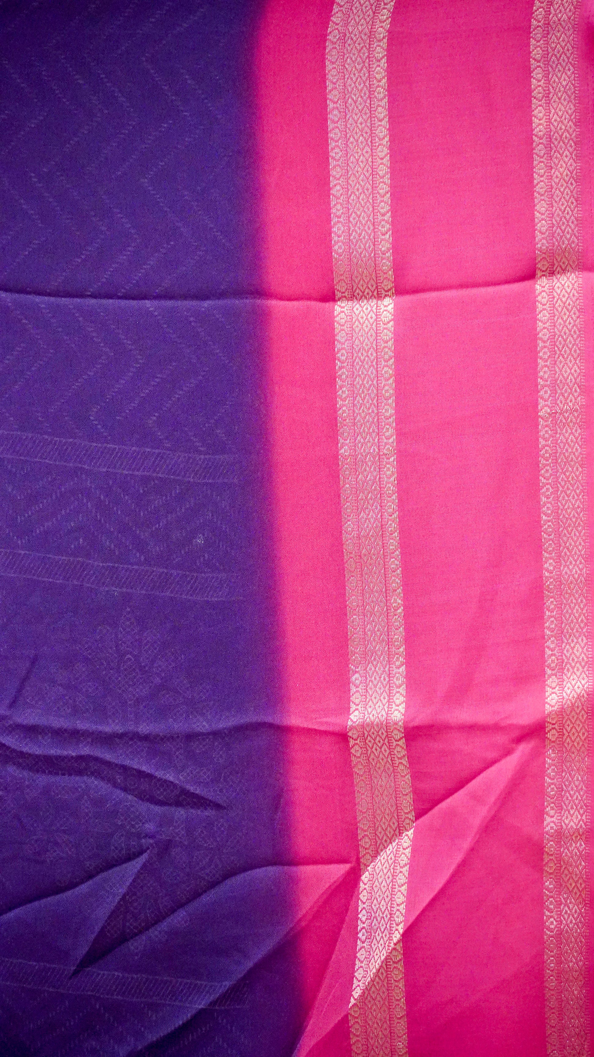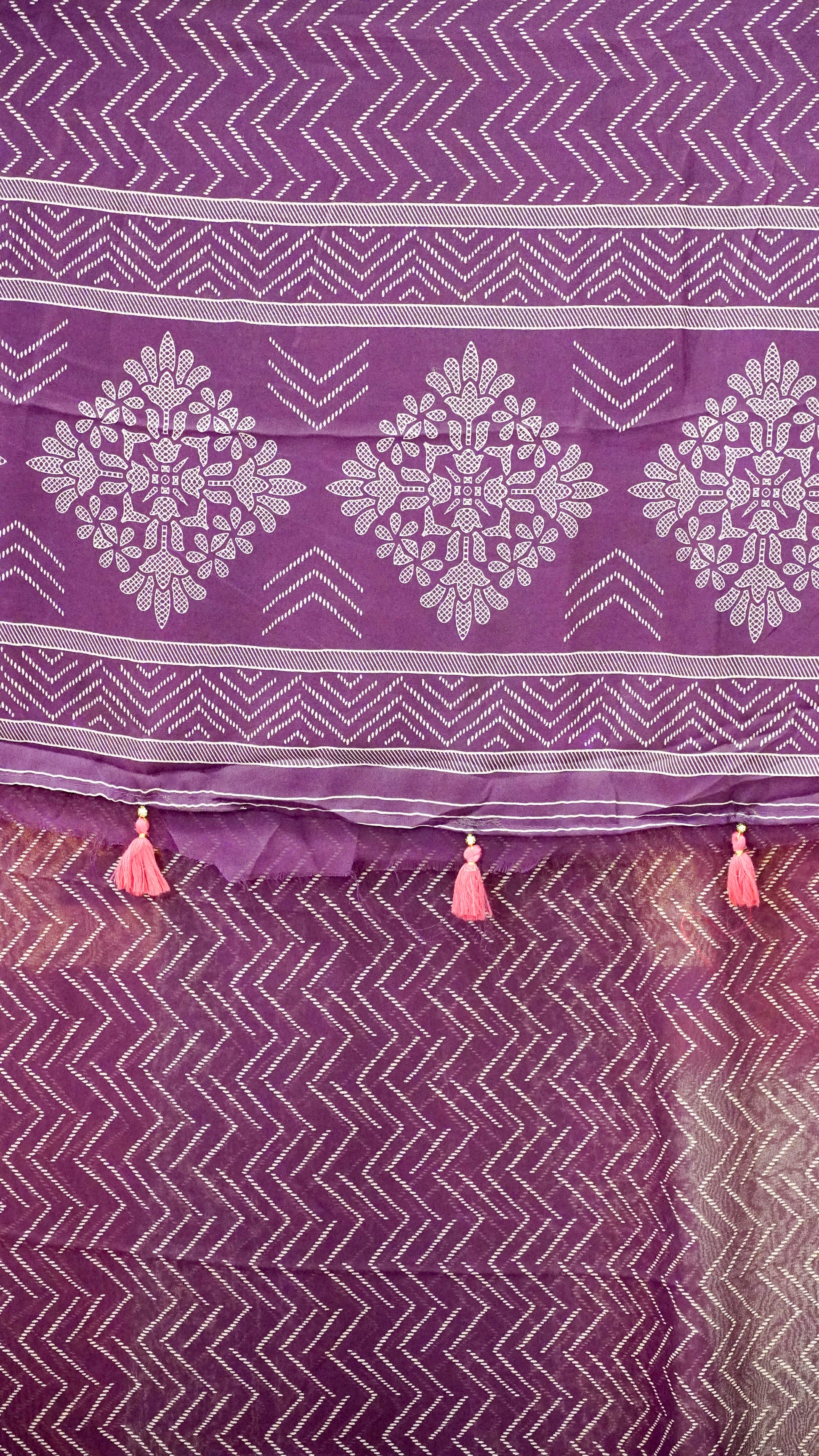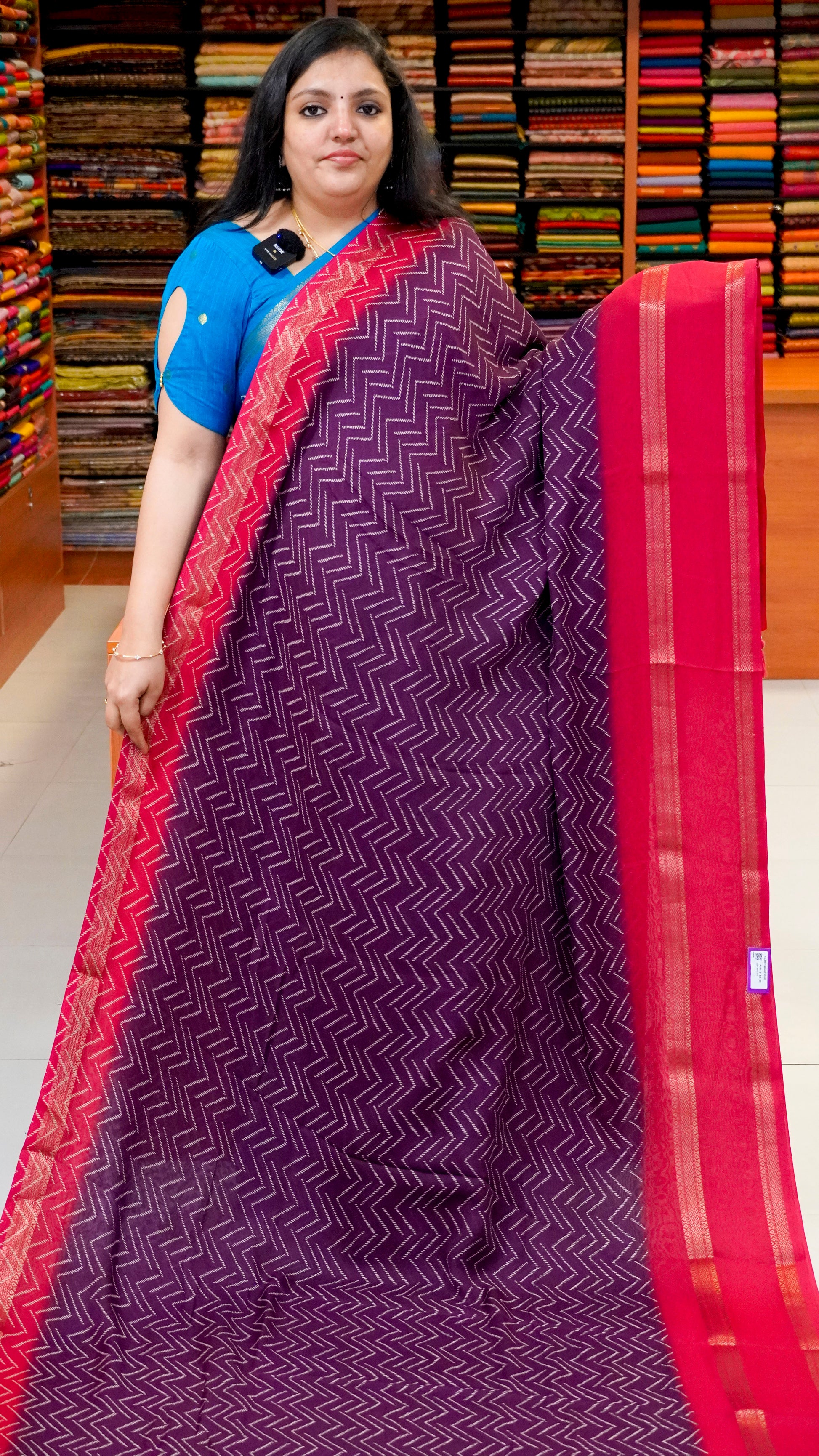 Shiffon Saree Arrow Print With Gap Zari Border Wine To Red