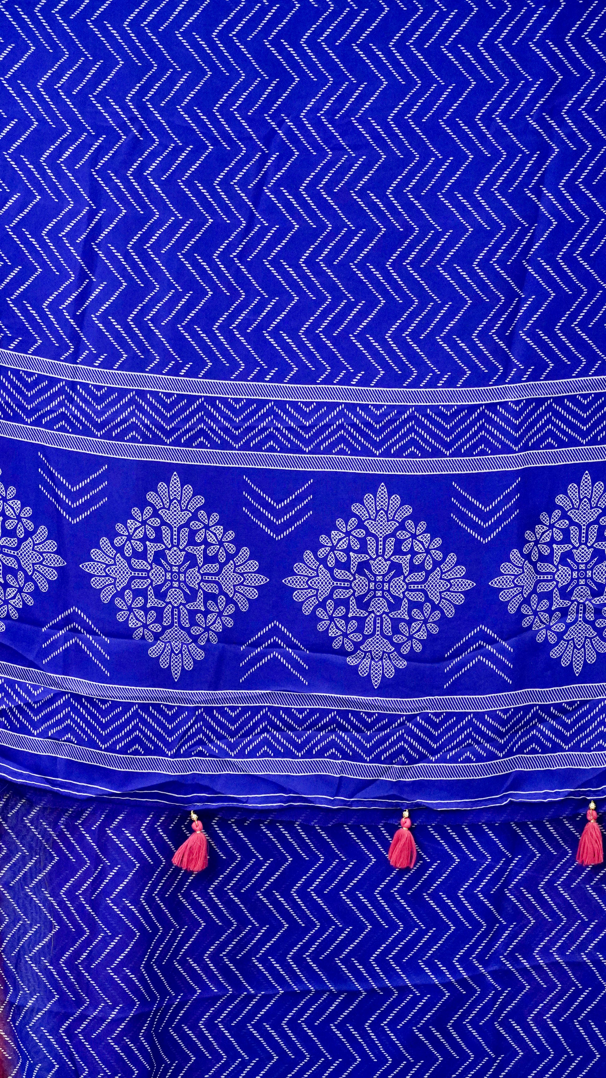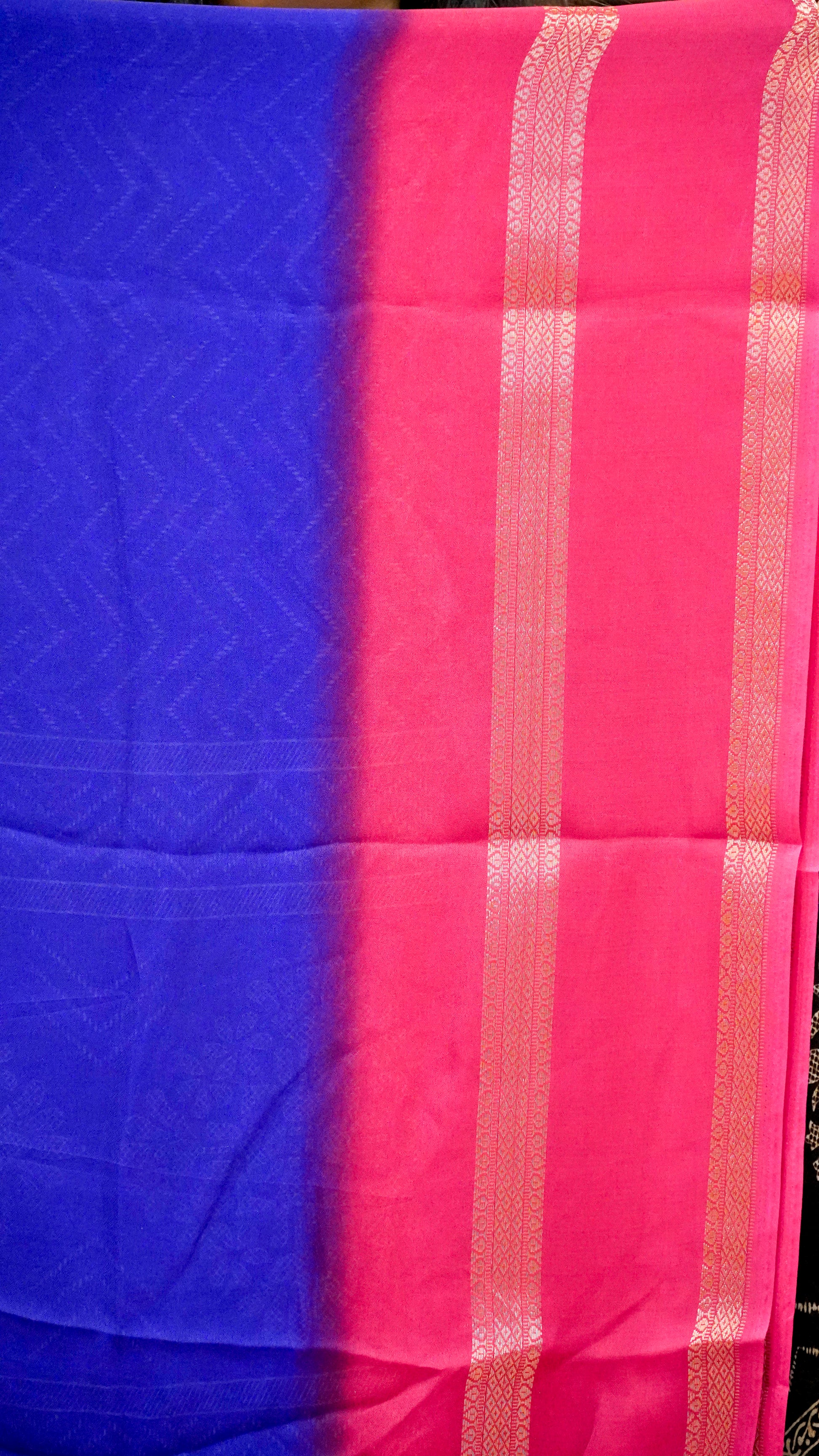 Shiffon Saree Arrow Print With Gap Zari Border Purple To Red