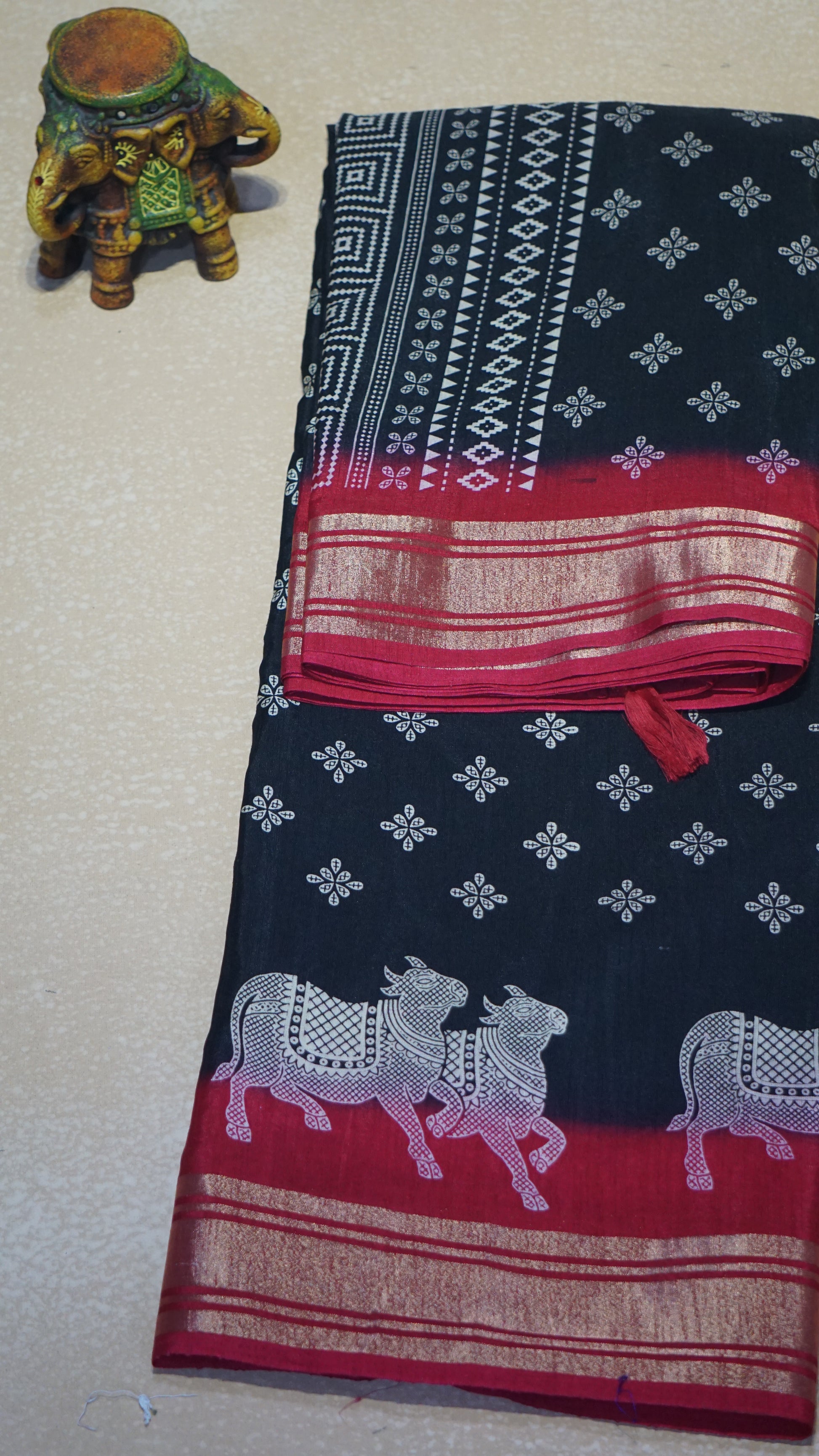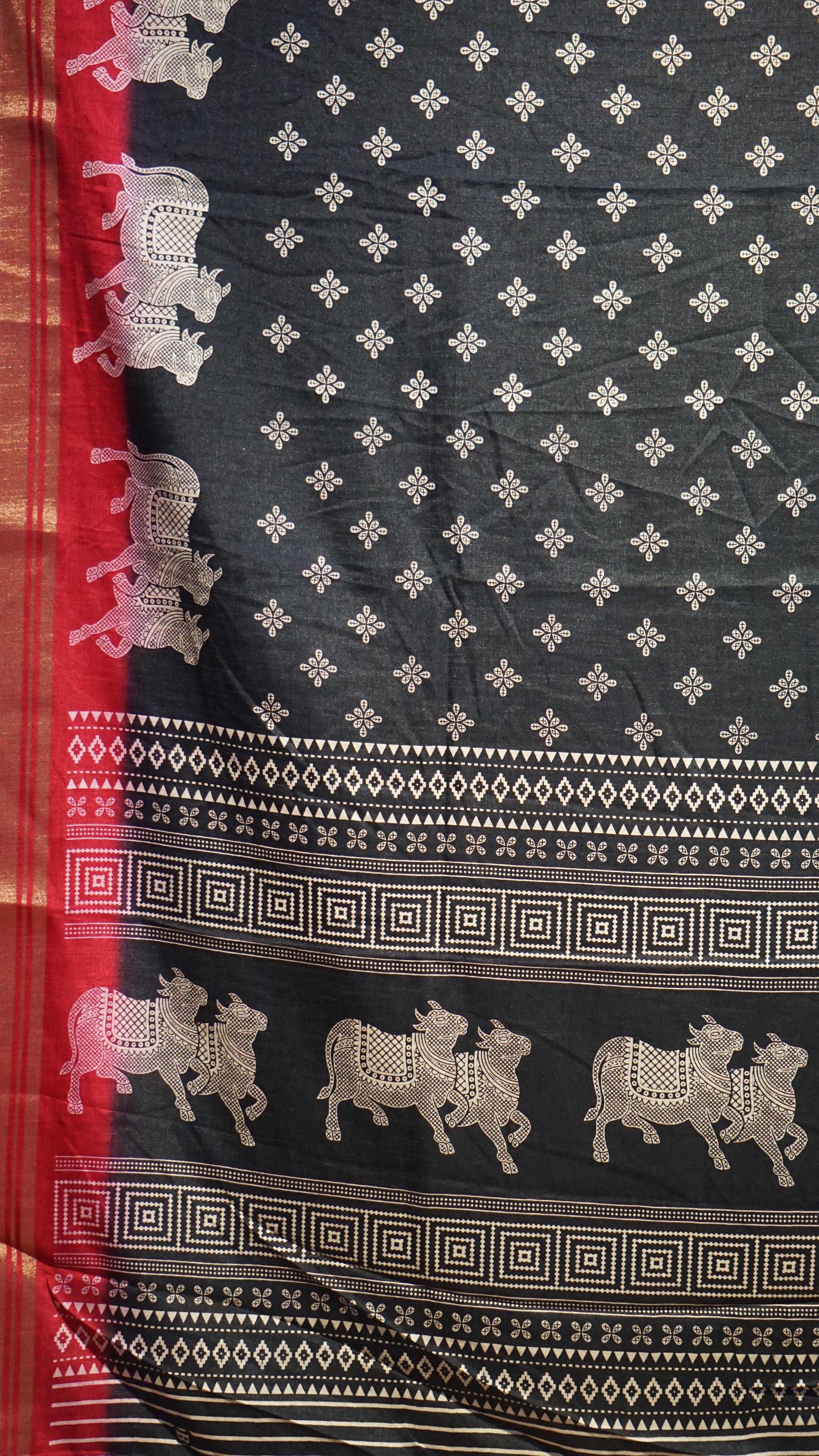 Shiffon Saree Cow Print Black - Red