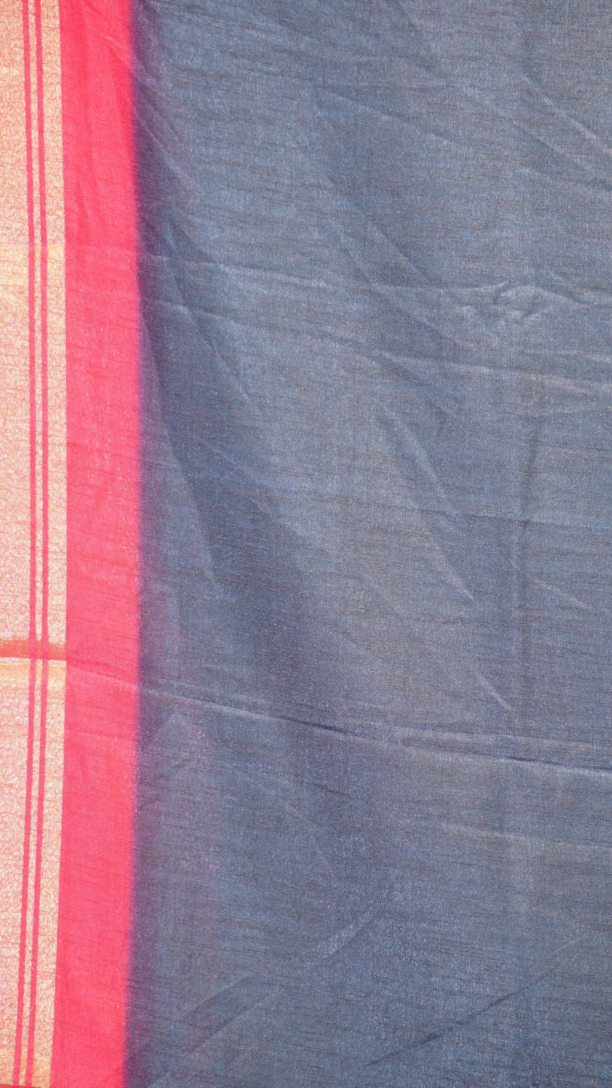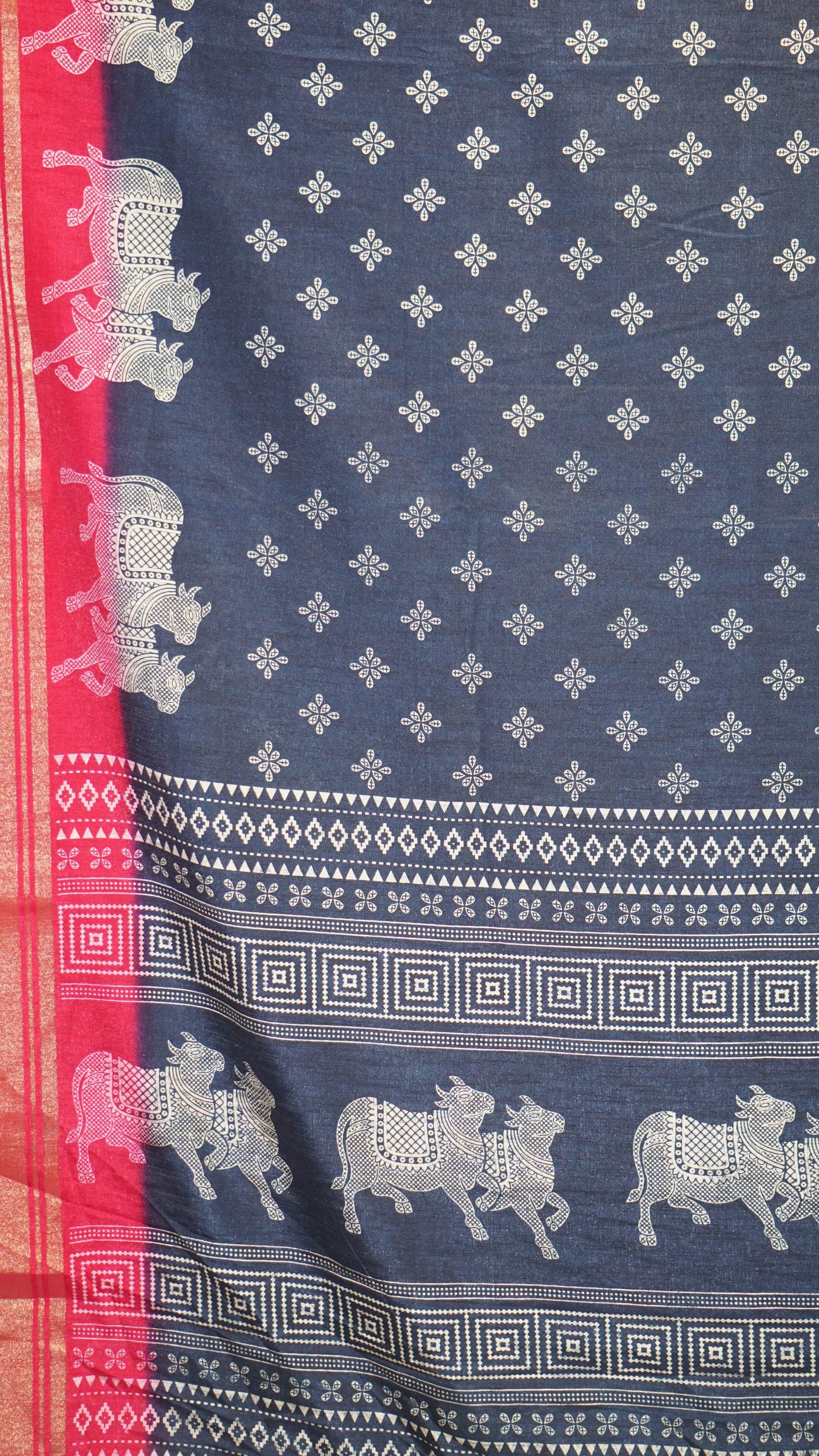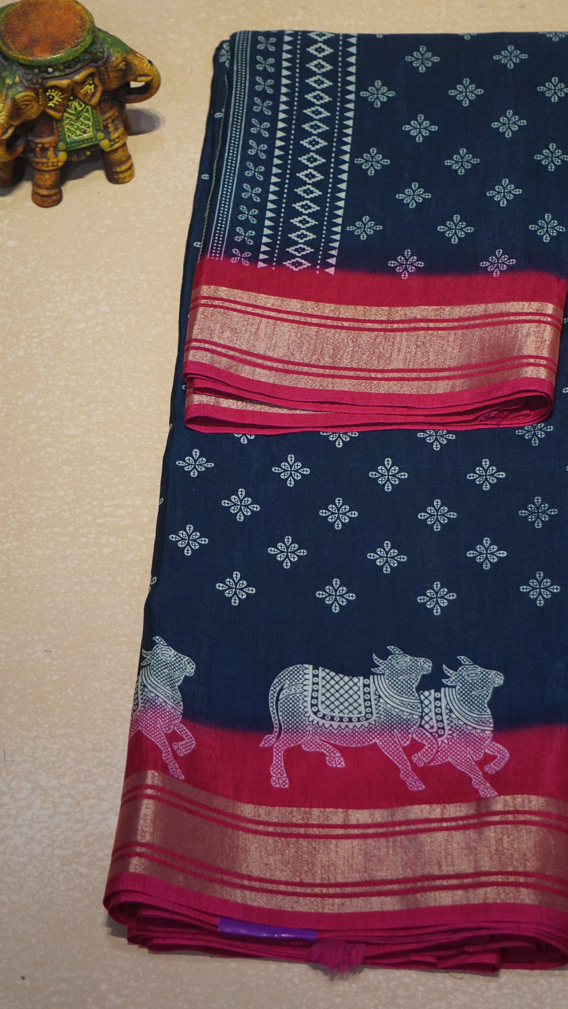 Shiffon Saree Cow Print Peacock Blue - Pink