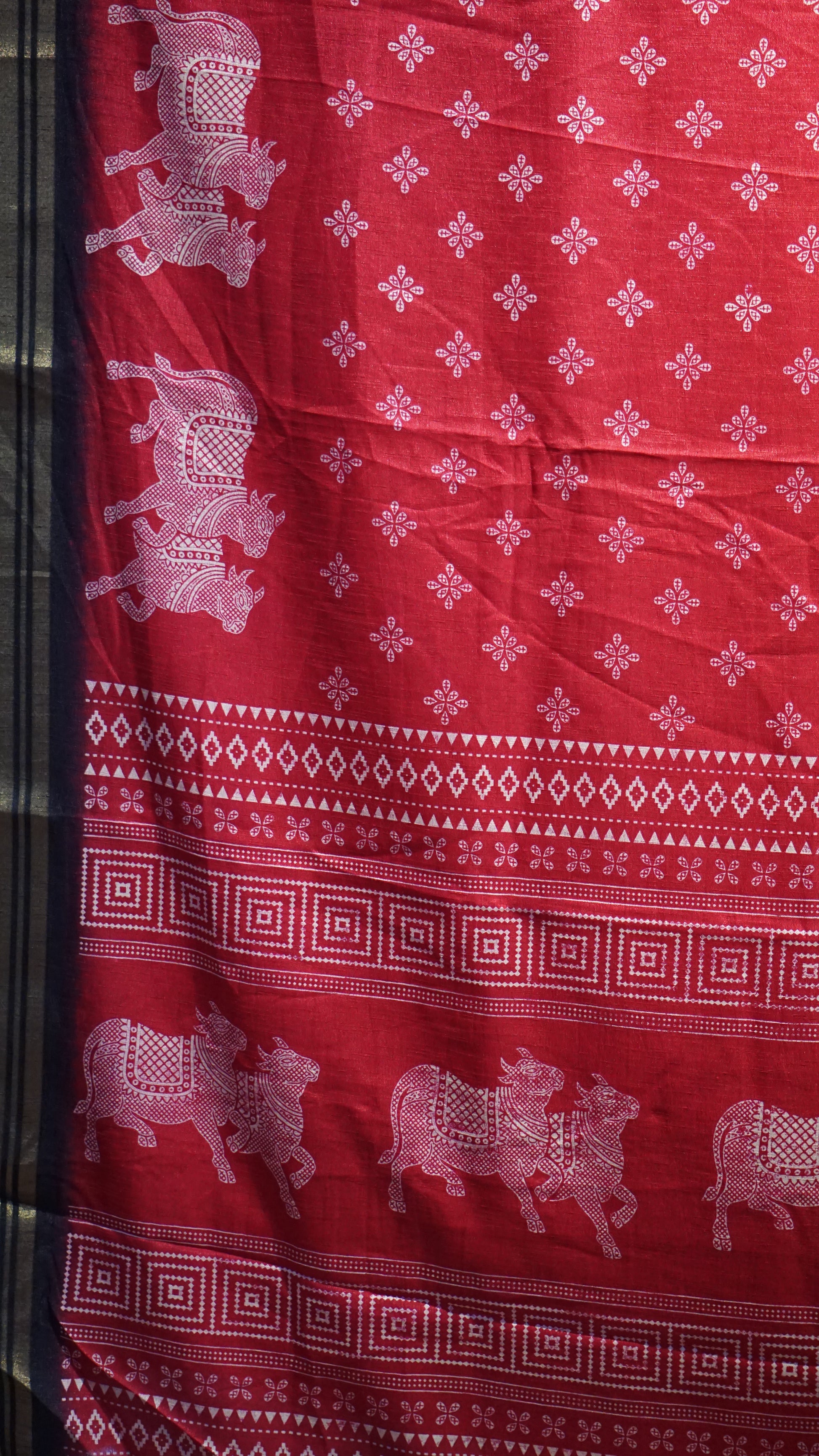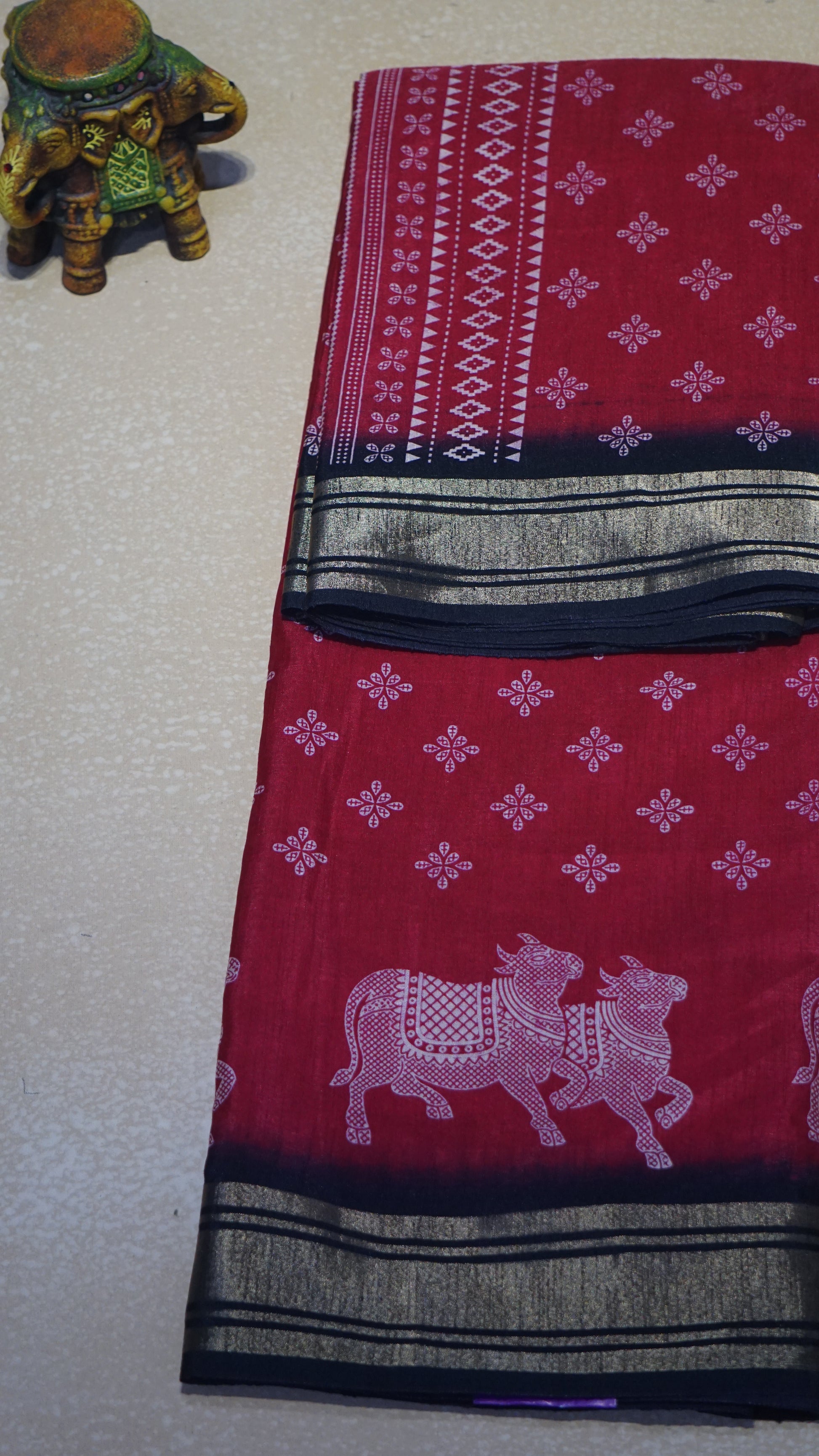 Shiffon Saree Cow Print Red - Black