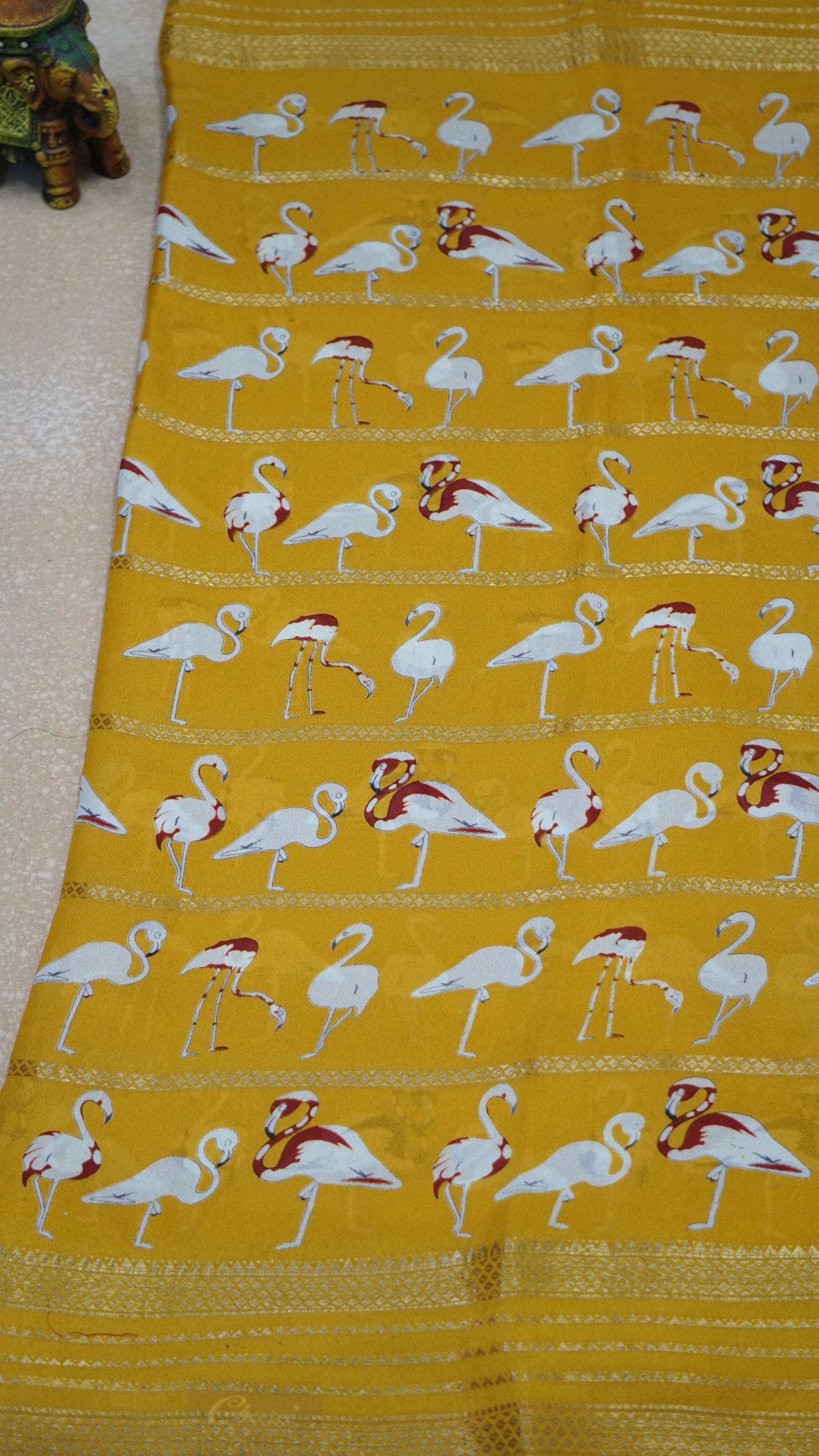 Shiffon Saree Flamingo Design - Mustard Yellow