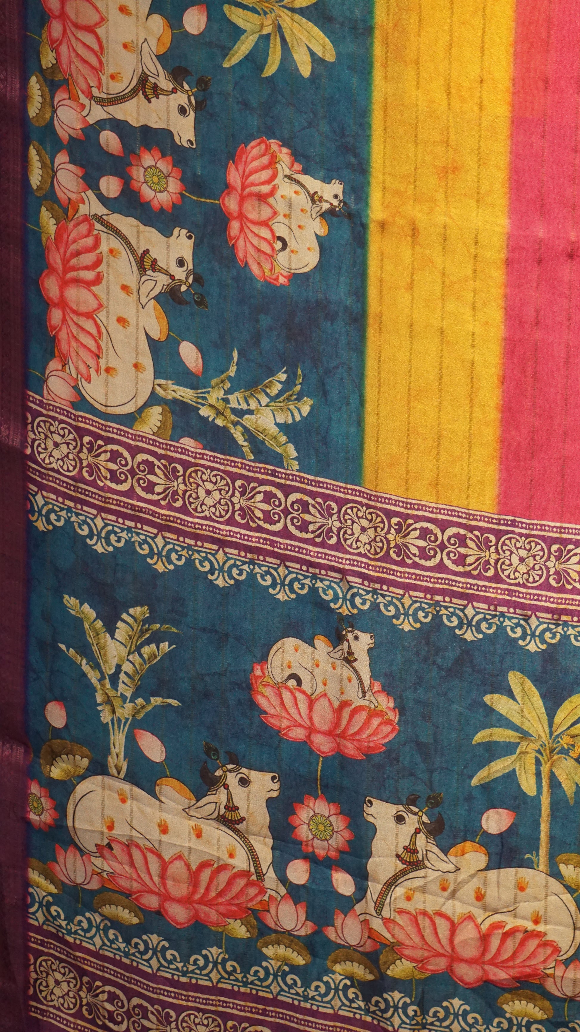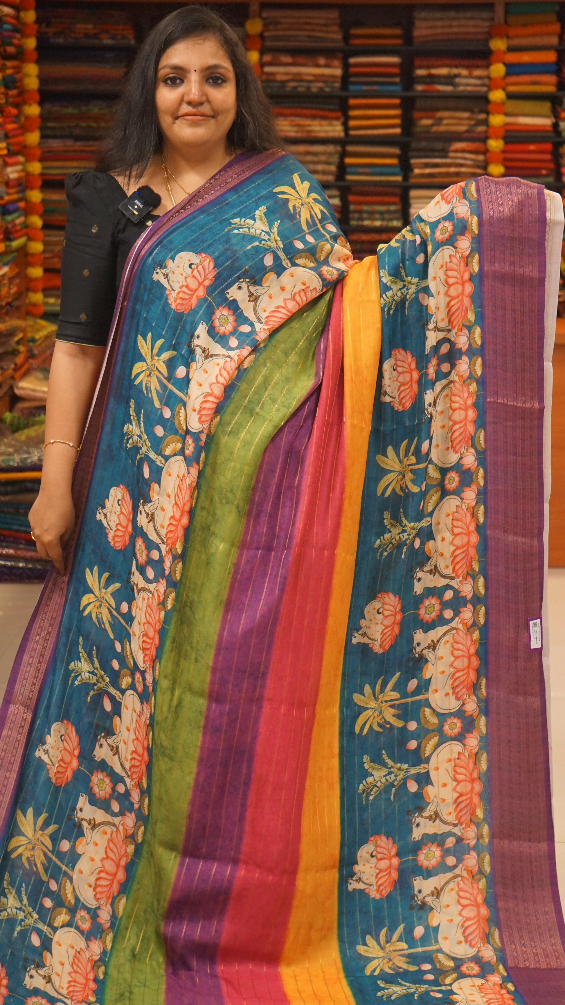 Shiffon Saree Pichwai Print Teal Blue