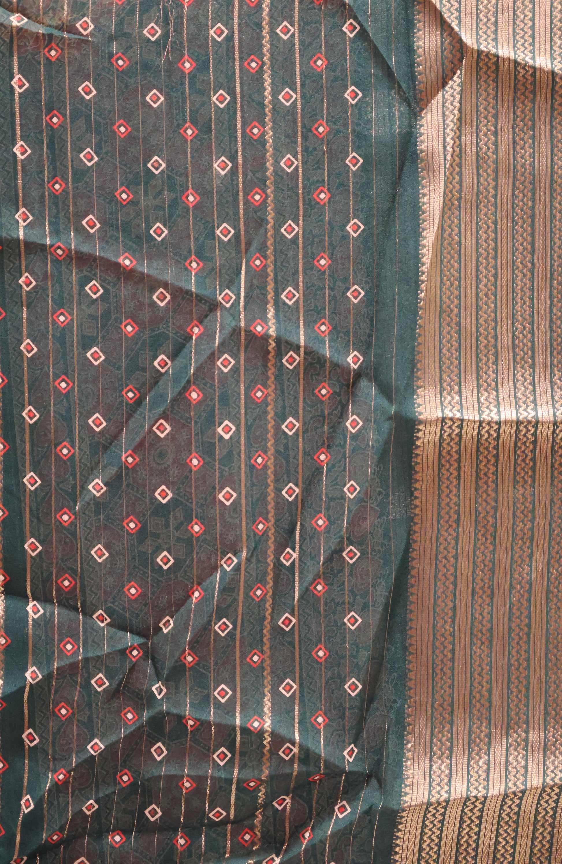 Shiffon Saree-Bottle Green Body Line ajrakh