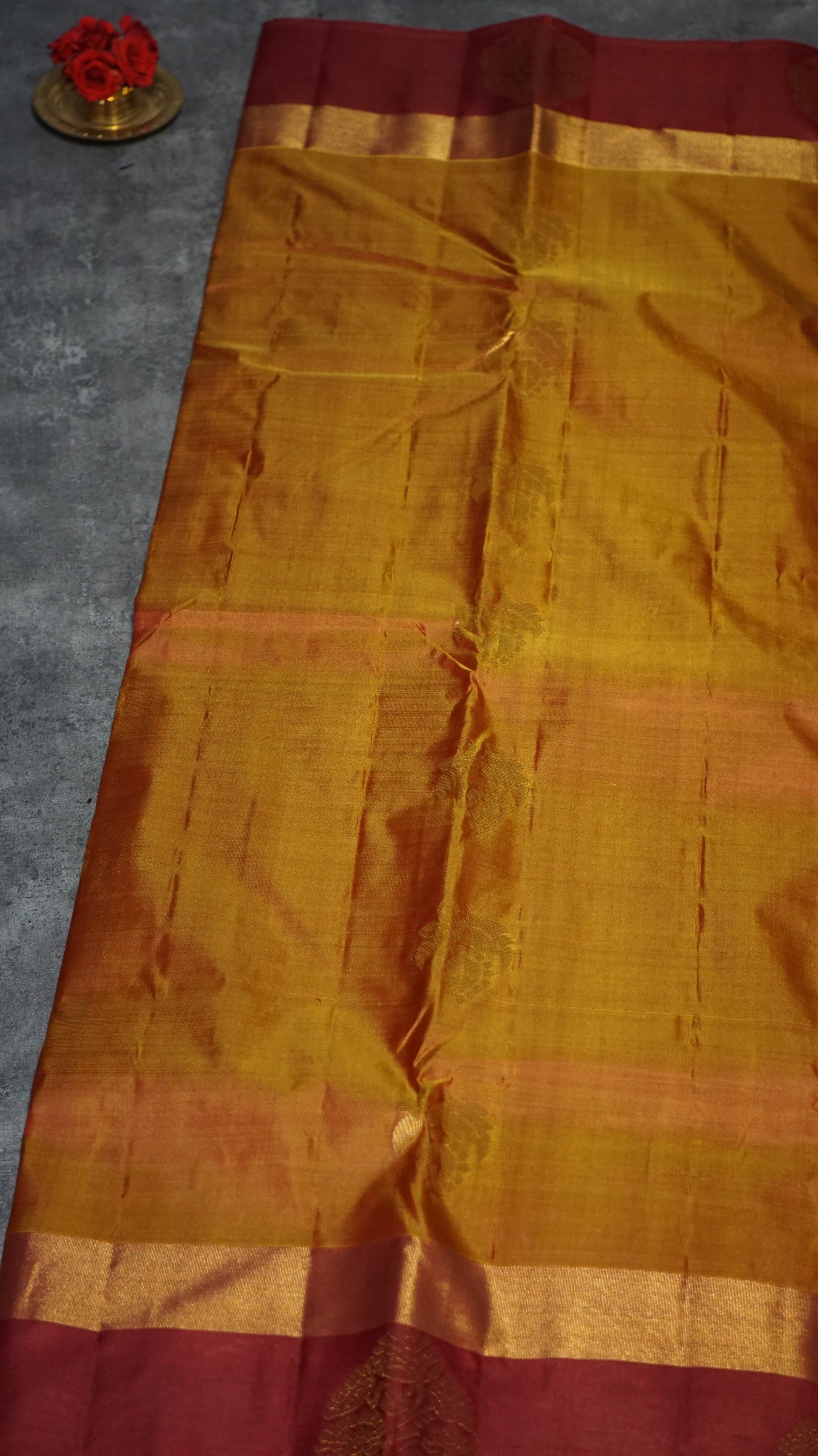 Semi Kanjeevaram Saree Butta Mustard Yellow