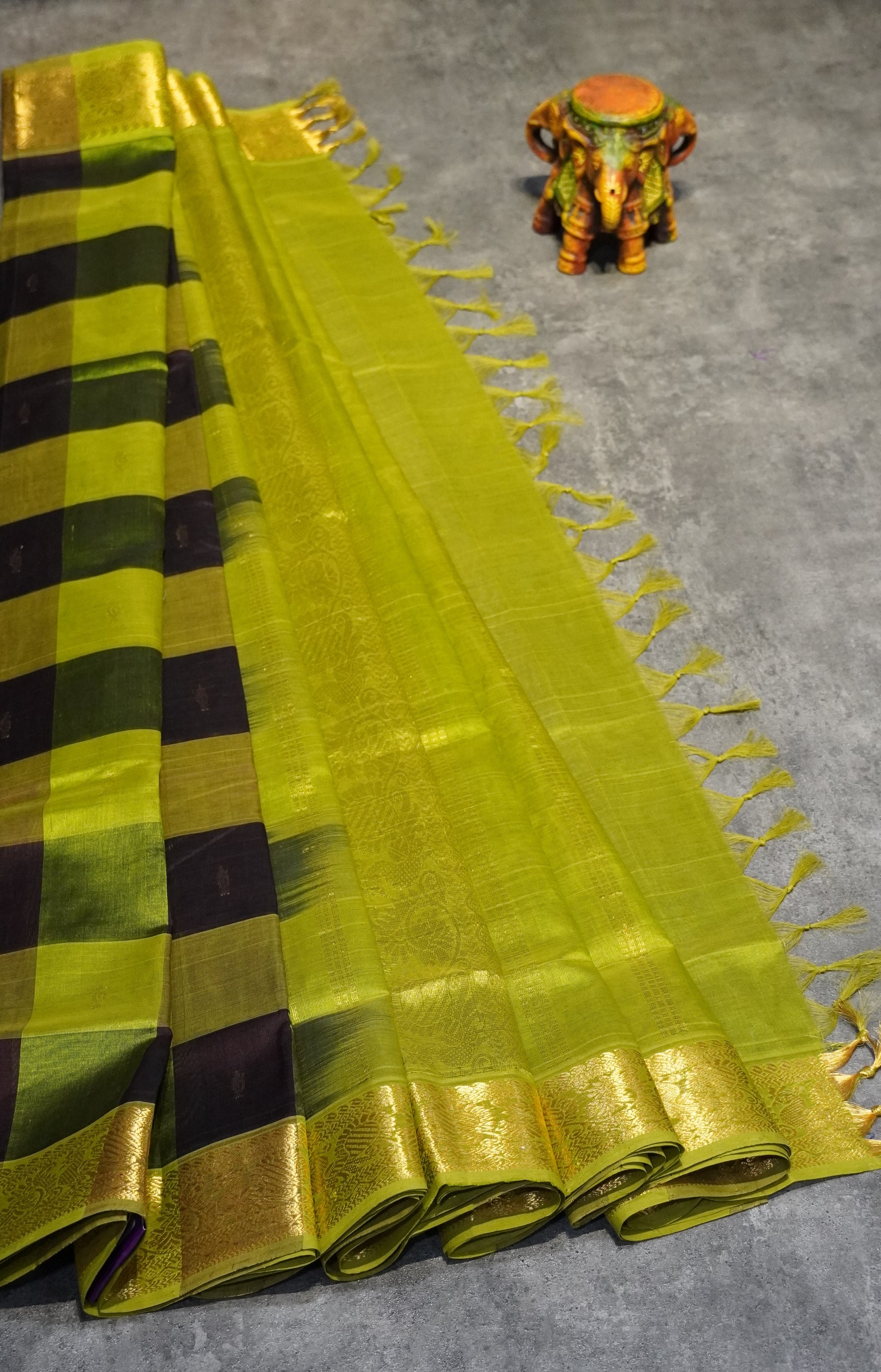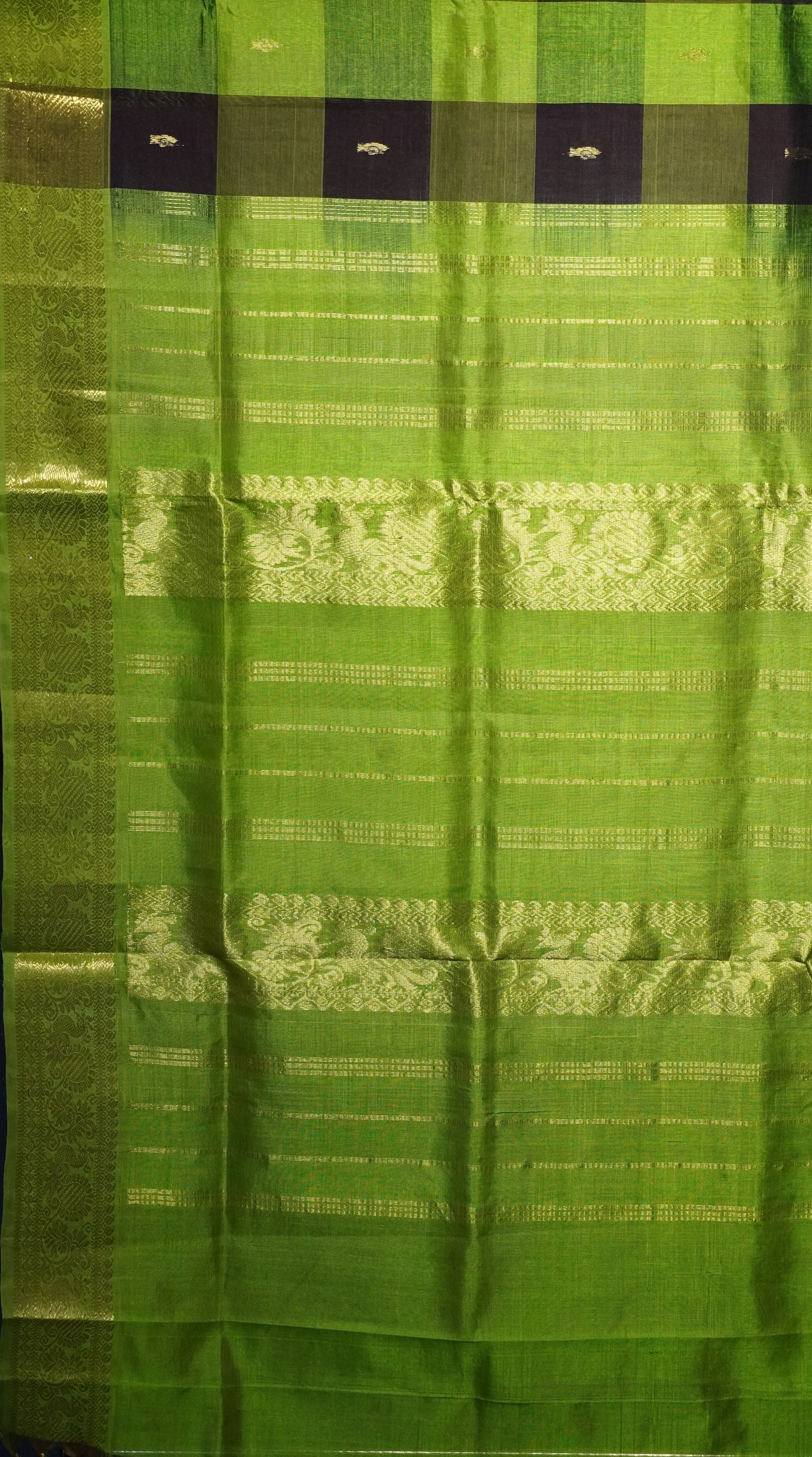 Silk Cotton Saree Checks Green