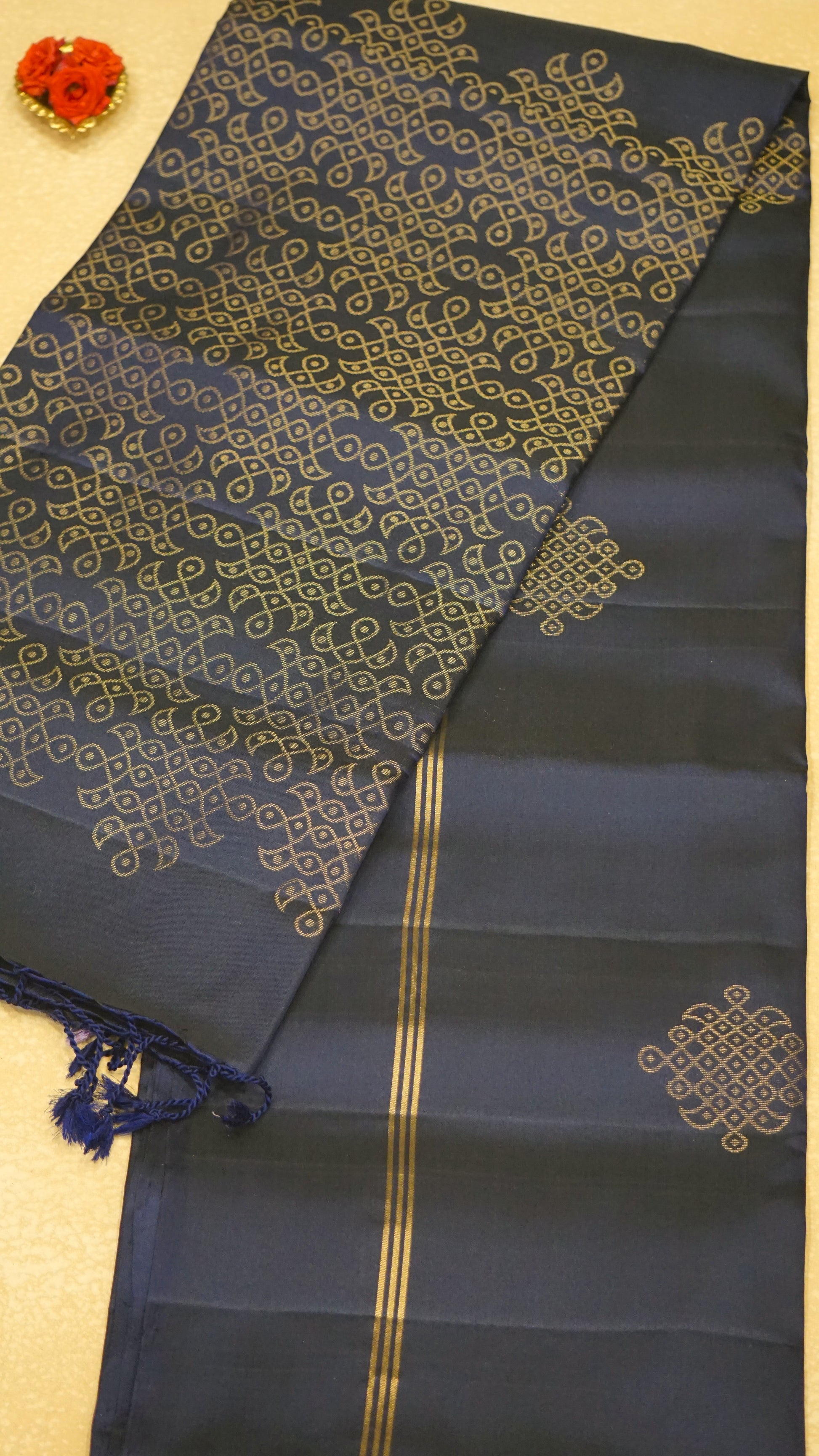 Pure Soft Silk Saree Kolam Design - Navy Blue