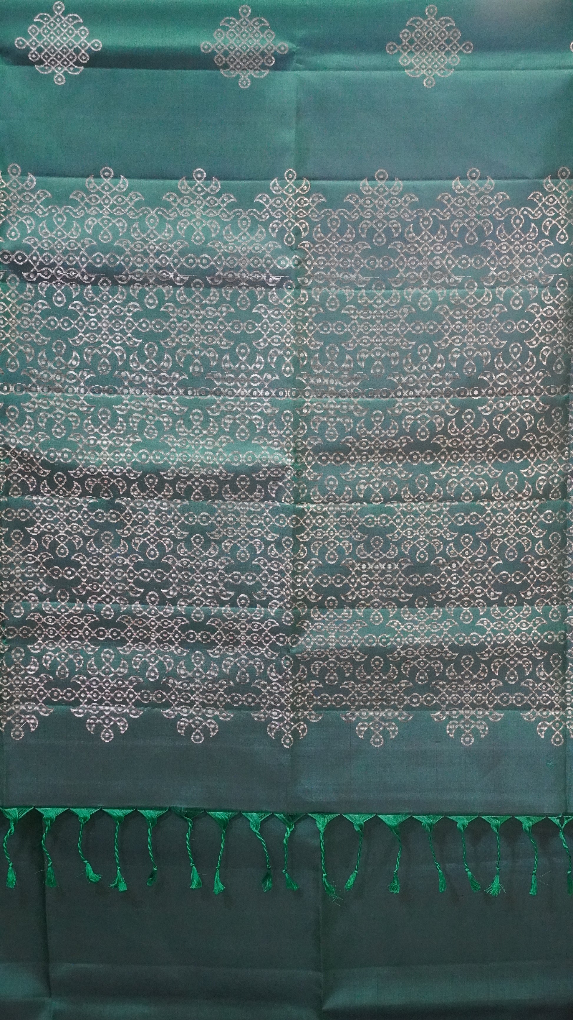 Pure Soft Silk Saree Kolam Print Bottle Green