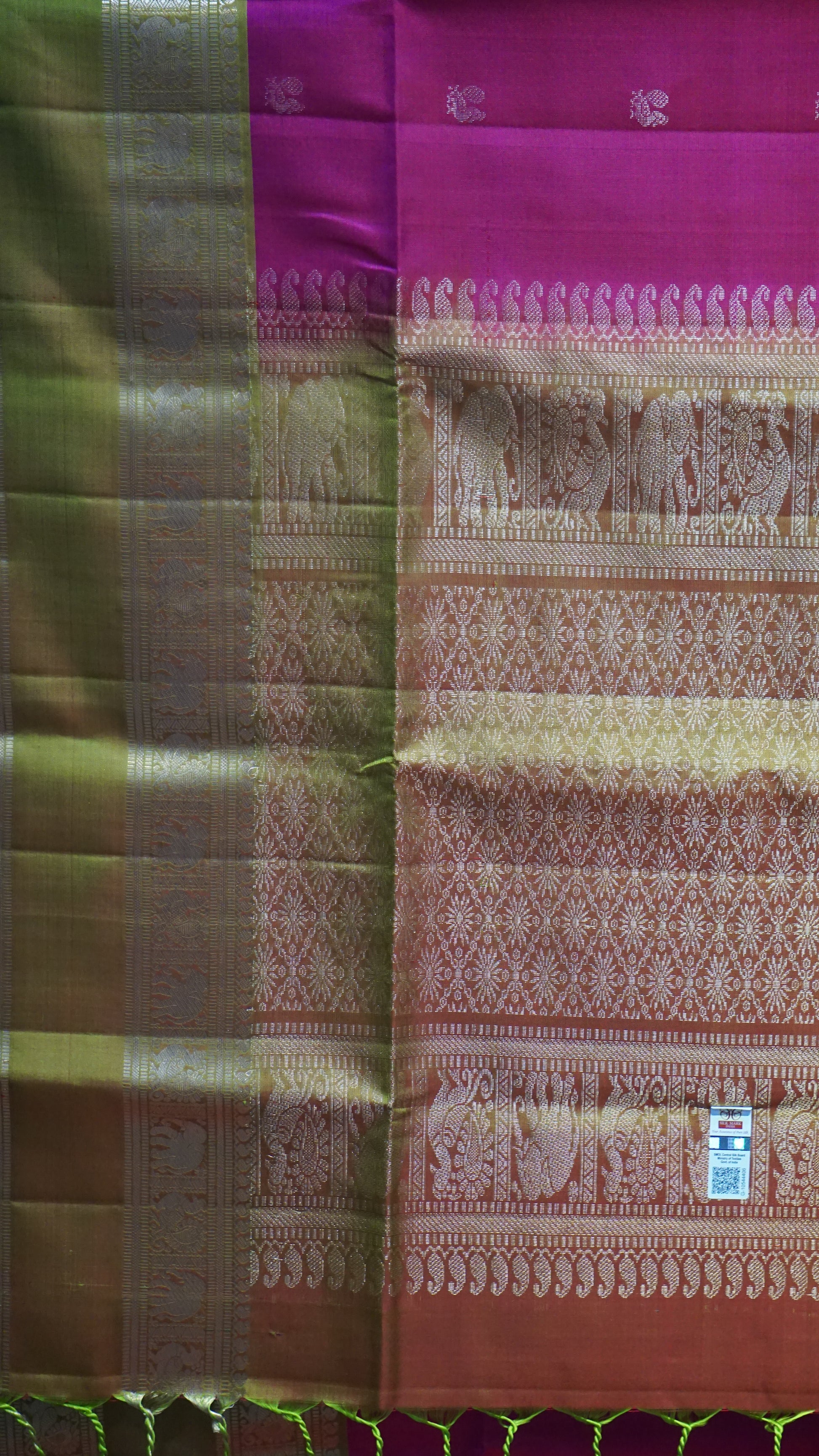 Pure Soft Silk Saree Long Border Pink To Green