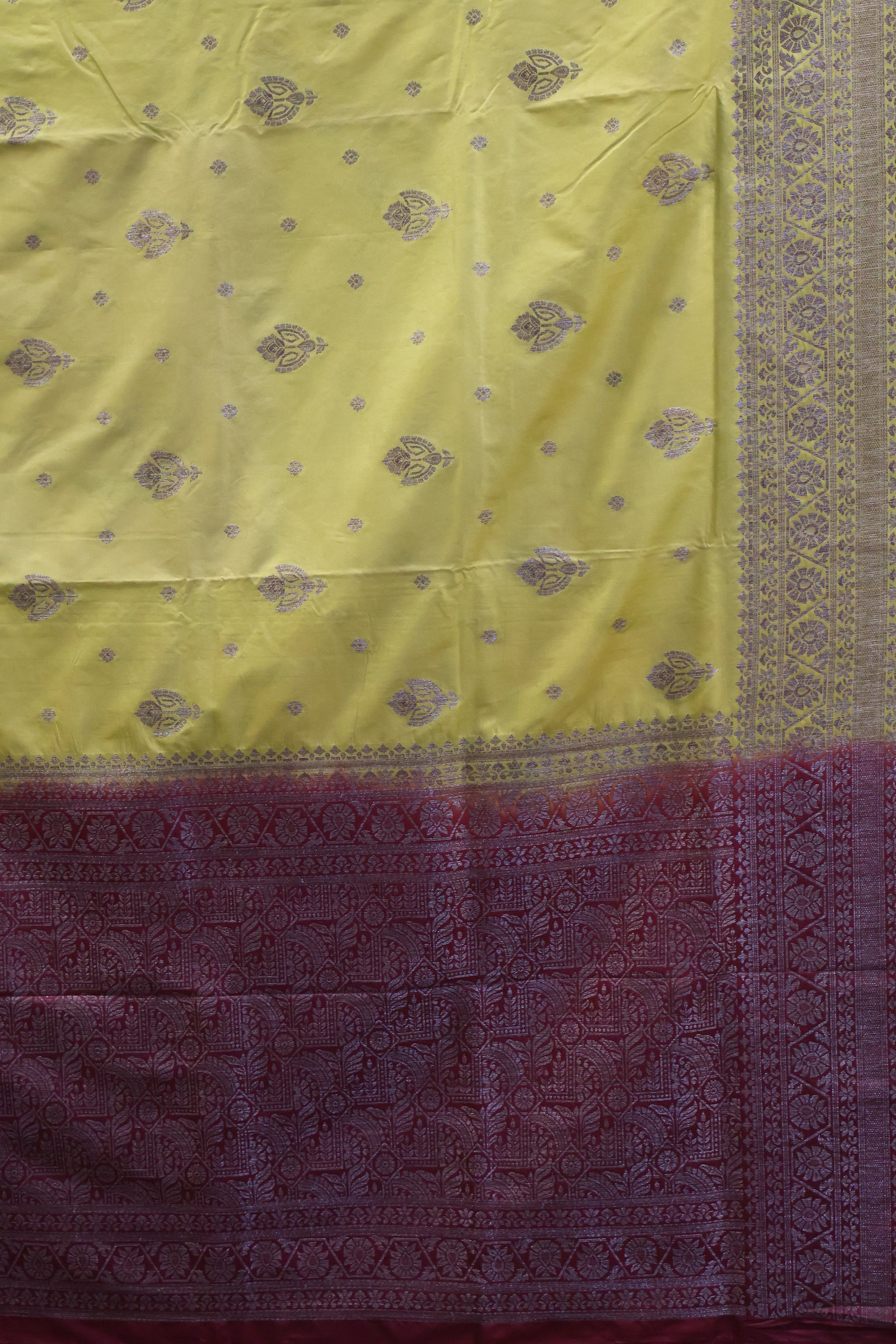 Soft Tussar Saree-Lime Yellow Creeper Flower Design