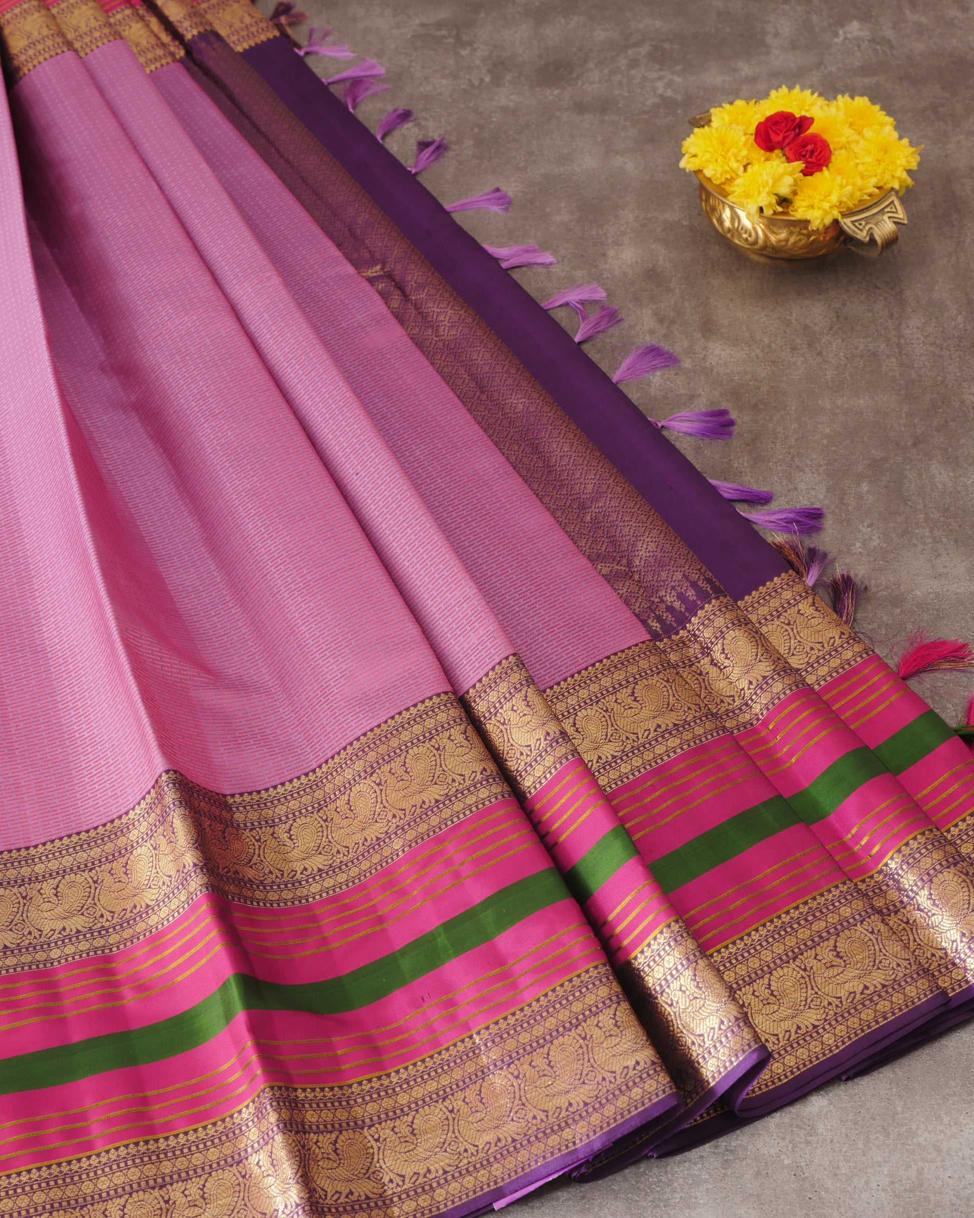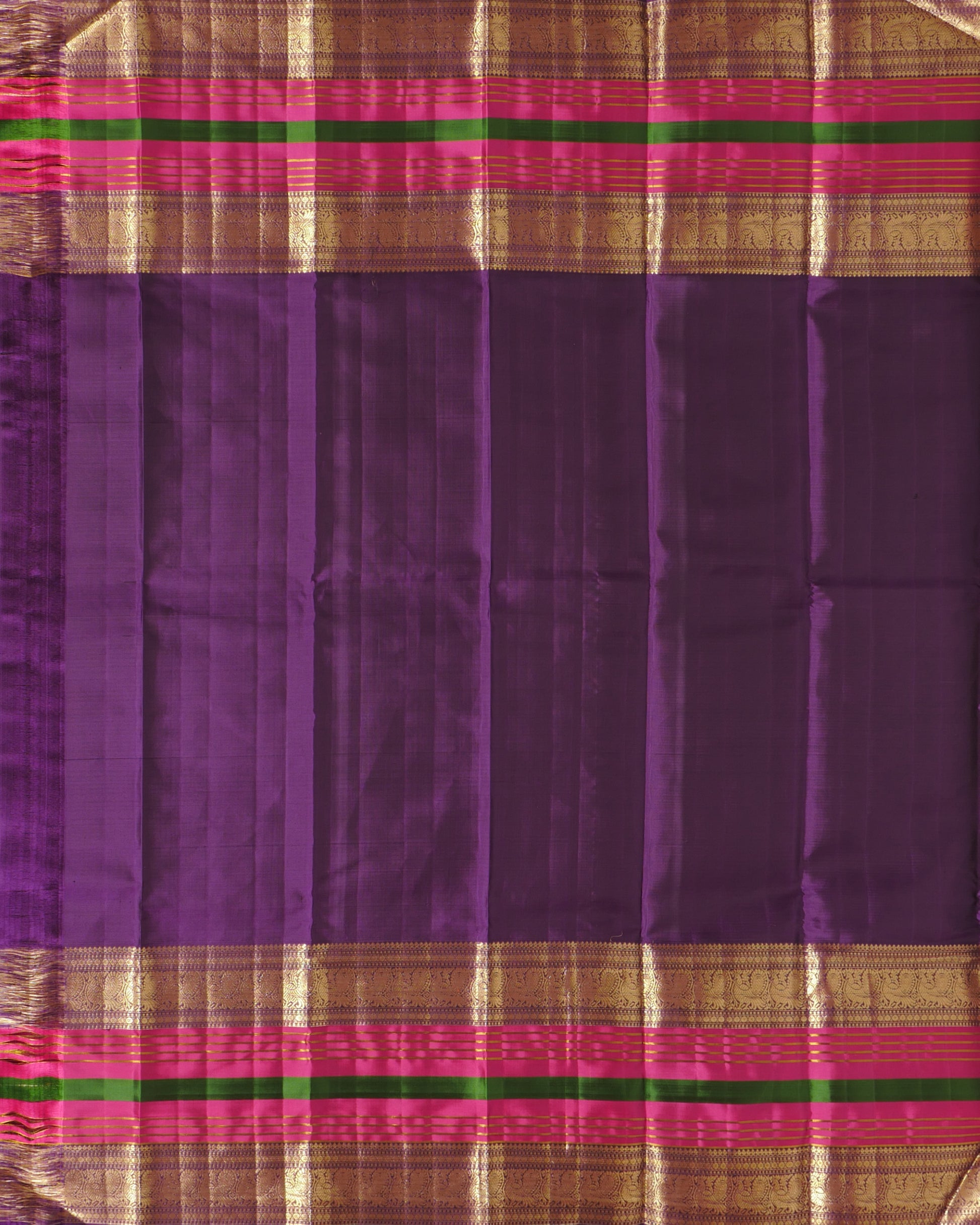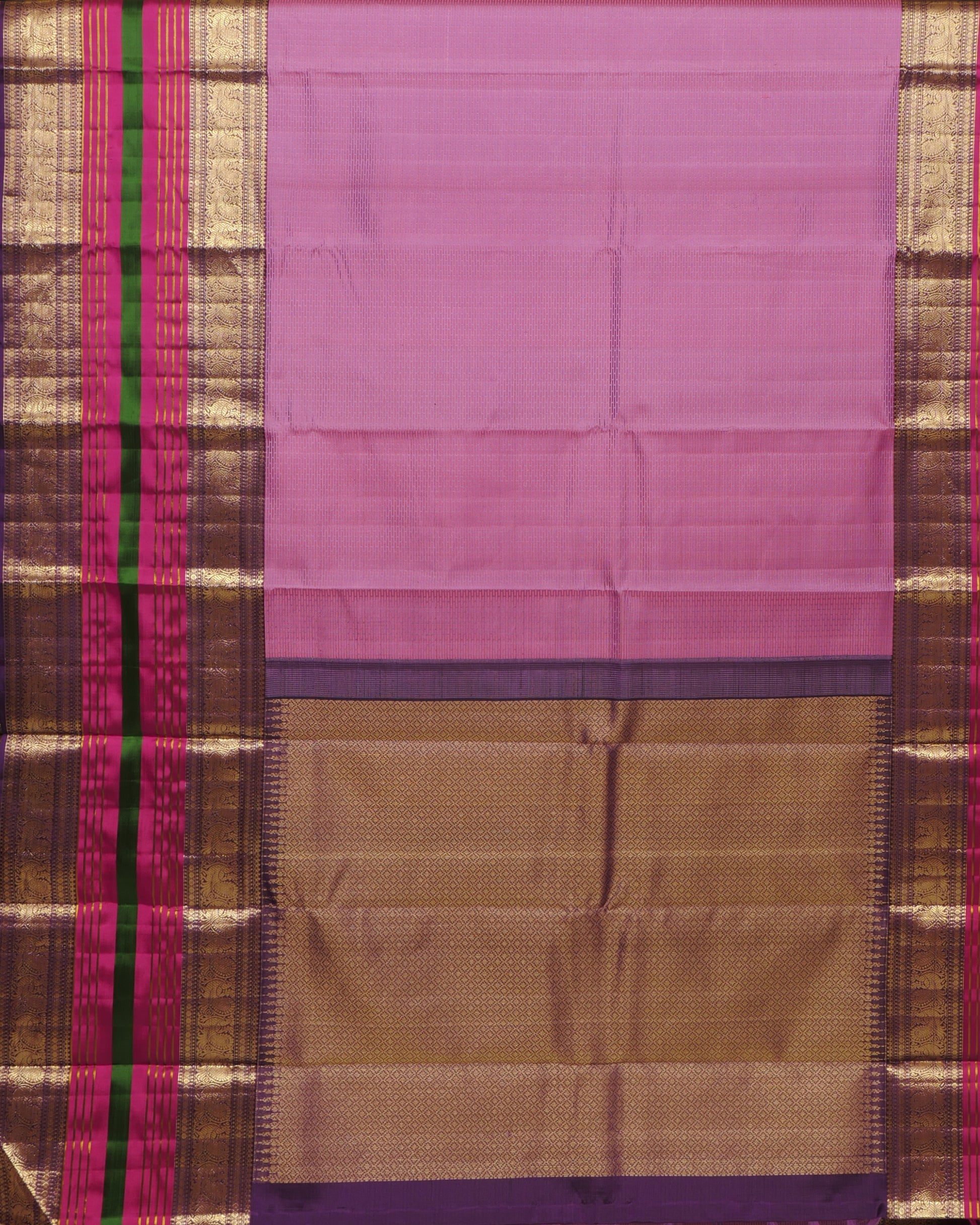 Pure Kanjivaram Saree Onion Purple Half Gold Silk Saree and Contrast Purple Rich Pallu With Long Annam Butta with Line Zari Boder