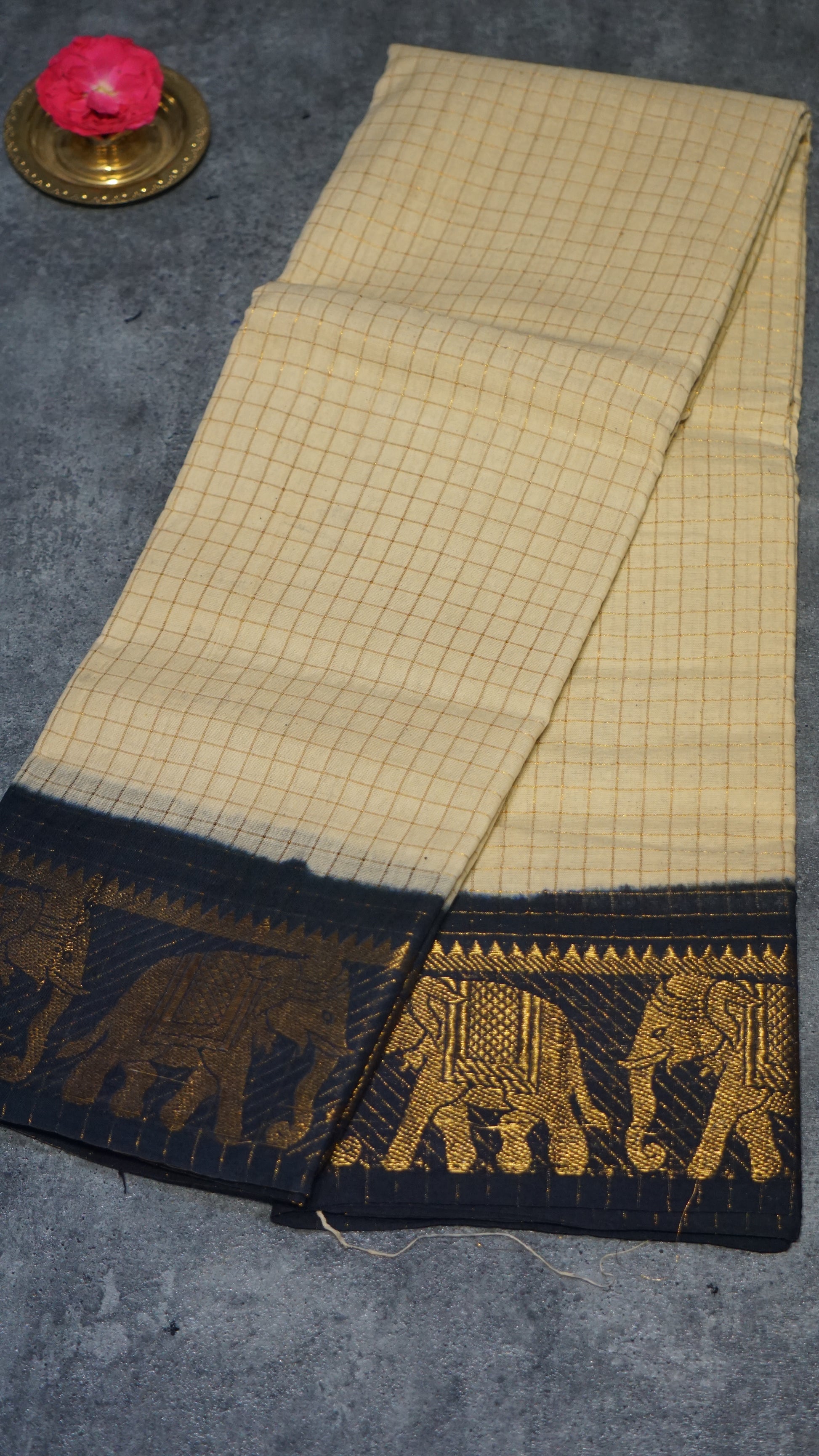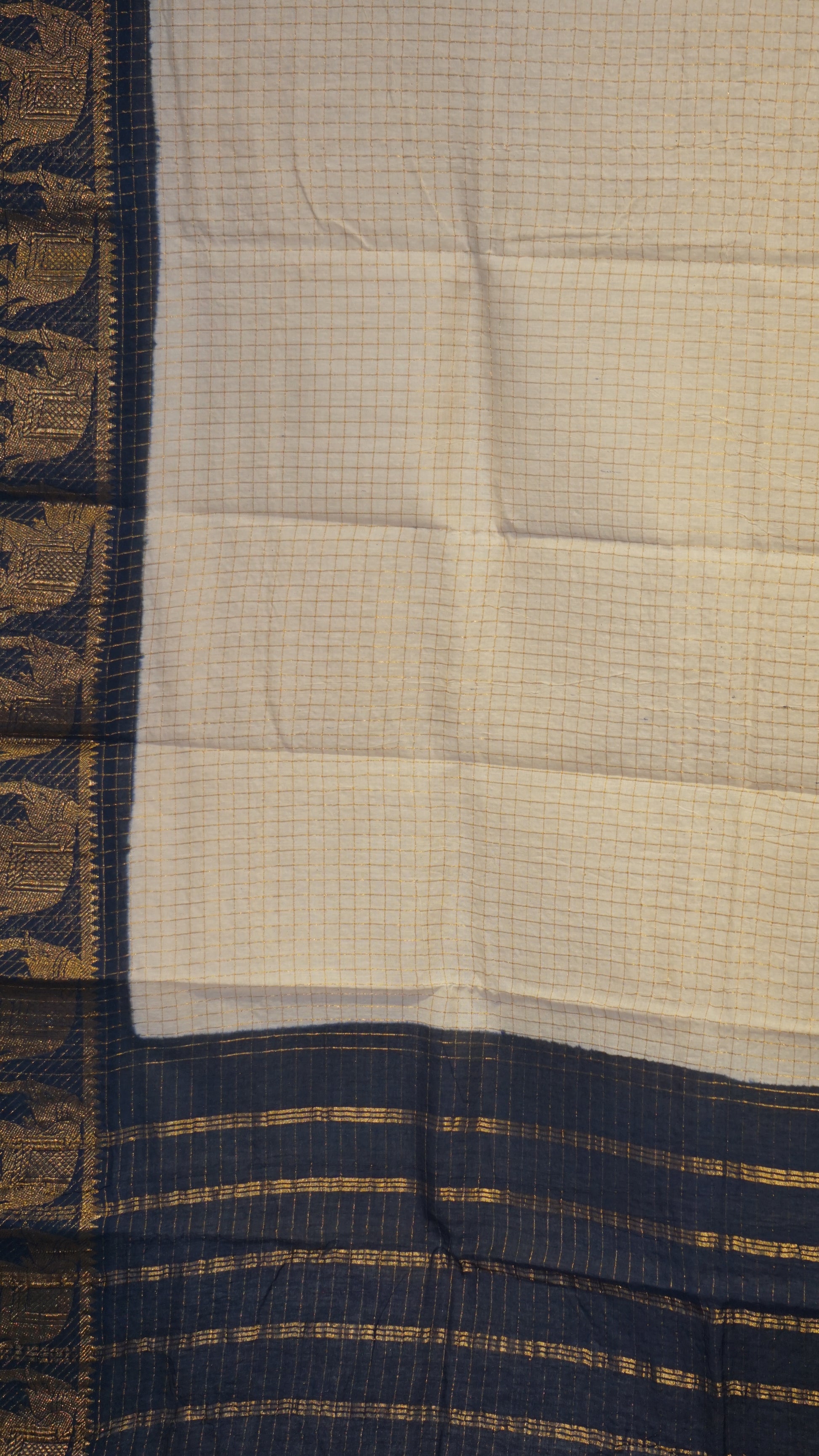 Sungudi Cotton Saree Checks Sandal - Navy Blue