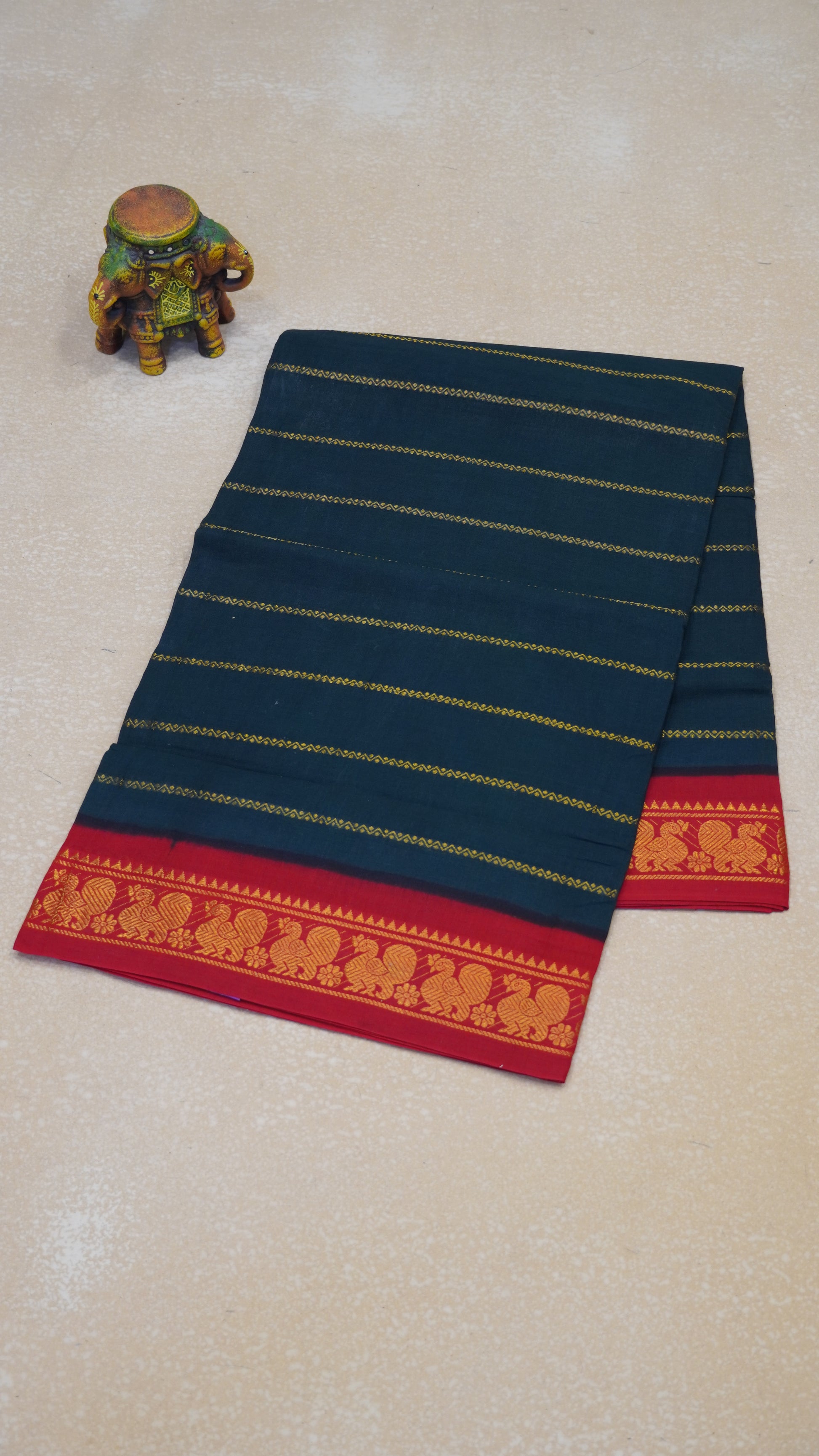 Sungudi Cotton Saree Checks Veldhari-Bottle Green