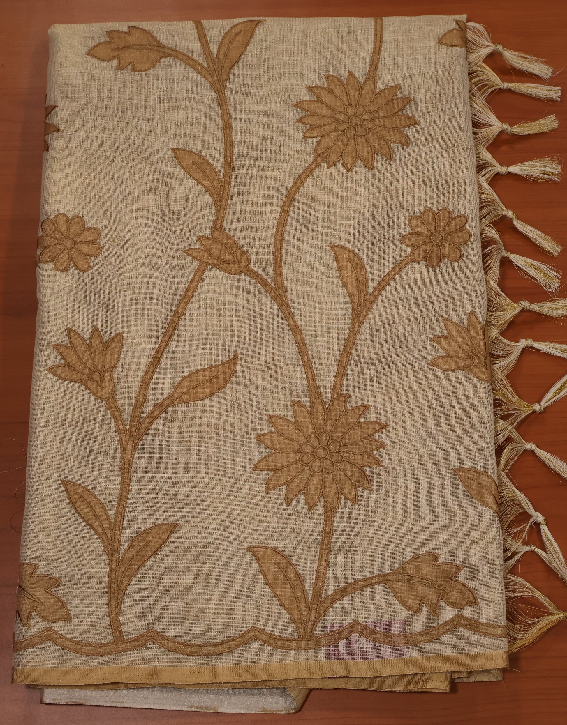 Tissue Linen Saree-Sandal Brown Sunflower Print