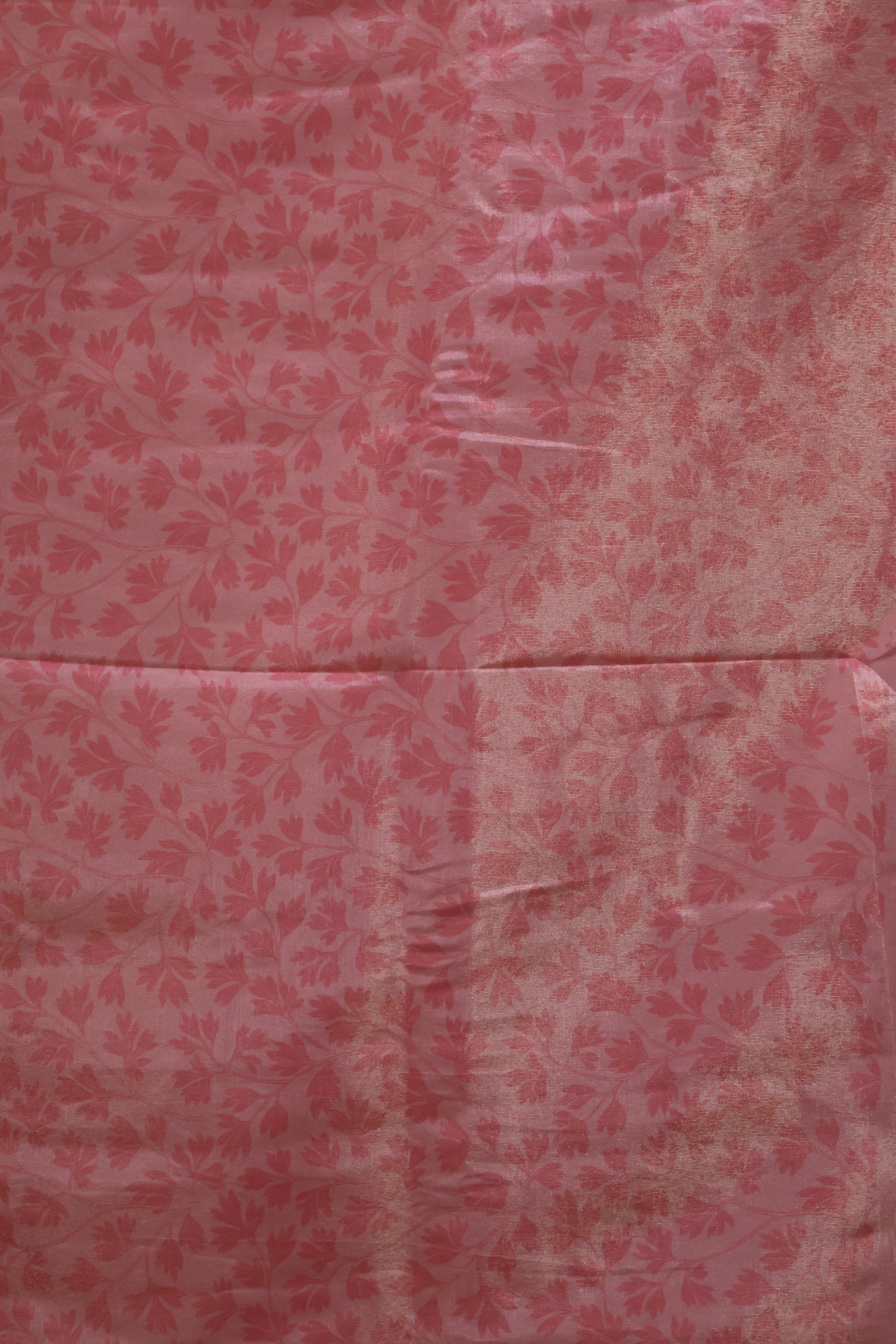 Tissue Linen Saree-Pink Flower With Sparrow Embryoid