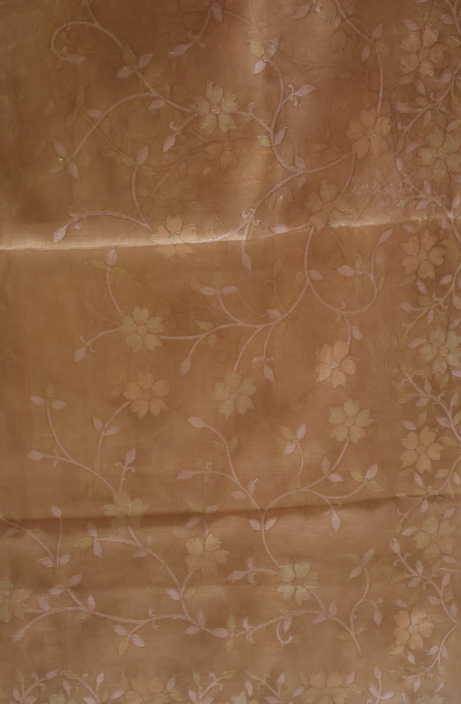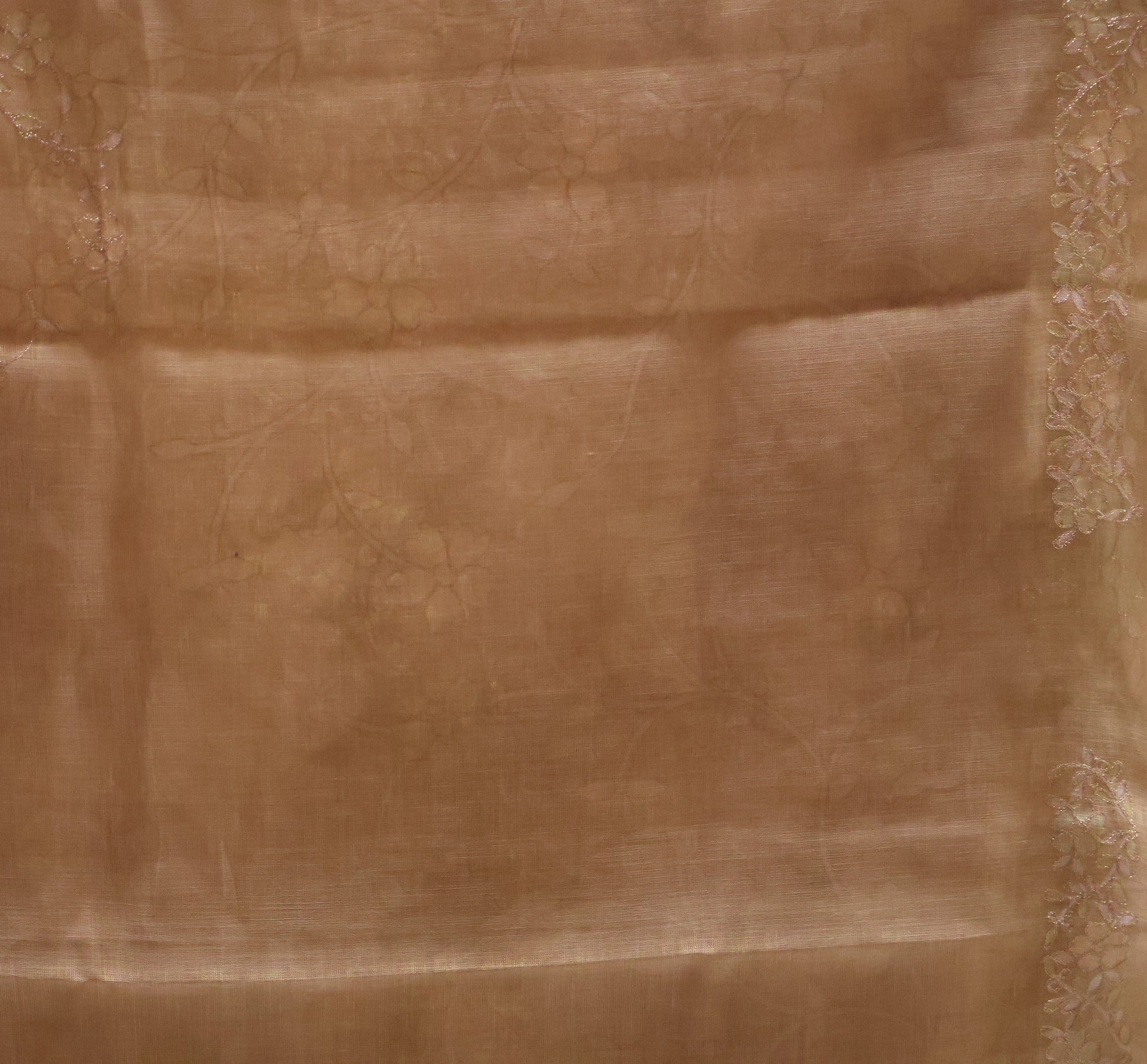 Tissue Linen Saree-Mustard Vineyard Floral Print
