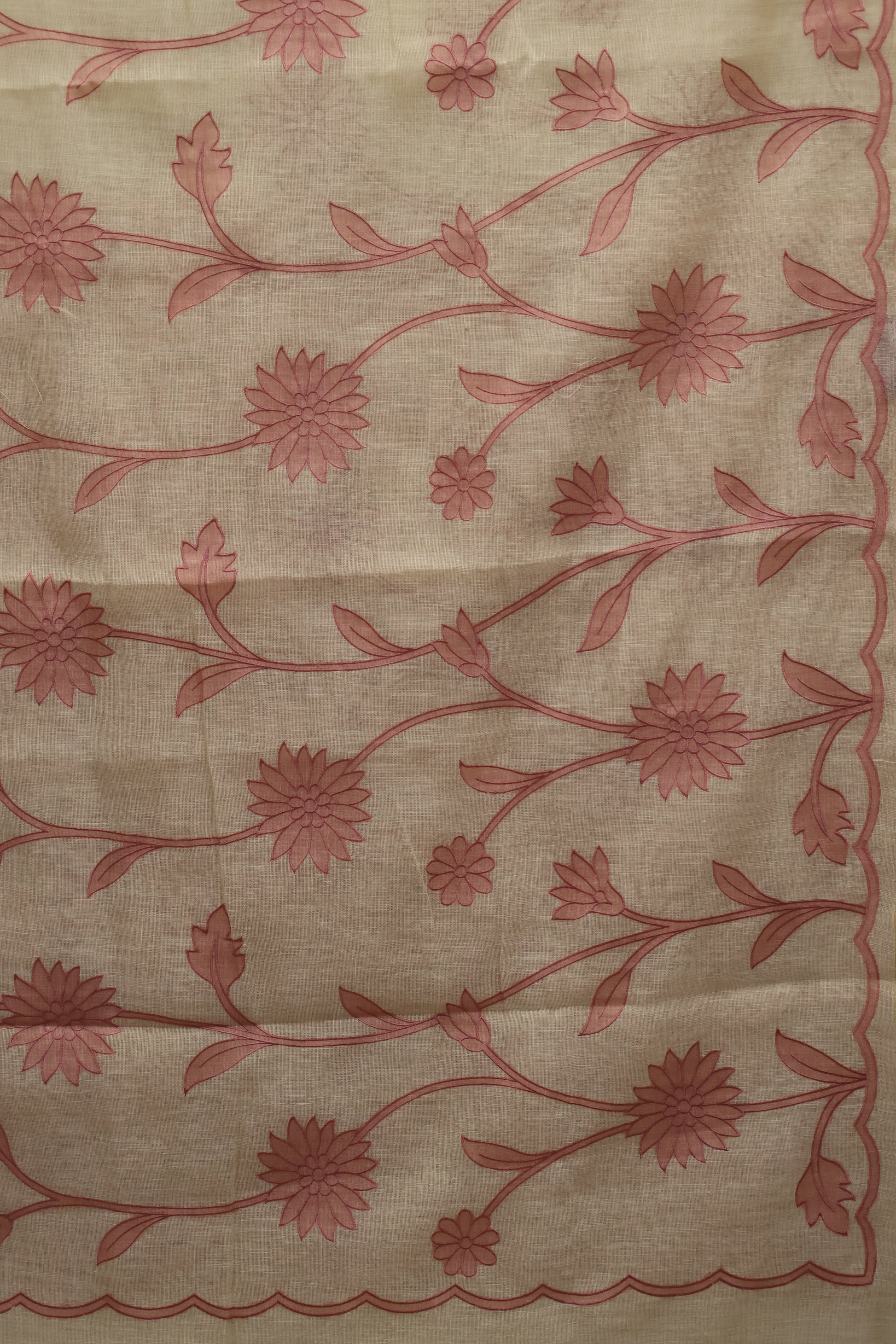 Tissue Linen Saree- Sandal-Pink Sunflower