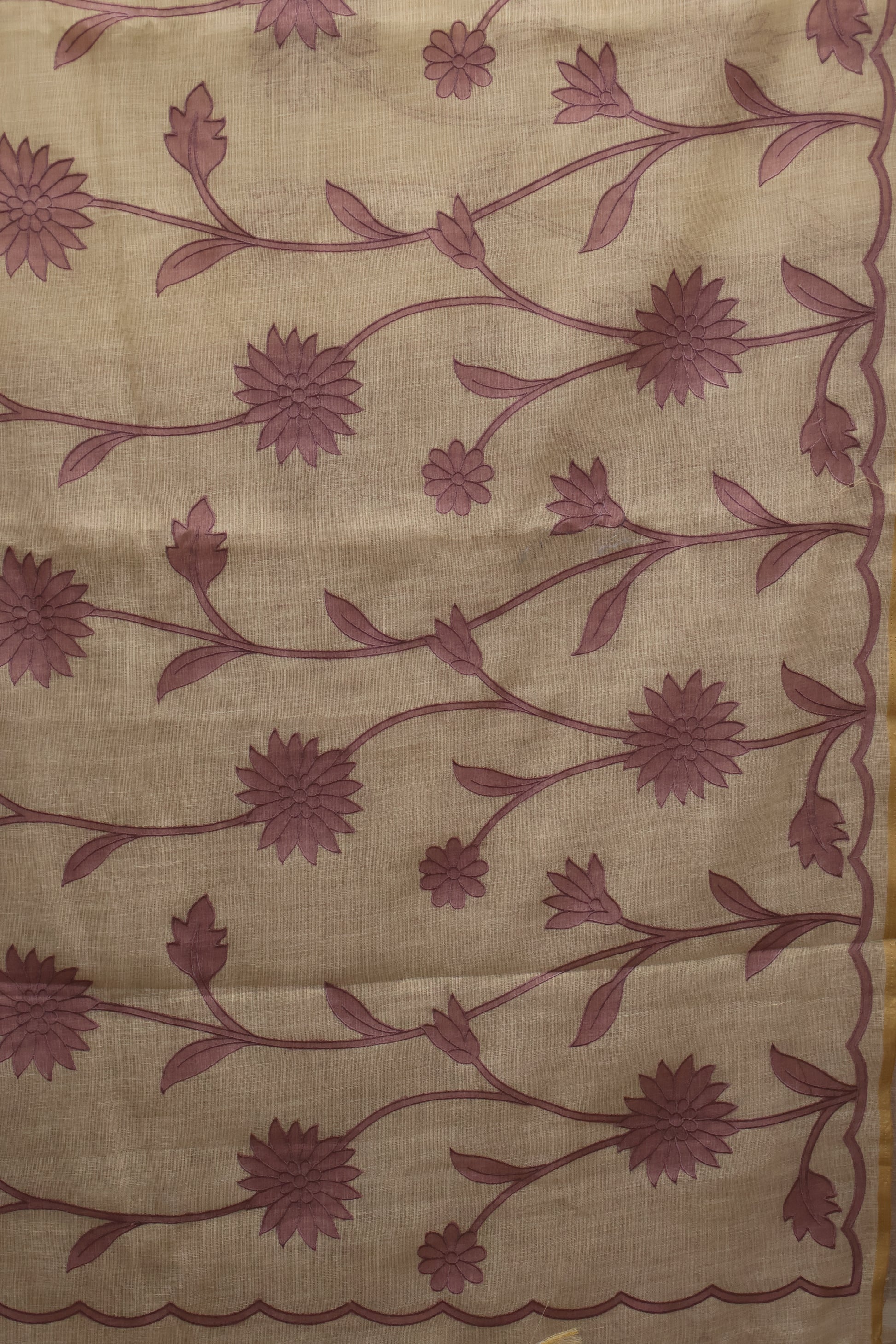 Tissue Linen Saree- Sandal-Purple Sunflower