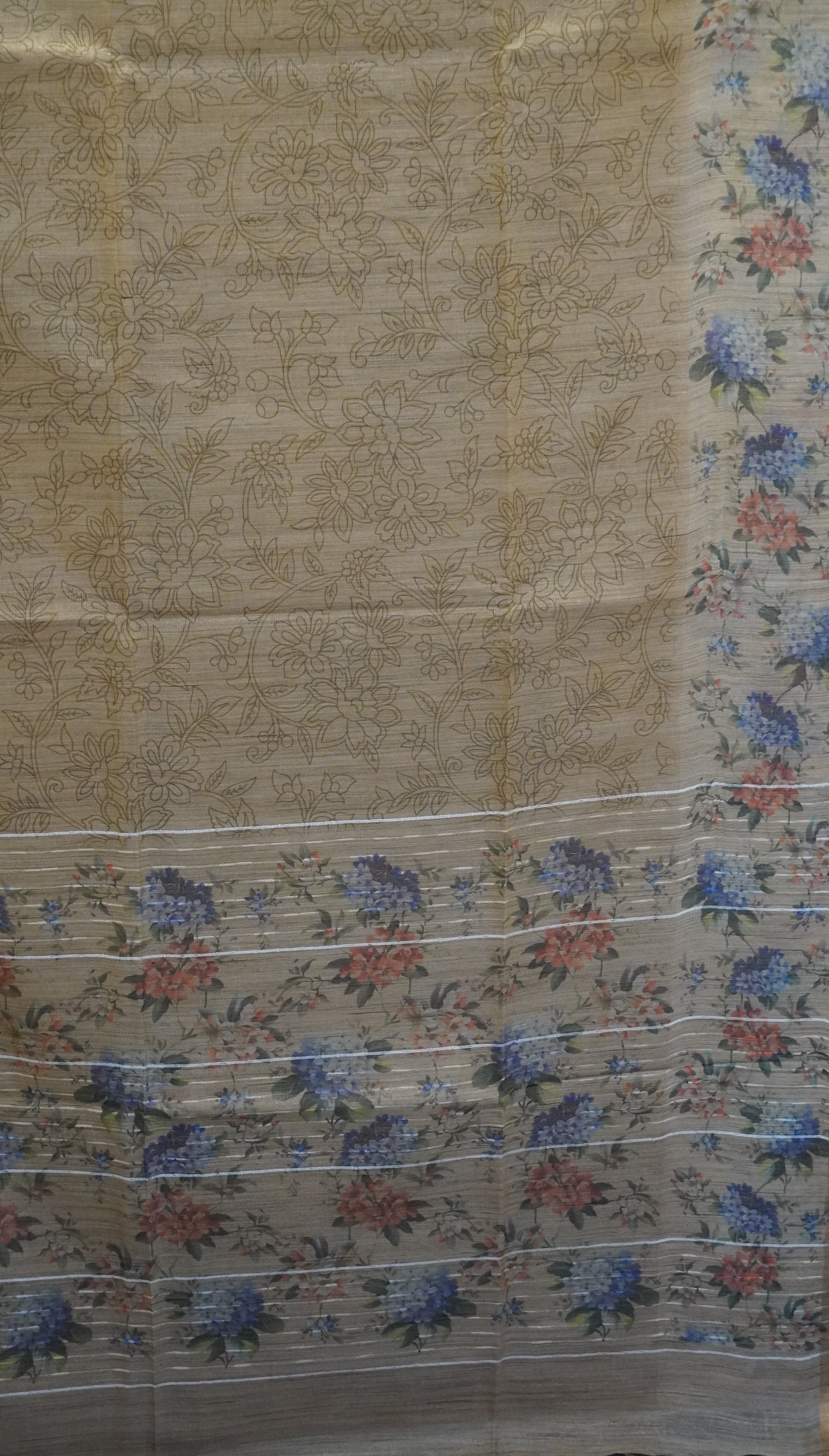 Tissue Tussar Saree-Mustard Hydrang Border
