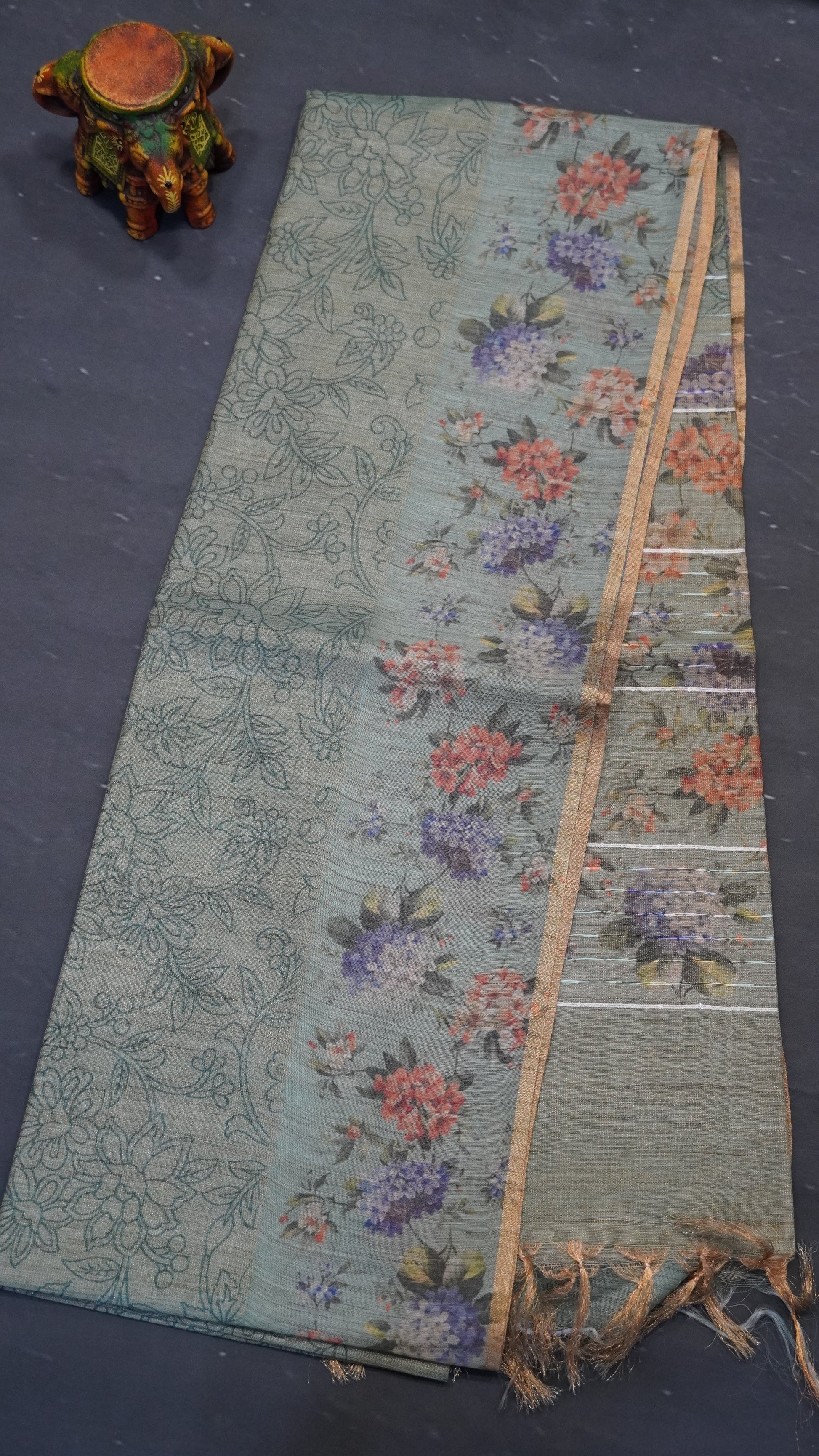 Tissue Tussar Saree-Sea Blue Hydrang Border