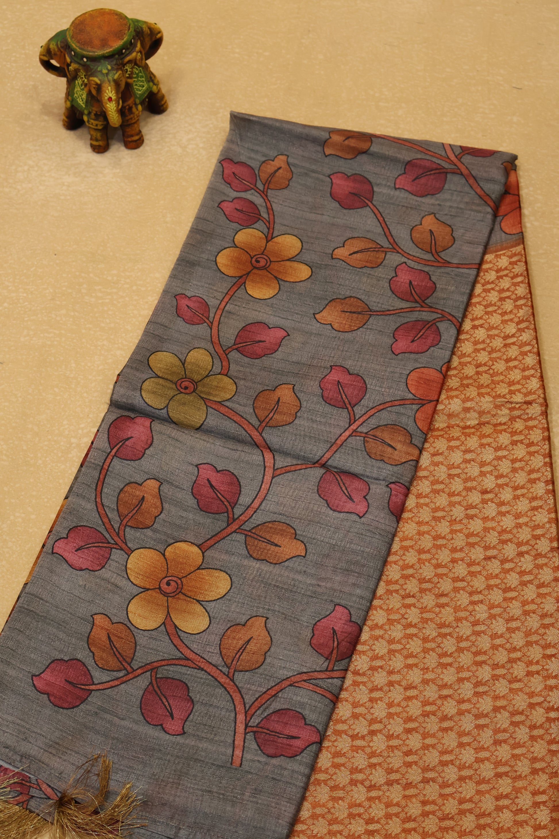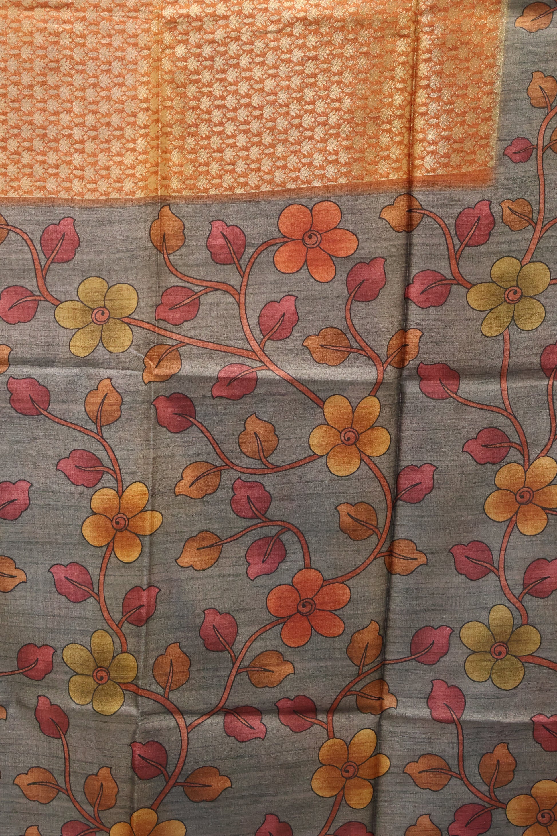 Tussar Saree Zari Lotus Pattern - Orange