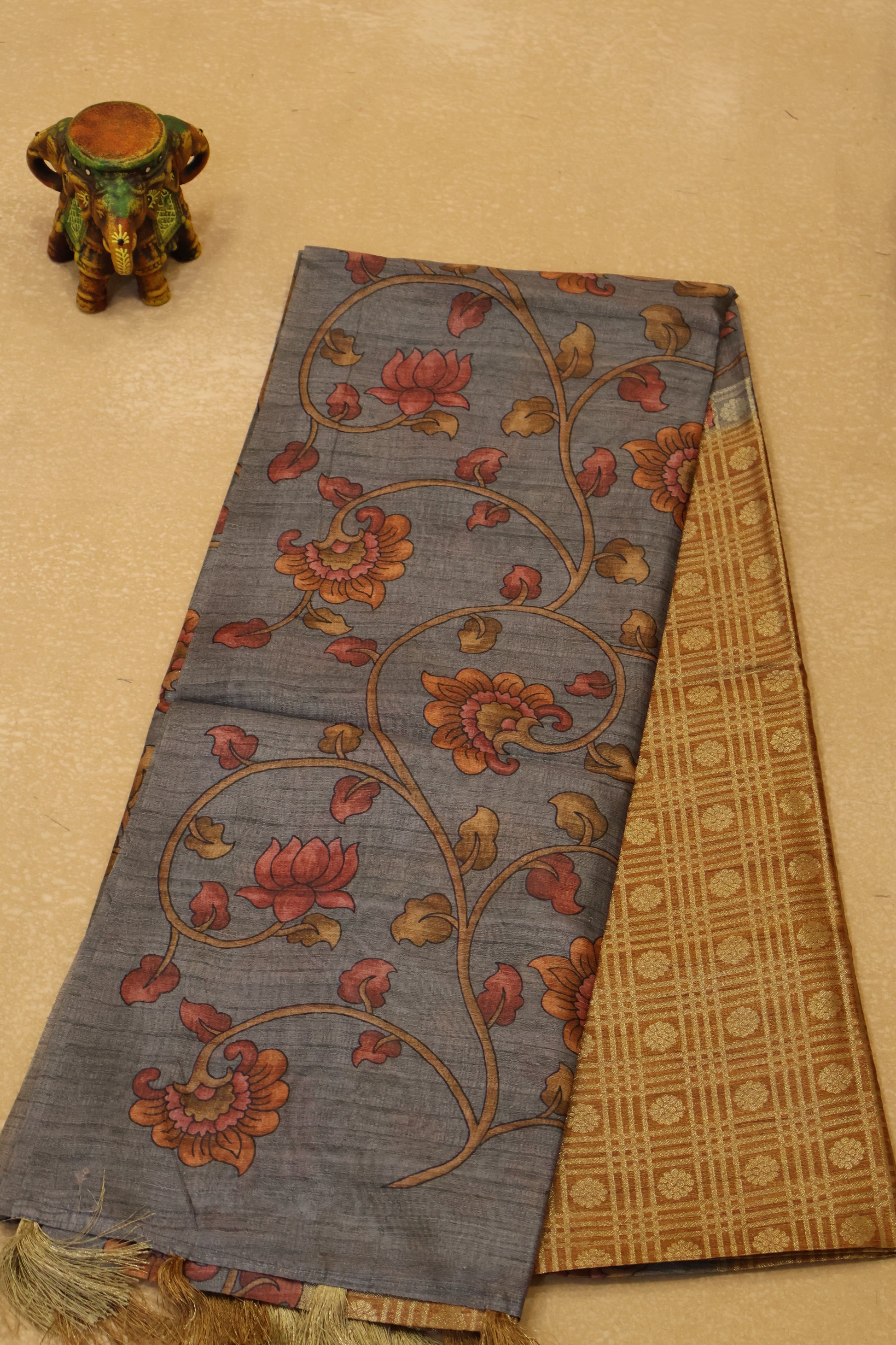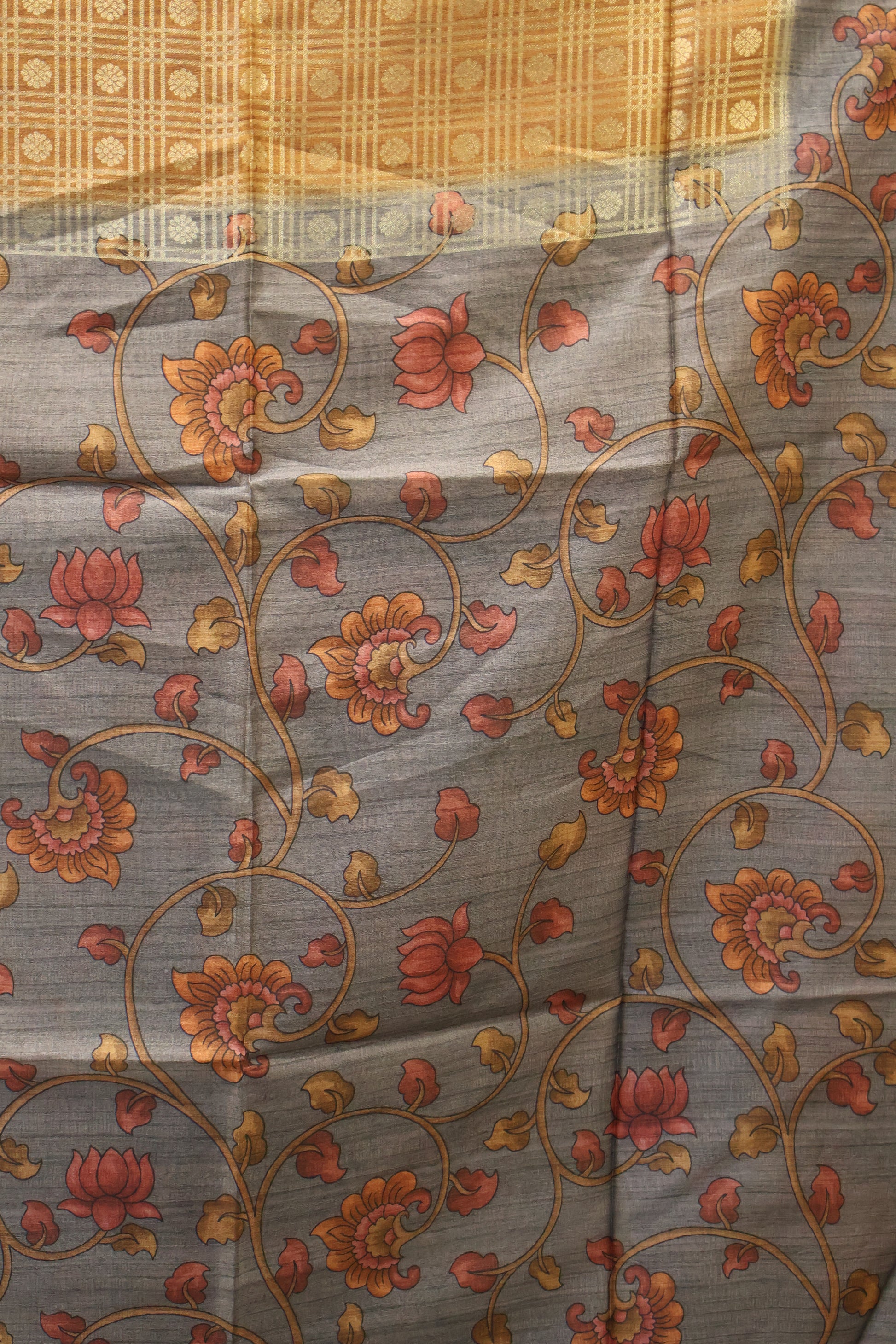 Tussar Saree Zari work- Mustard