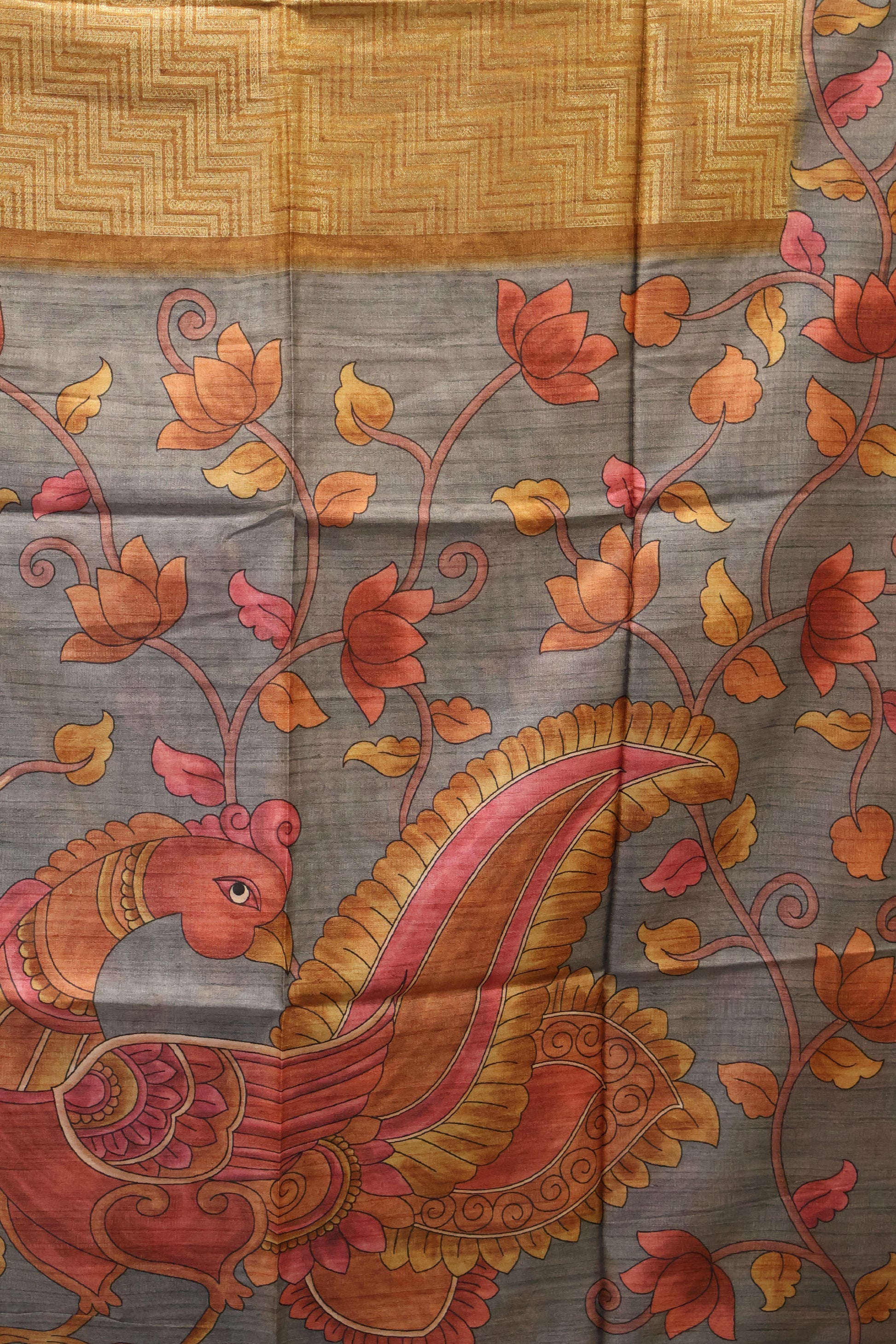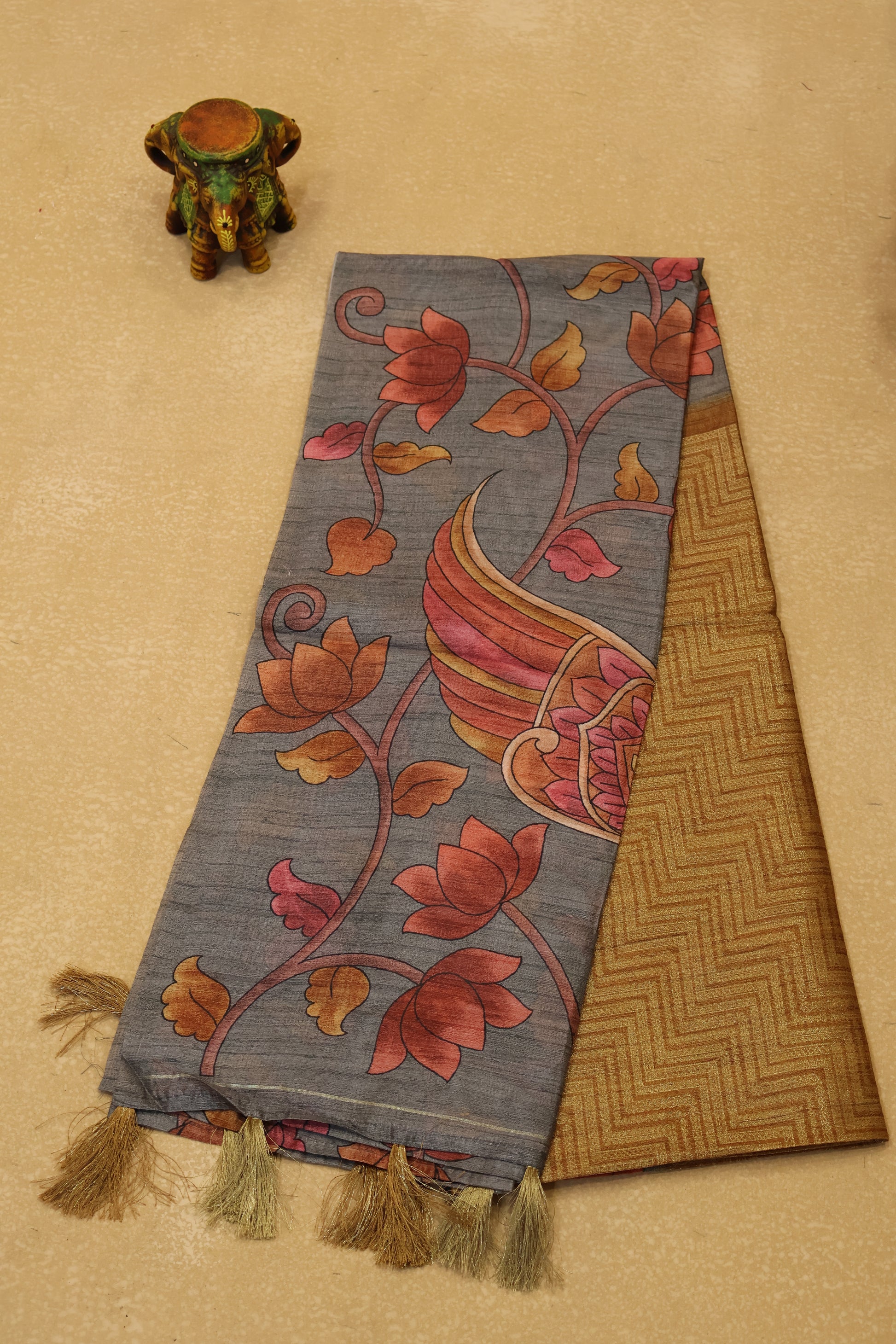 Tussar Saree Zari Zigzag Pattern - Mustard