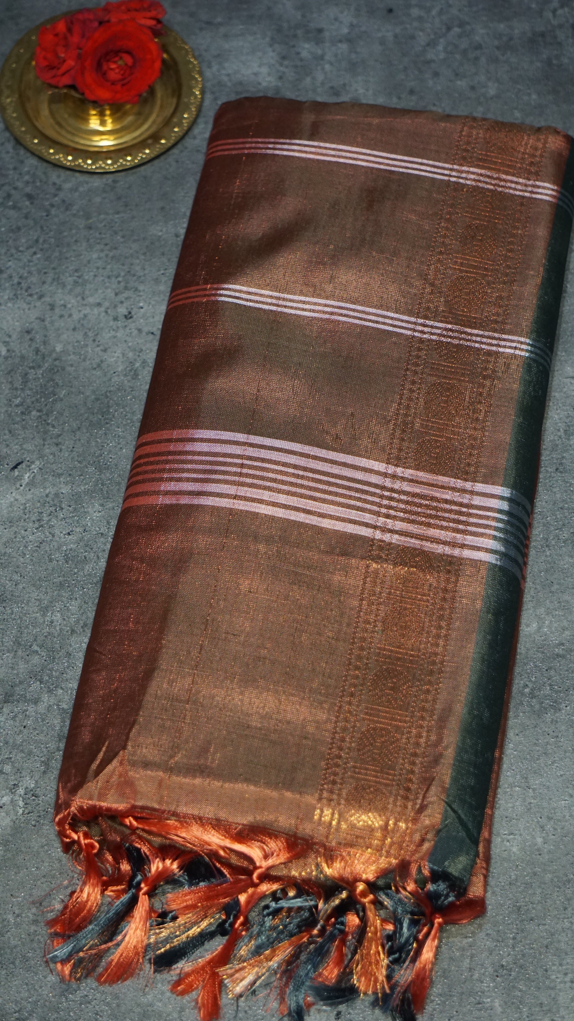 Vazhai Naaru Pattu Saree Vanasingaram Elephant Grey - Orange