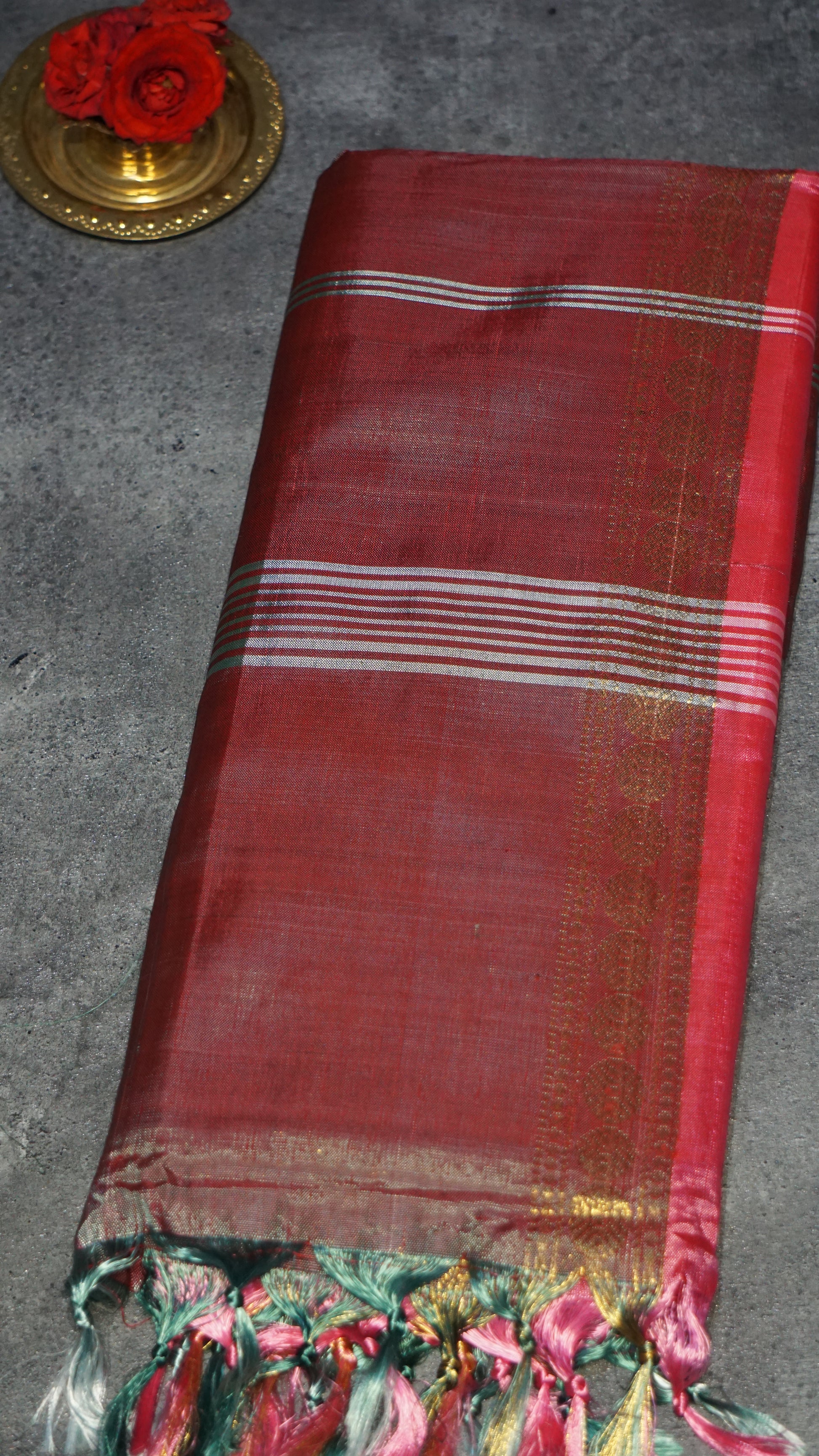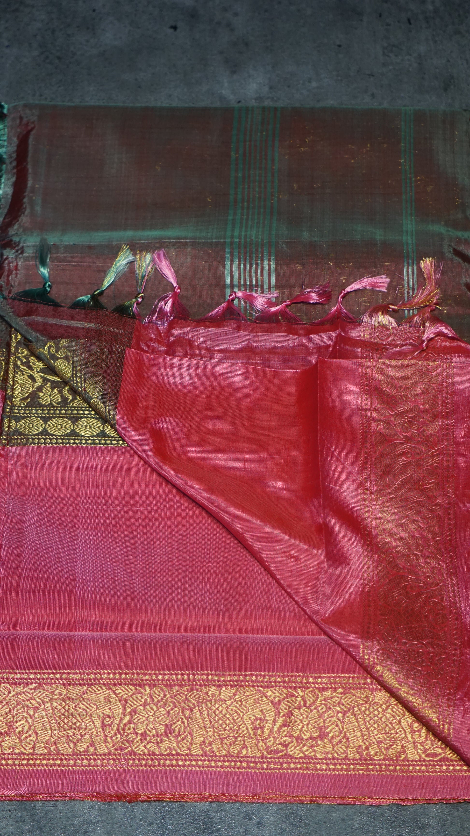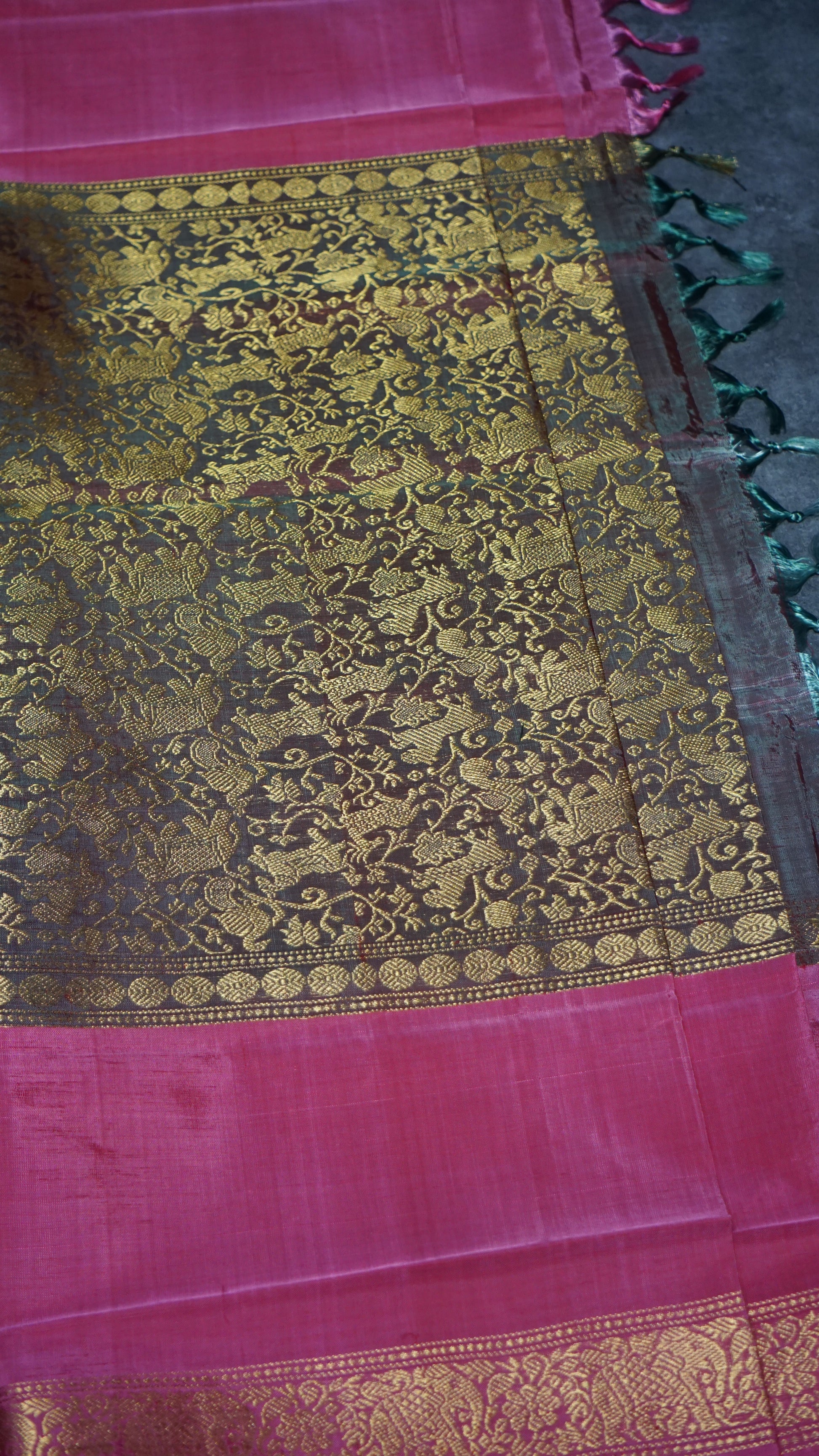 Vazhai Naaru Pattu Saree Vanasingaram Light Brown - Pink