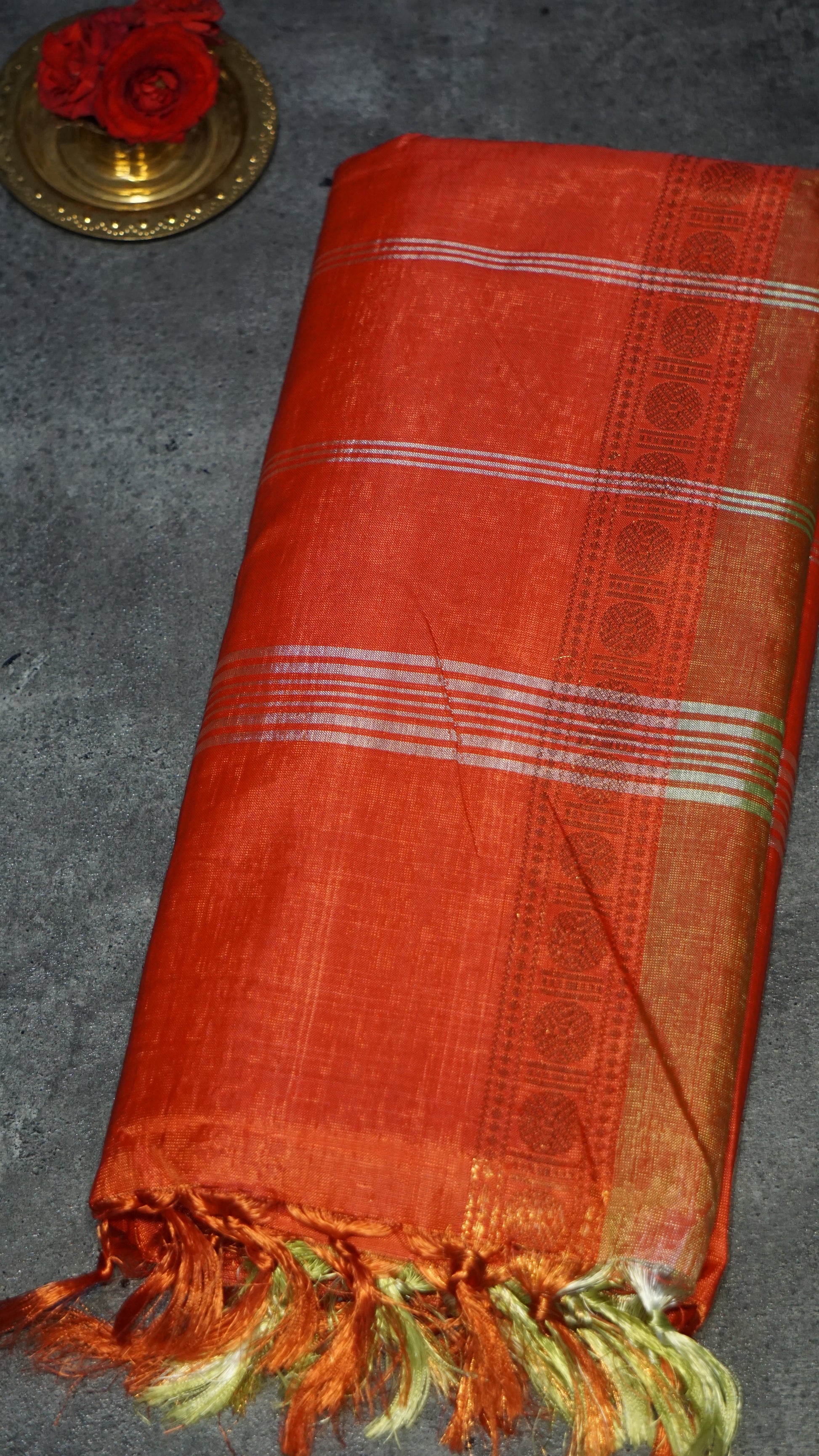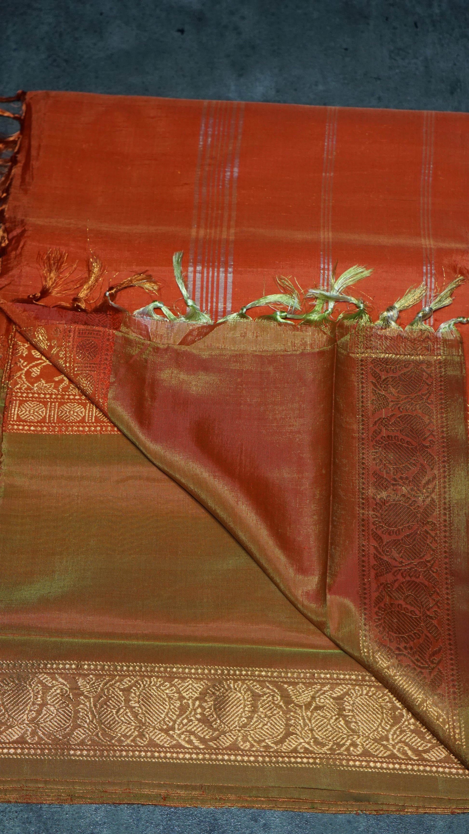 Vazhai Naaru Pattu Saree Vanasingaram Orange Dual