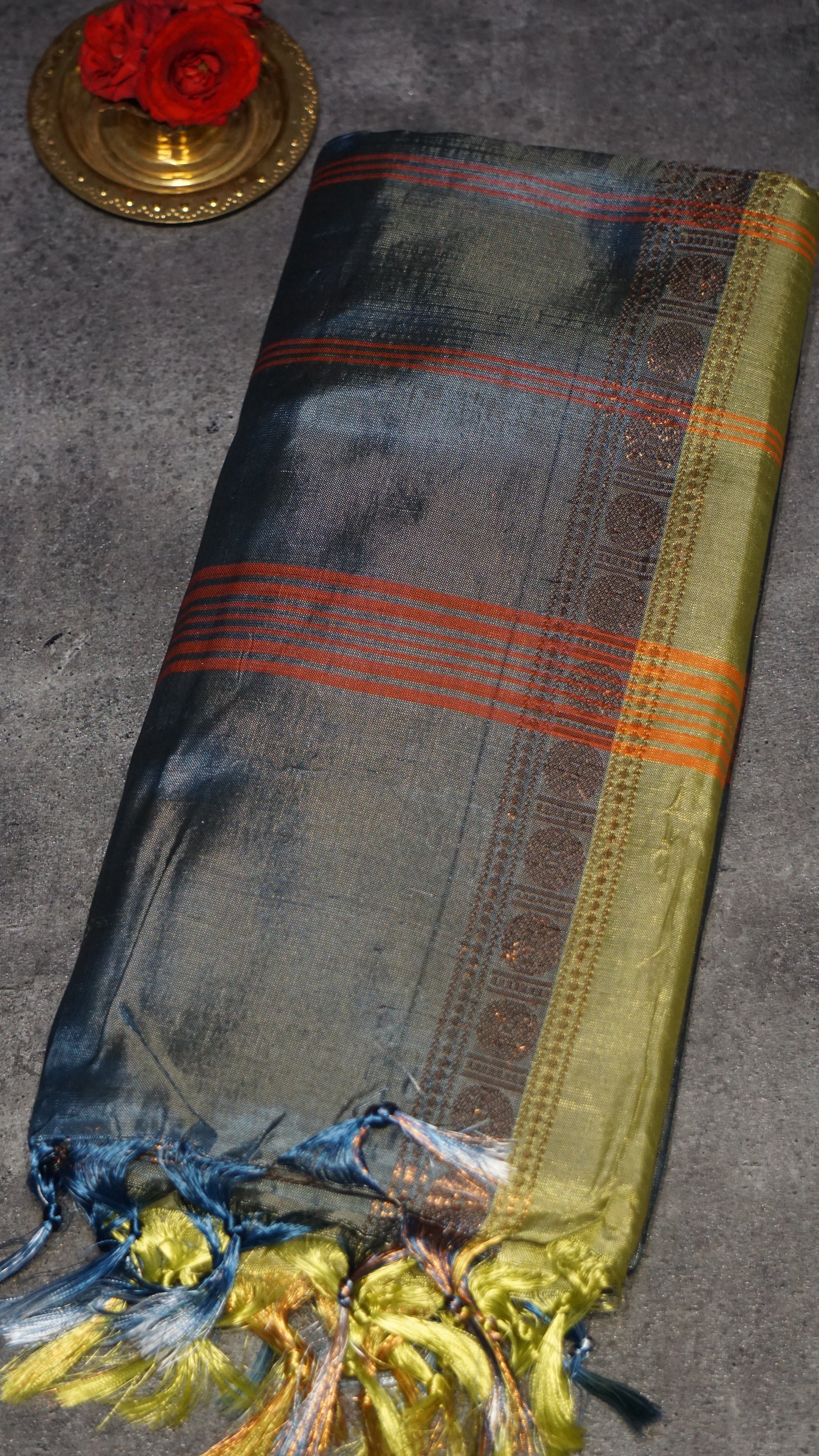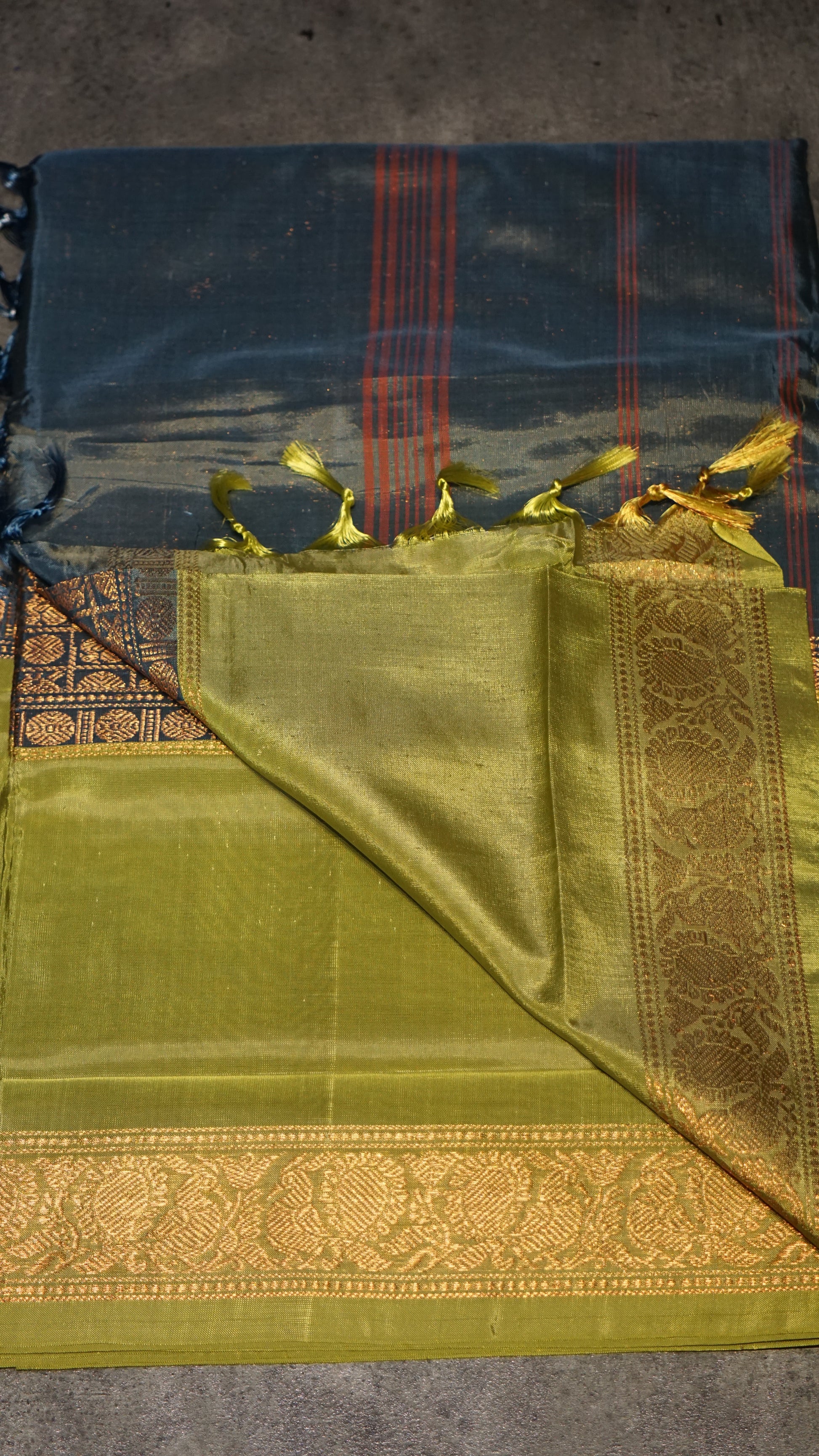 Vazhai Naaru Pattu Saree Vanasingaram Metallic Blue - Green