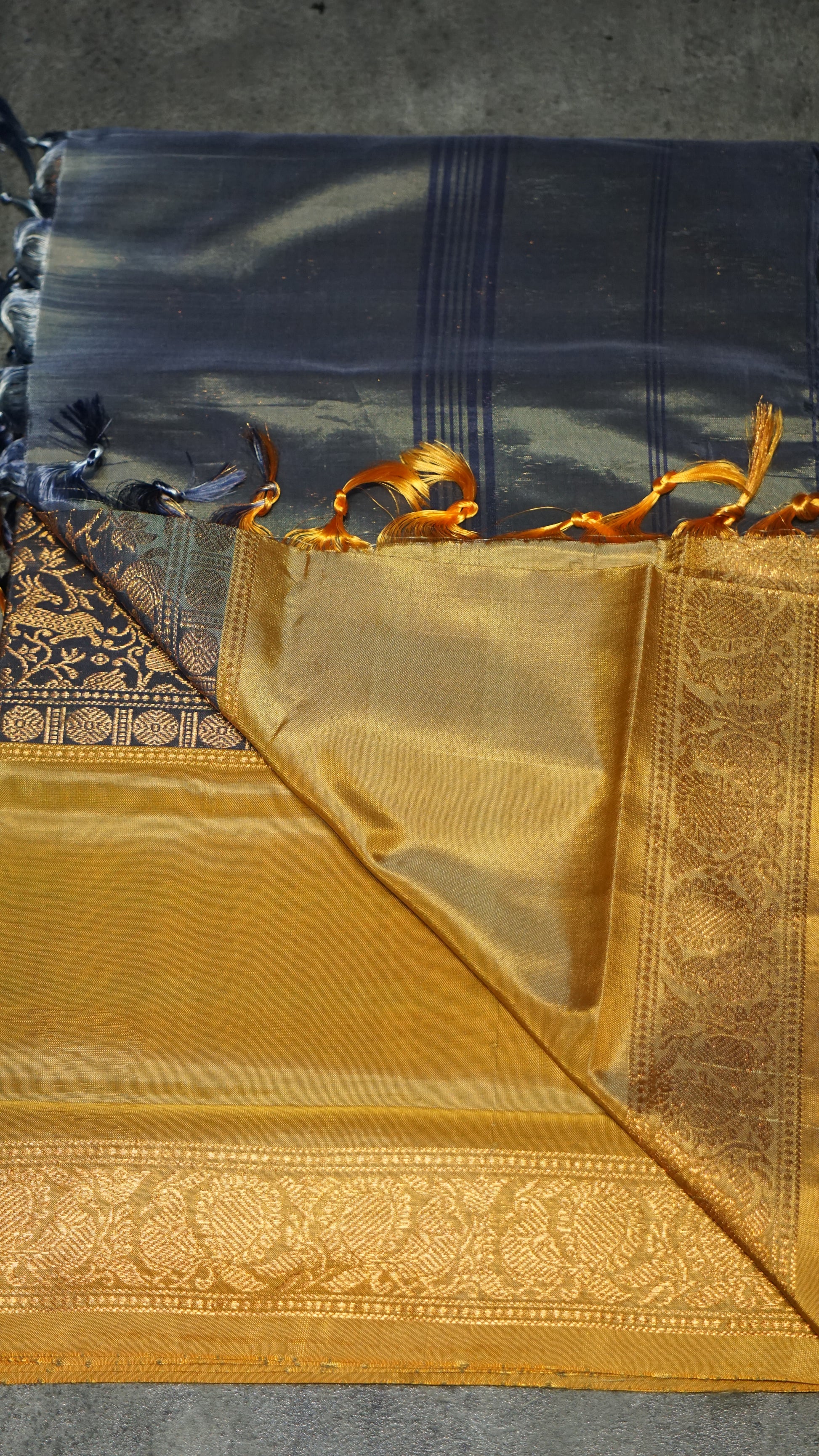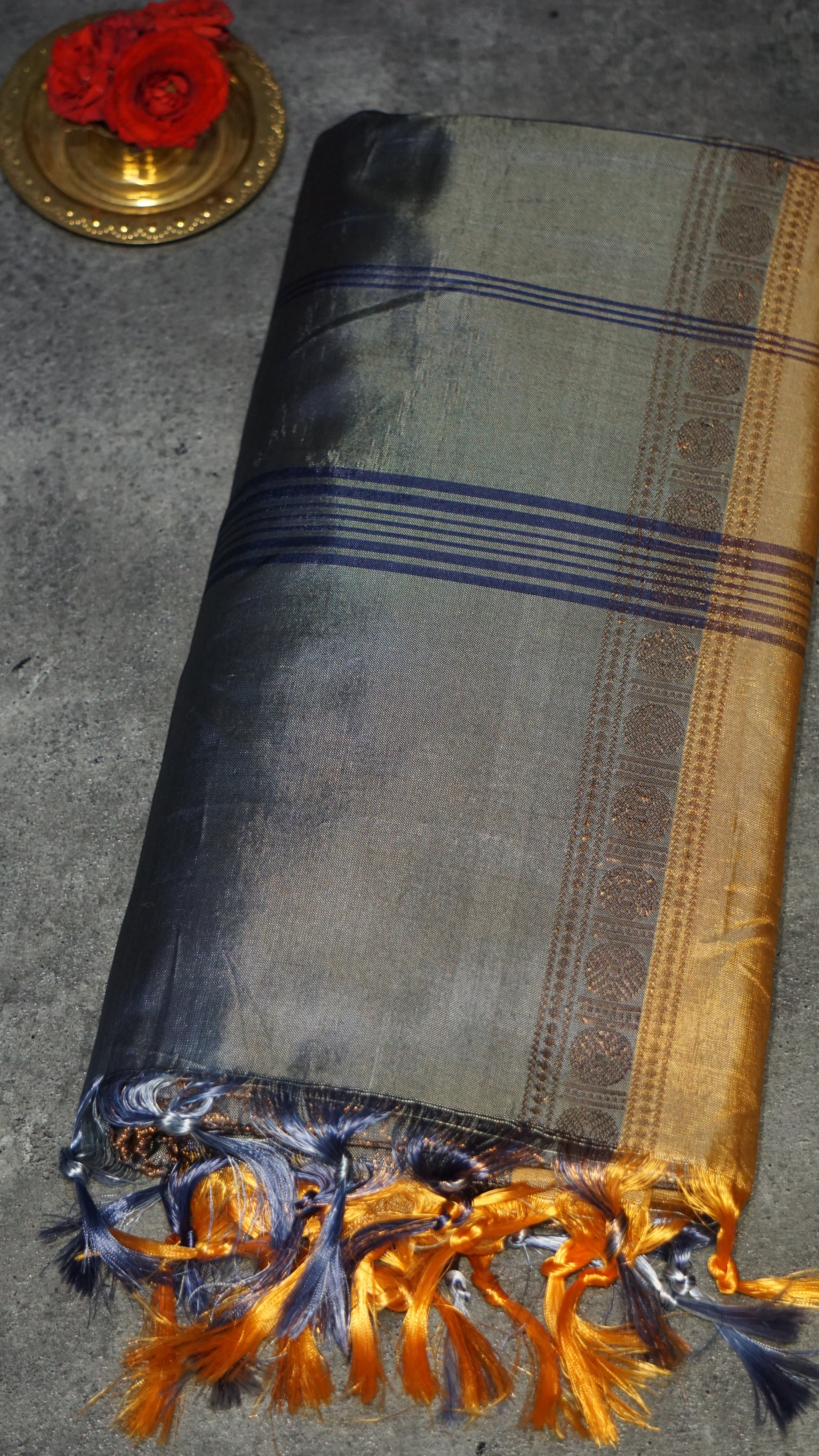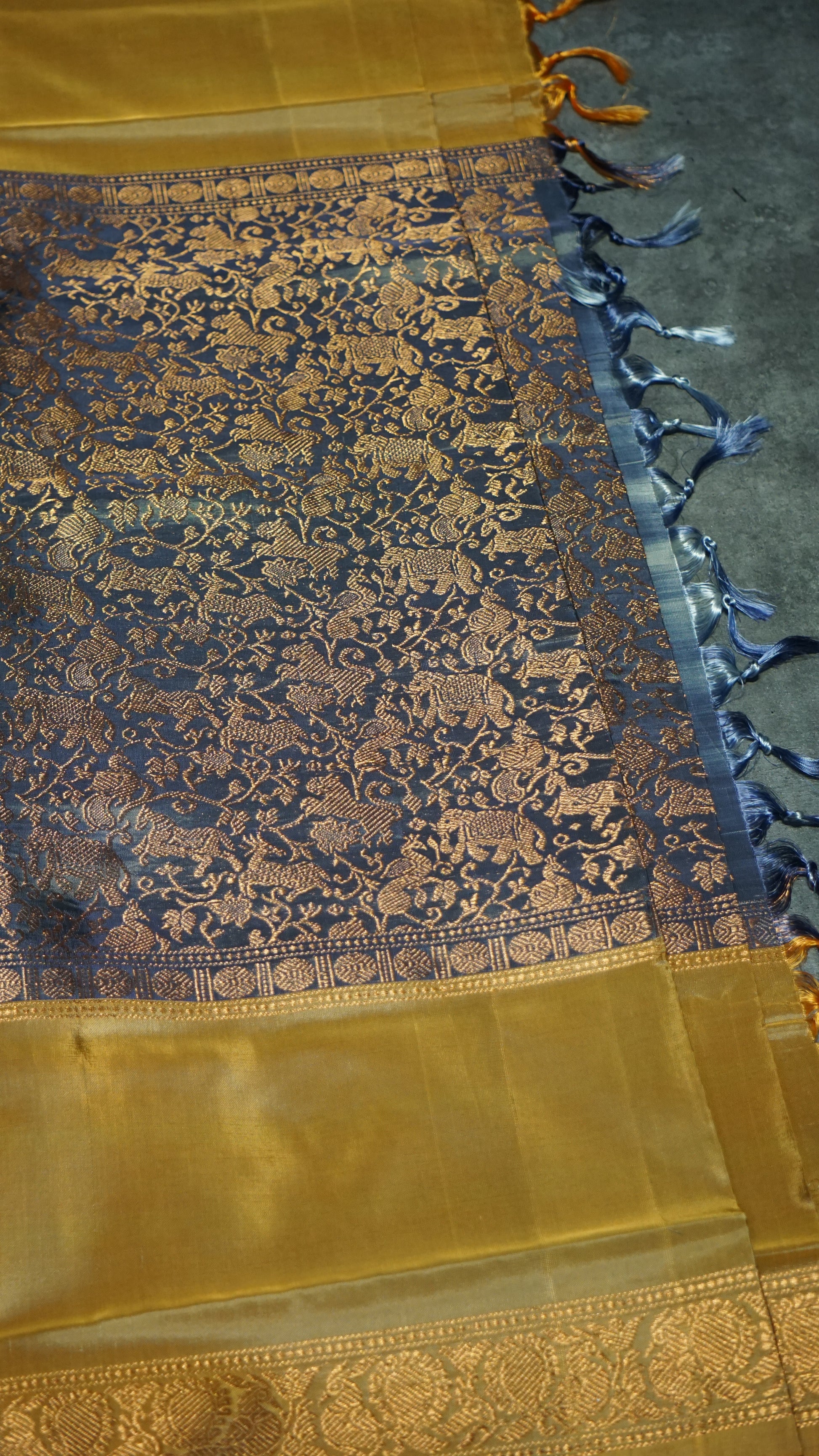 Vazhai Naaru Pattu Saree Vanasingaram Blueish Grey - Yellow