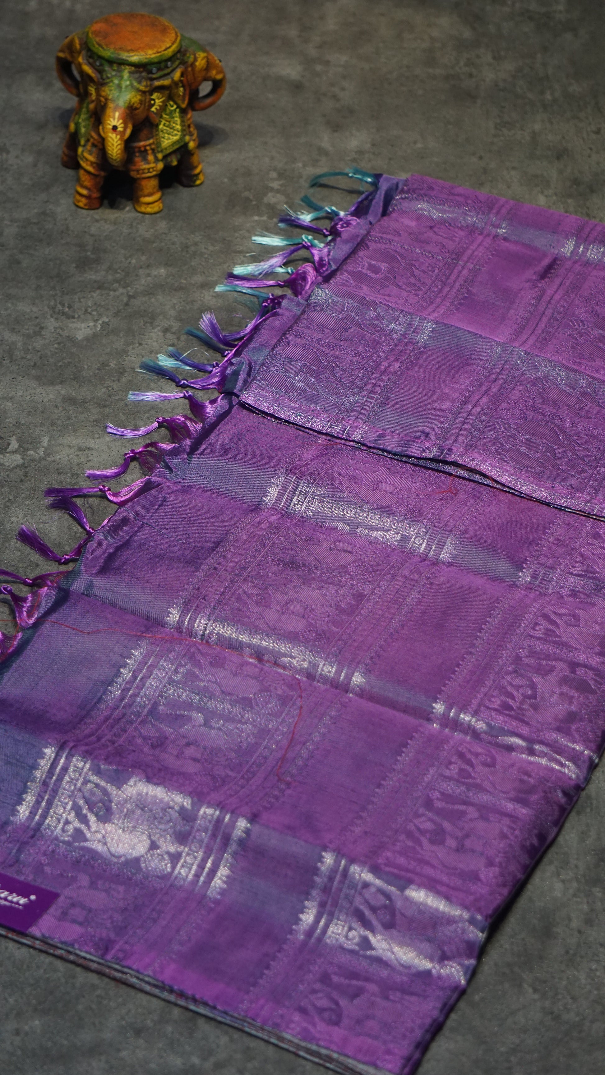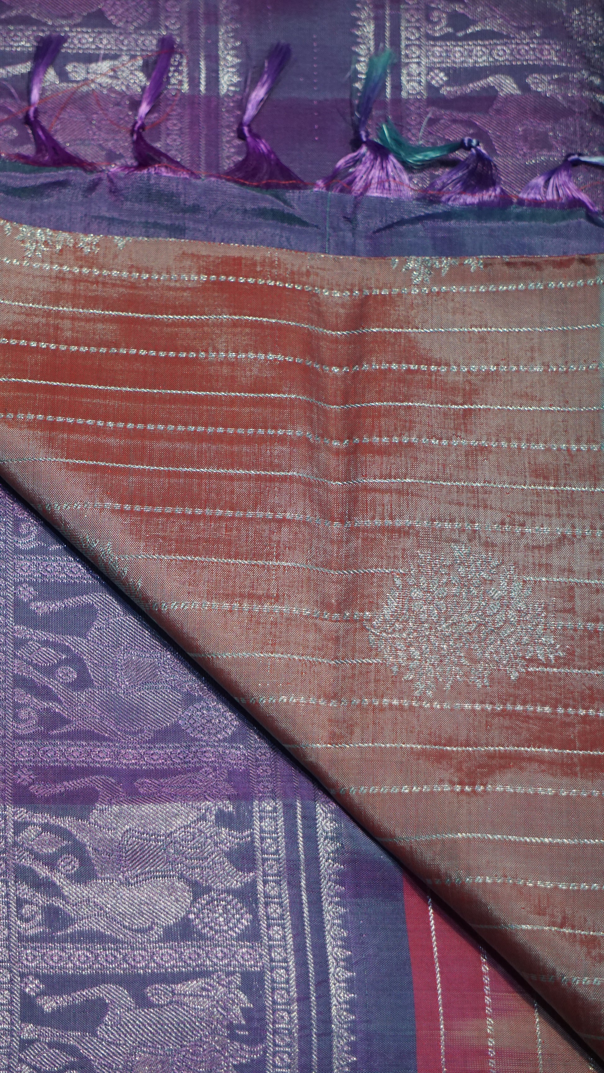 Vazhai Naaru Pattu Saree Vairaoosi Light Peach to Dual Lavender